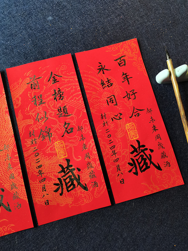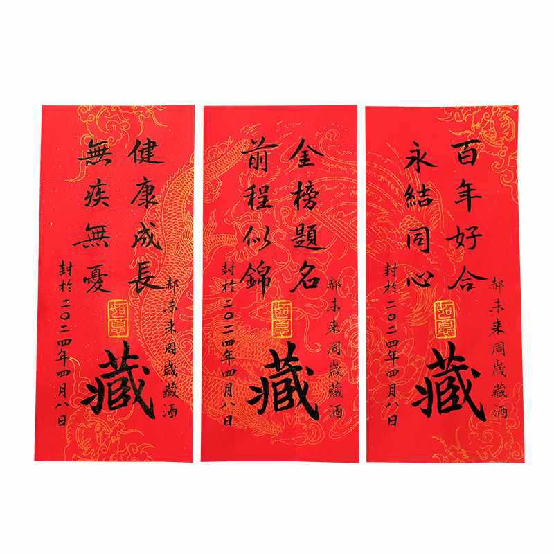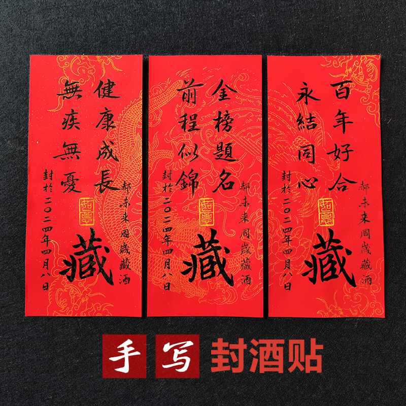 ✅ Узор дракона и феникса, наклейка на винную печать на один год, чистая рукописная кисть, каллиграфия, индивидуальный полнолуние, сто дней, банкет, памятная печать на бутылке вина