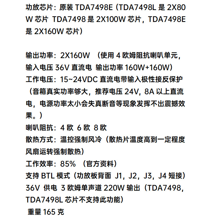 TDA7498E 大功率数字功放板 2.0HIFI立体声160W*2 支持BTL220W
