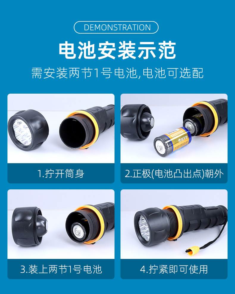 Светодиодный старомодный бытовой фонарик для отключения электроэнергии на открытом воздухе, водонепроницаемый и устойчивый к падению, оснащен 2 сухими батарейками типа АА, сильный свет, модель сменного аккумулятора для фонарика
