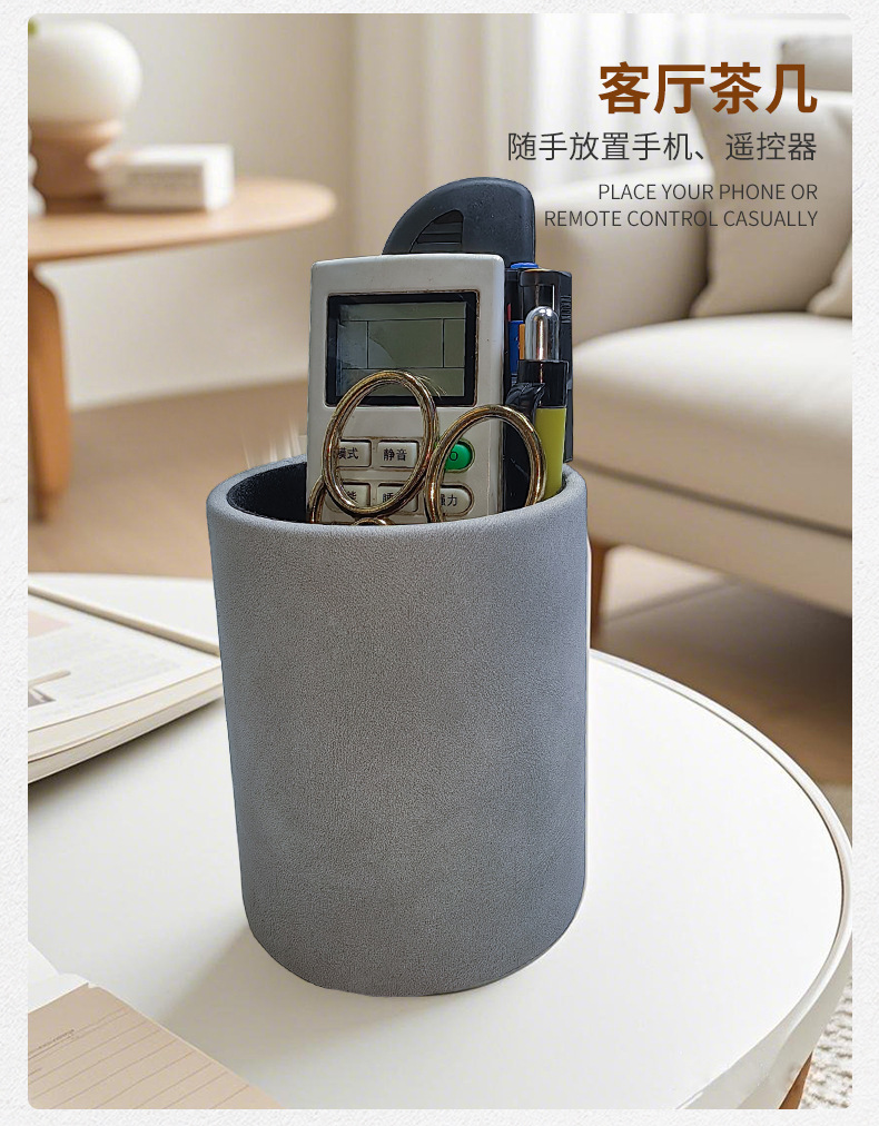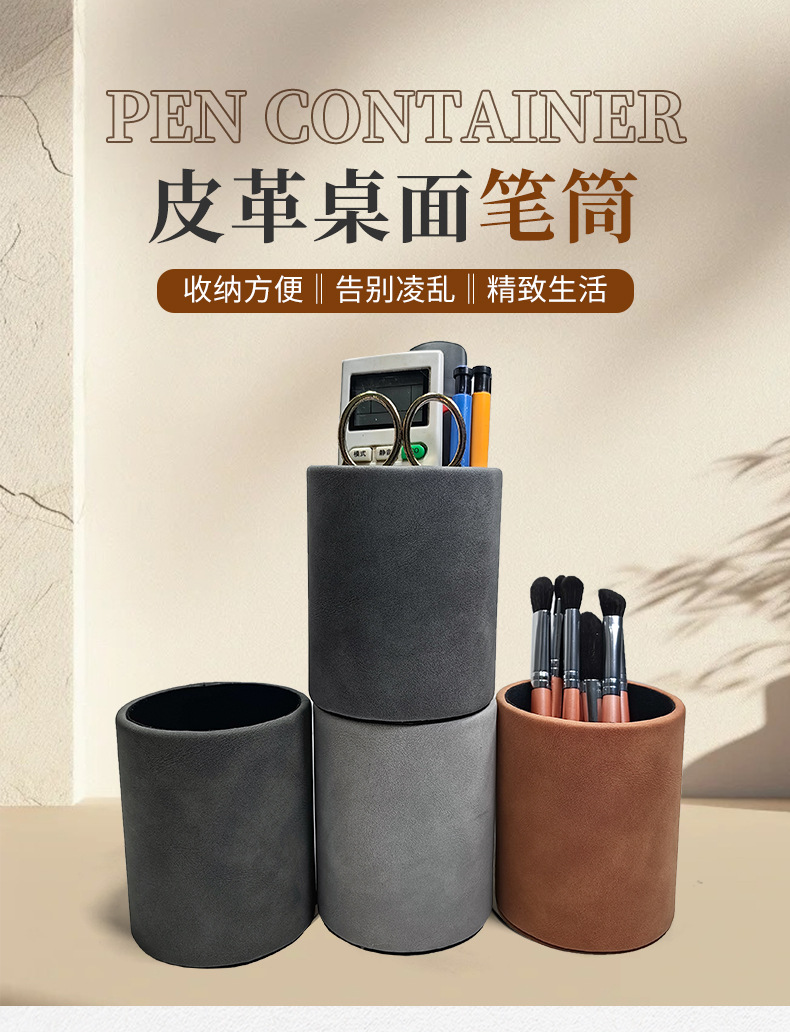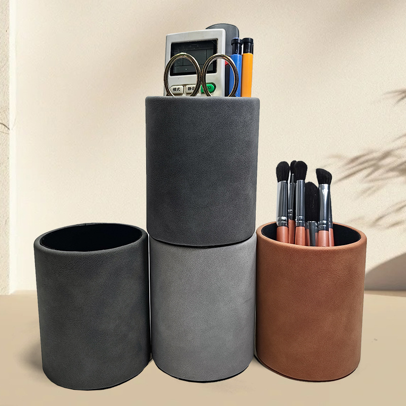 Подставка для ручек, коробка для ручек, пенал, канцелярские товары для офиса, настольный ящик для хранения, подарочная круглая кожаная настольная организация оптом