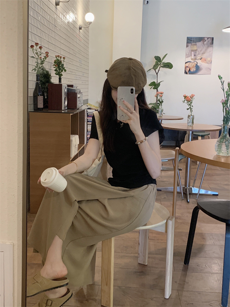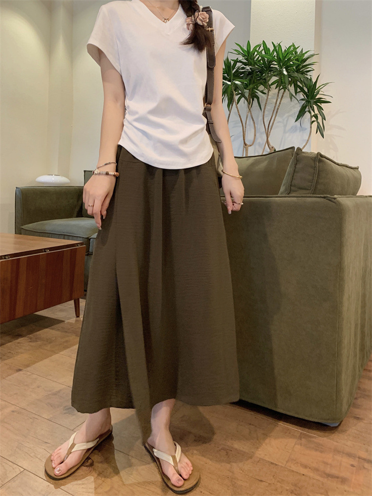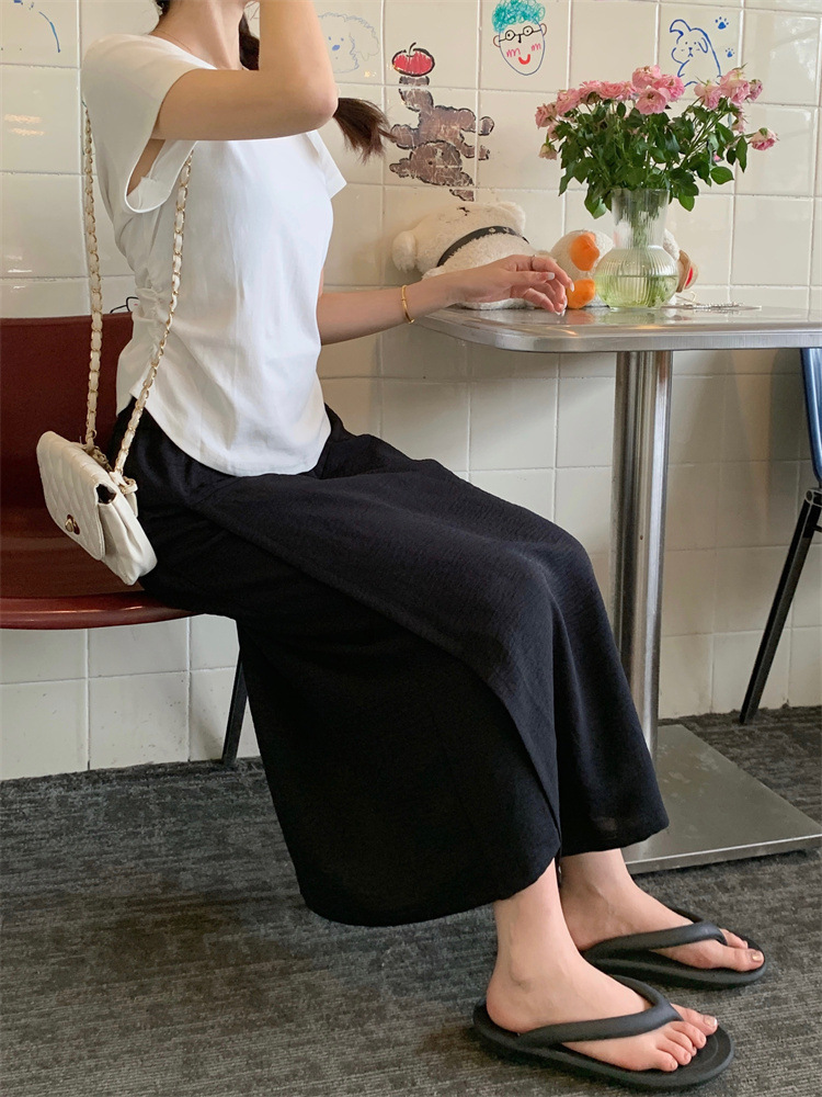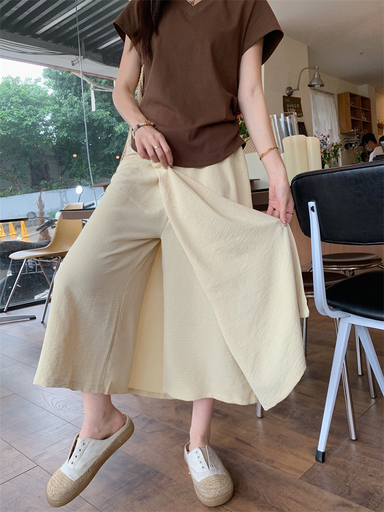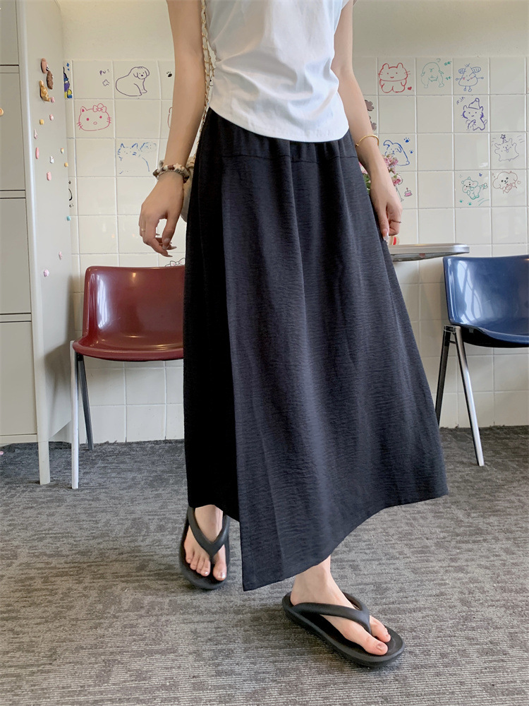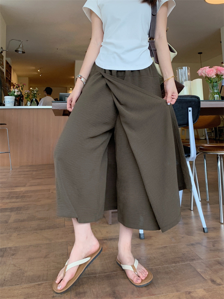 Летние тонкие солнцезащитные брюки-юбки на заказ для женщин, с высокой талией и боковыми разрезами, в ленивом стиле, утягивающие широкие бедра и бедра, укороченной длины.