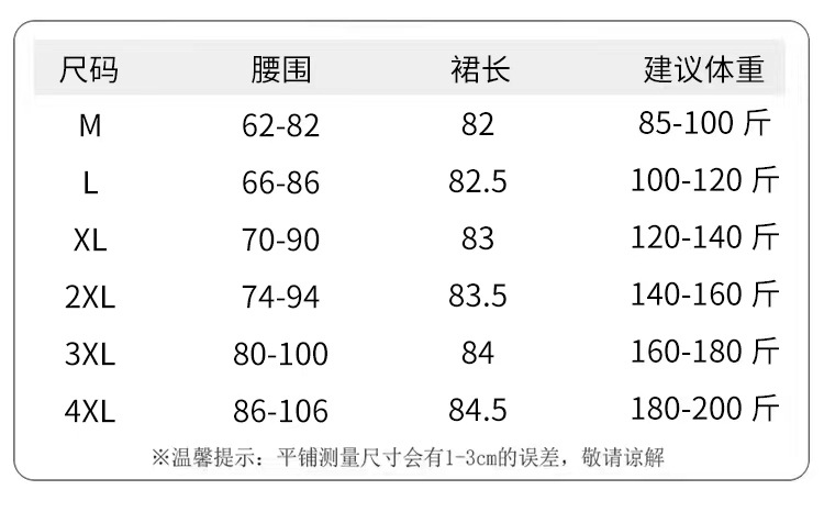 L 100-120; XL 120-140; 2XL 140-160; 3XL 160-180; 4XL 180-200; M 85-100; L