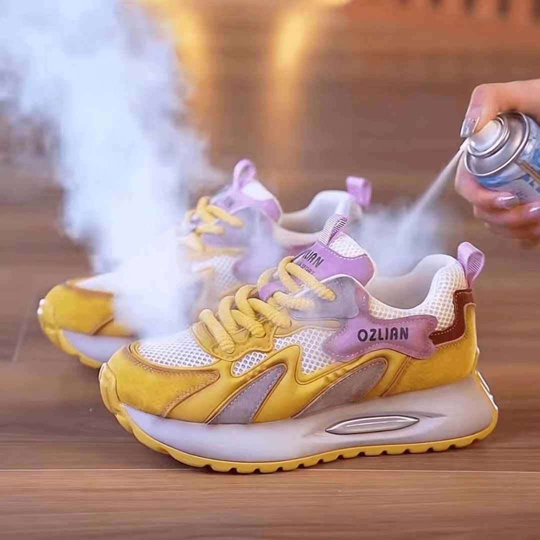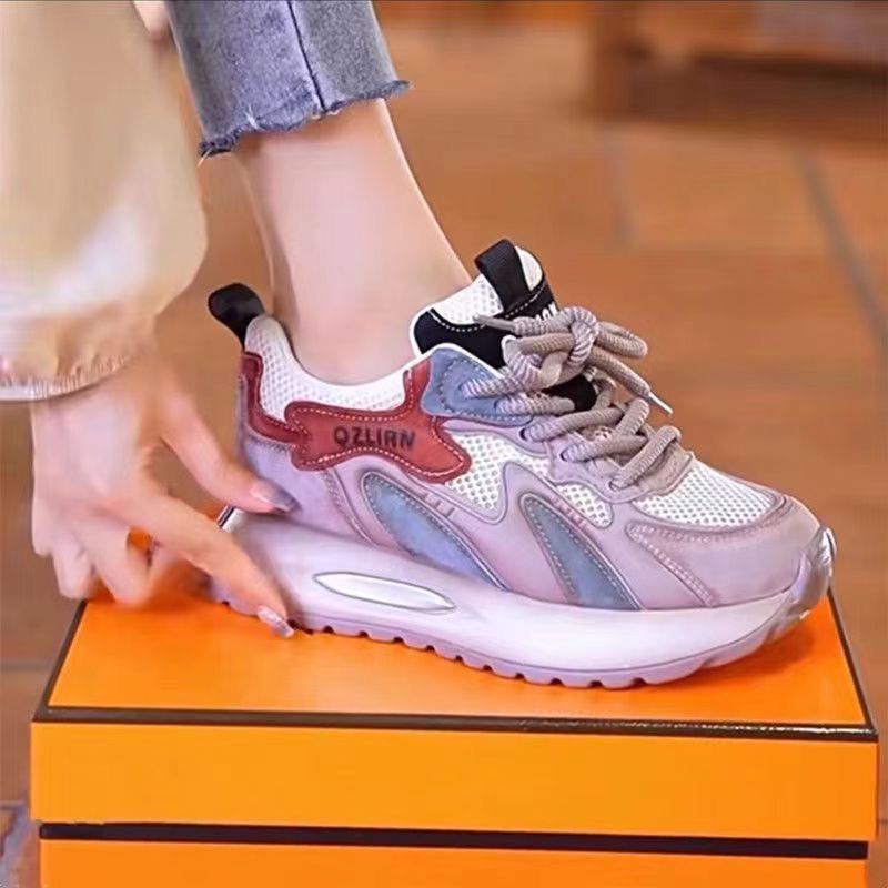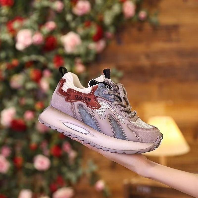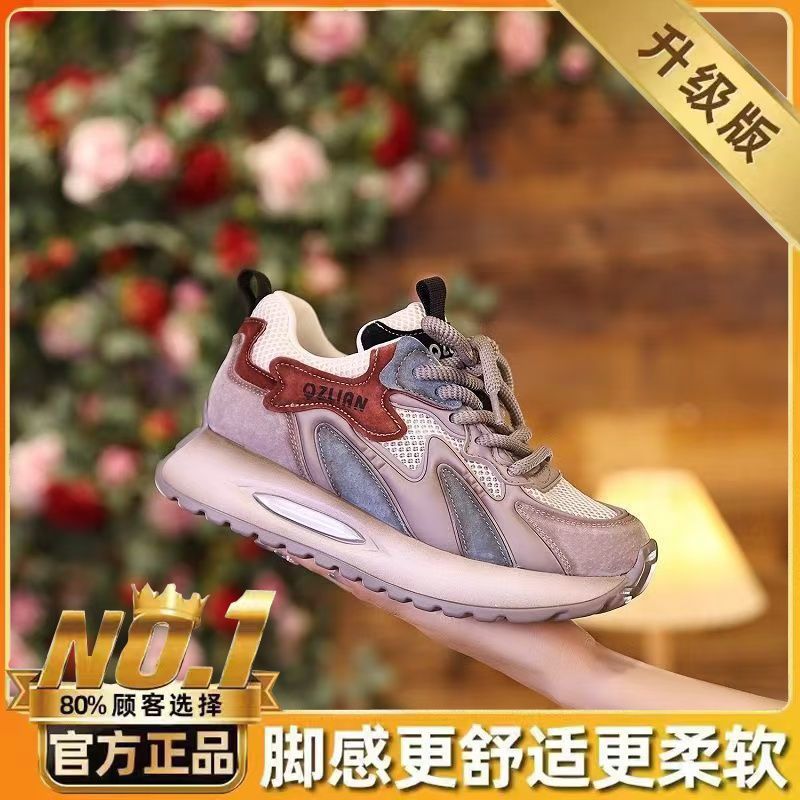 Женские кроссовки из натуральной кожи, дышащие, на толстой подошве, с эффектом увеличения роста, летняя новинка 2025 года, универсальные, повседневные, для бега.