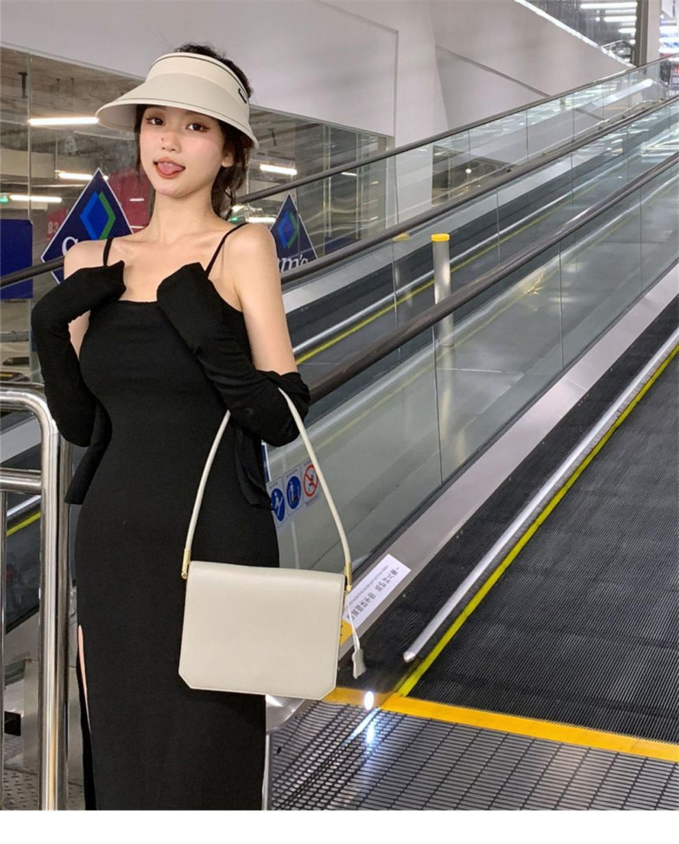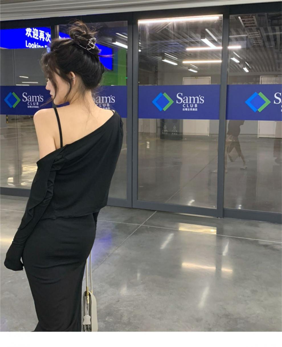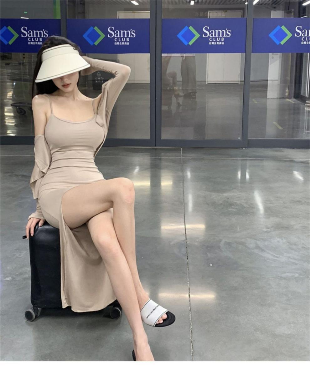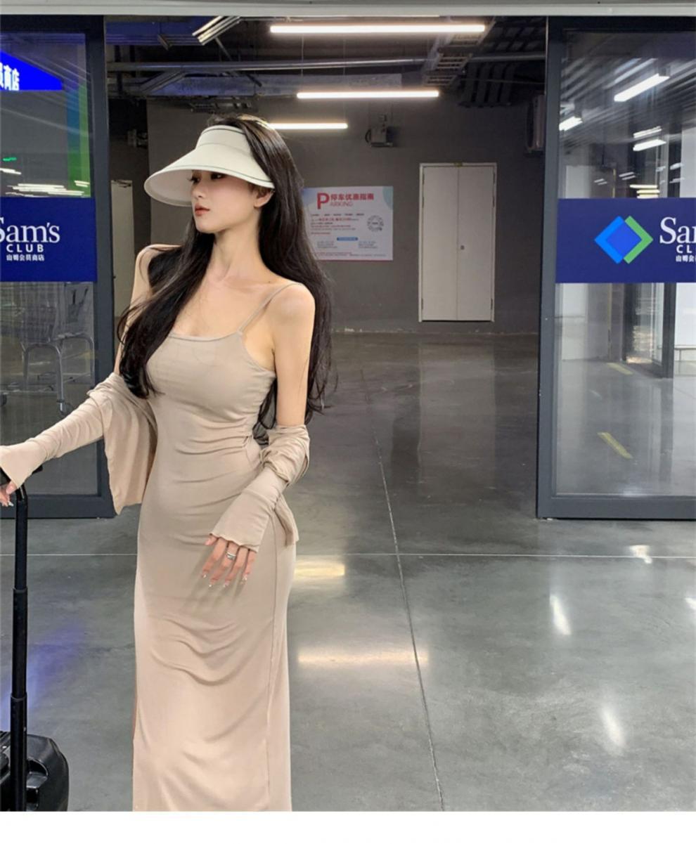 Весенне-осенняя юбка на подтяжках в европейском и американском стиле с кардиганом, сексуальное платье с боковым разрезом, жилет с длинными рукавами, блузка, комплект из двух предметов
