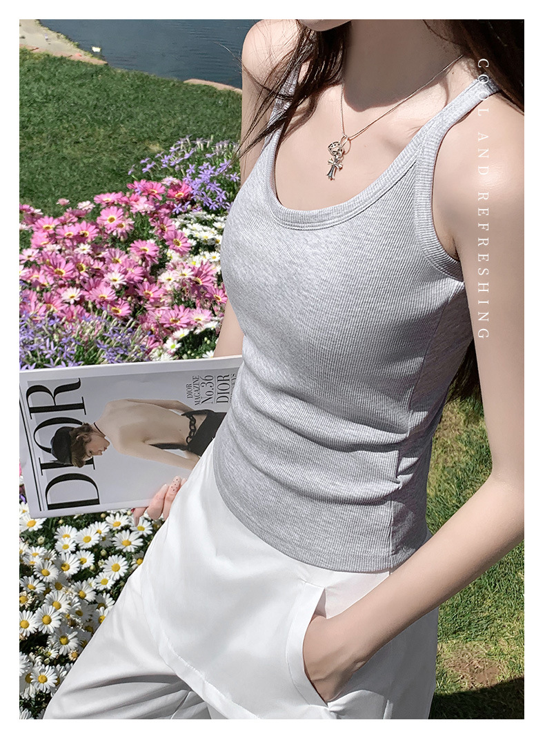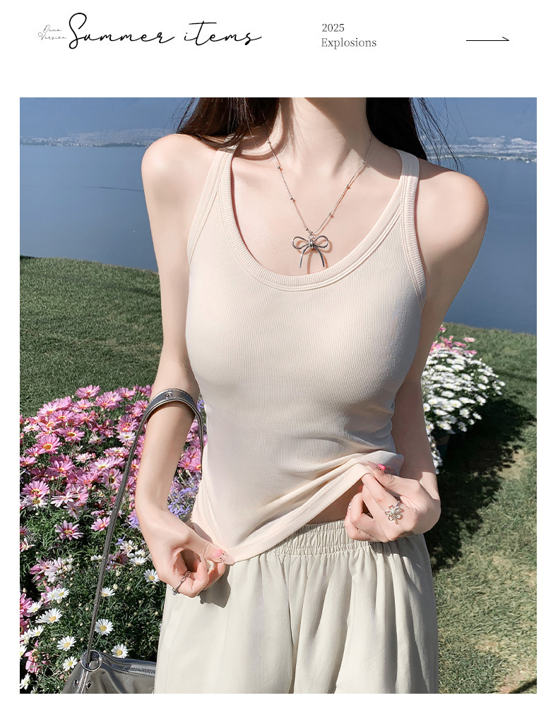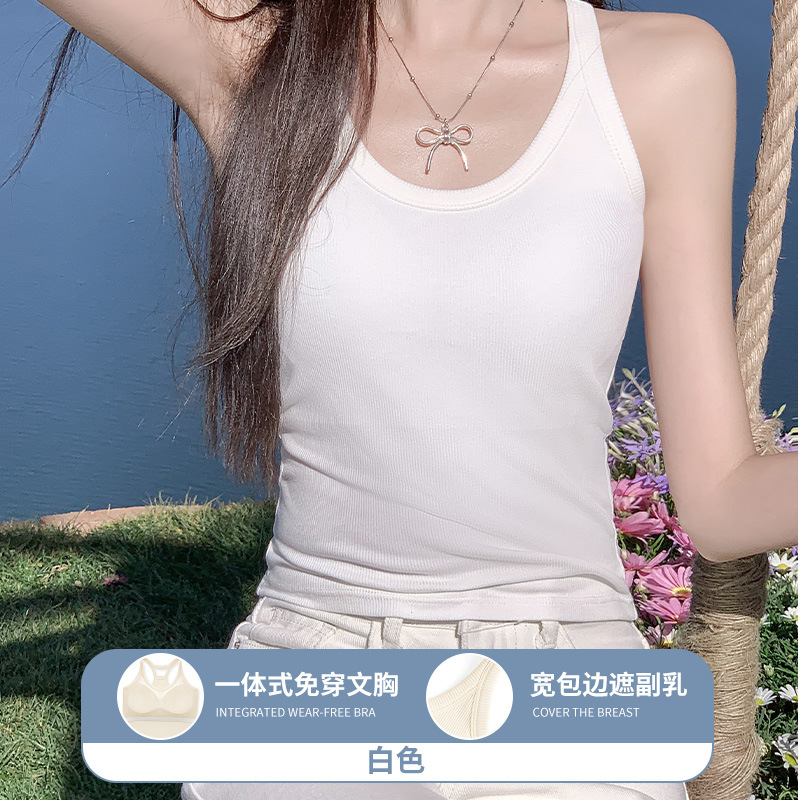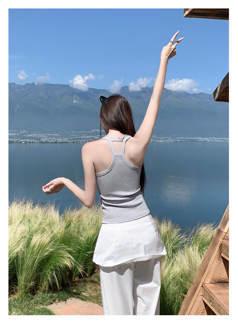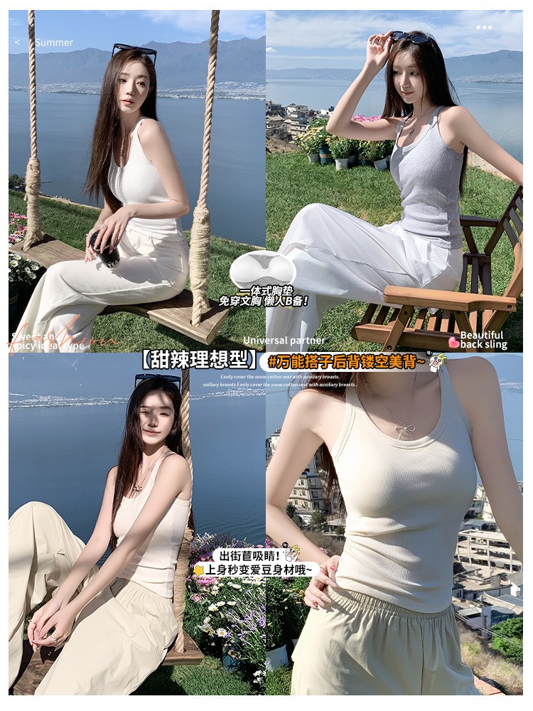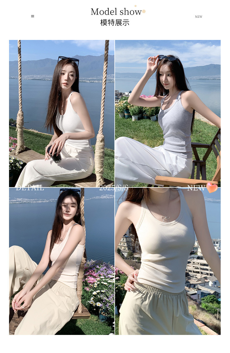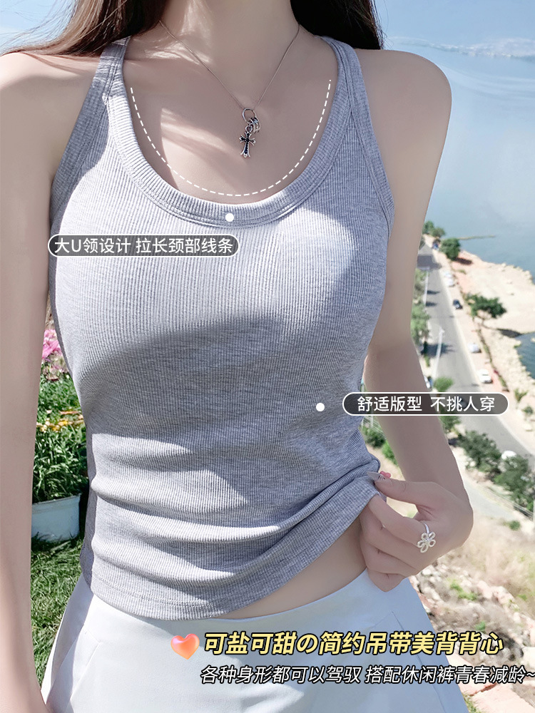 Серо-белый топ-камзол с вкладышами для женщин, летняя верхняя одежда и внутренний слой, новинка 2025 года, красивый топ без рукавов с открытой спиной
