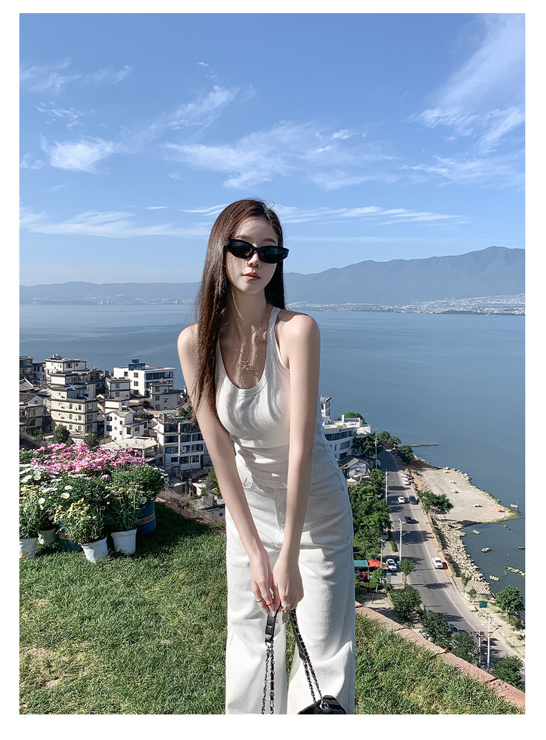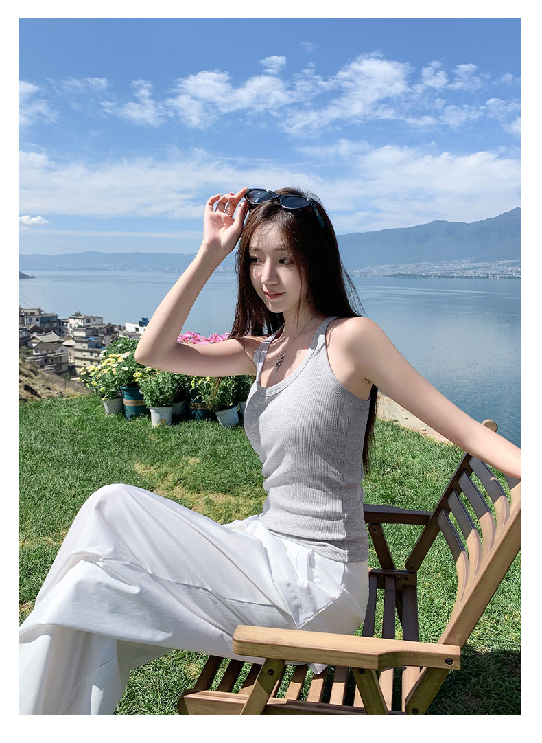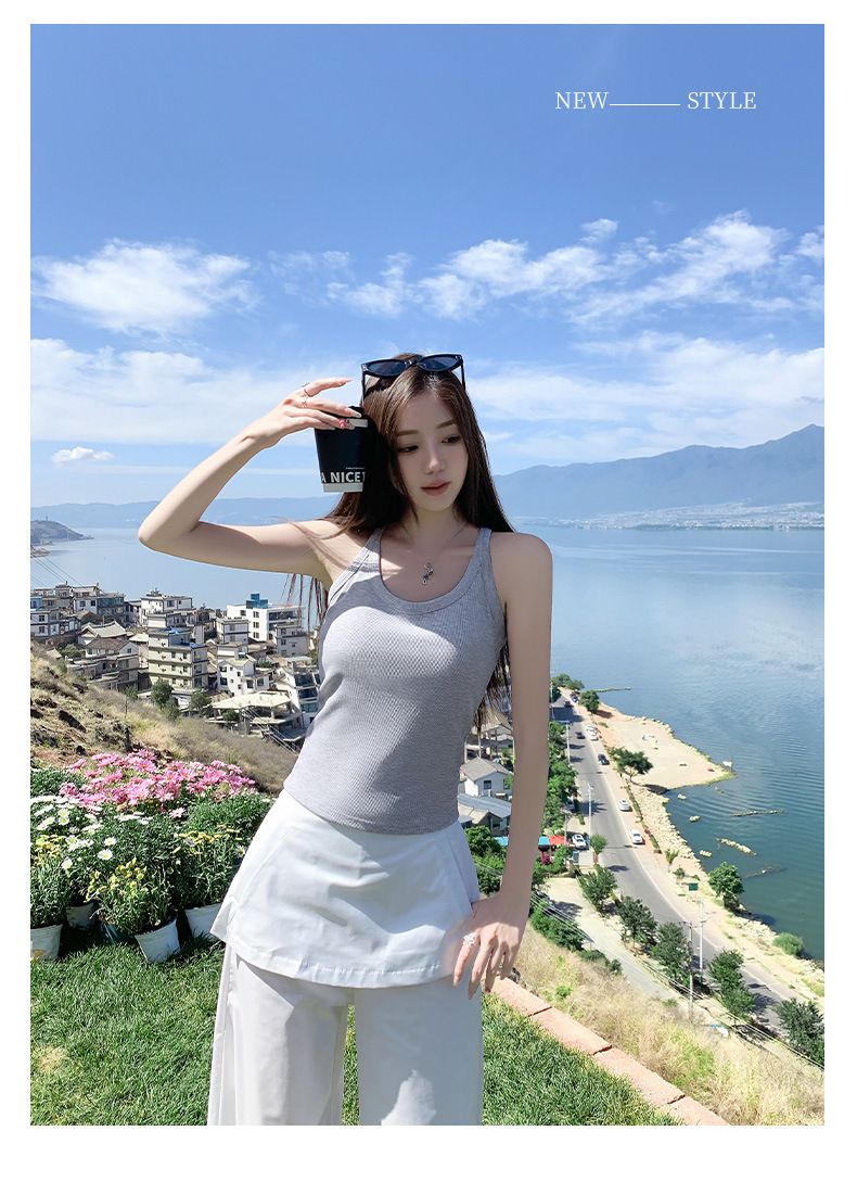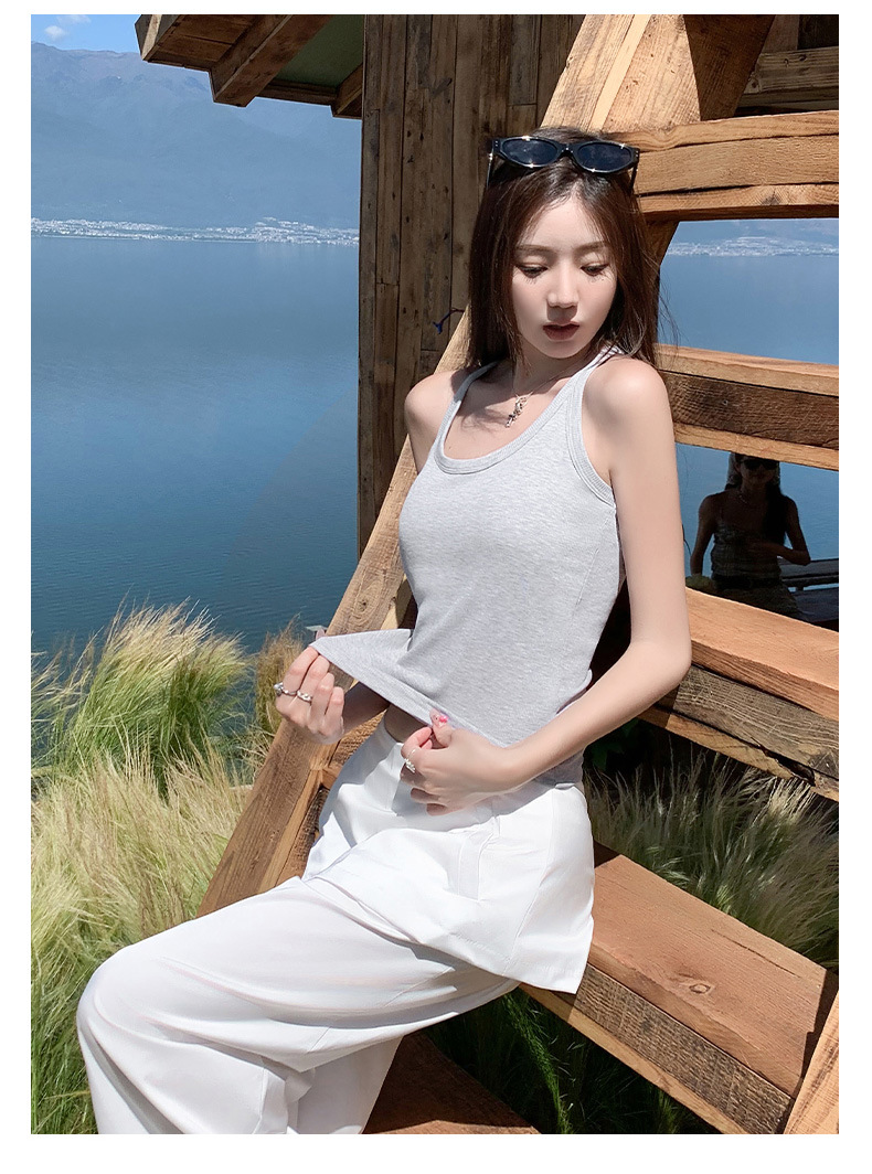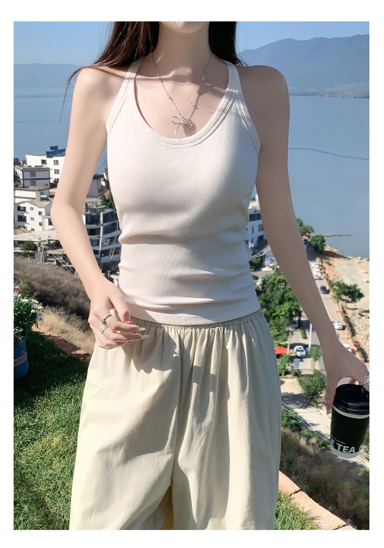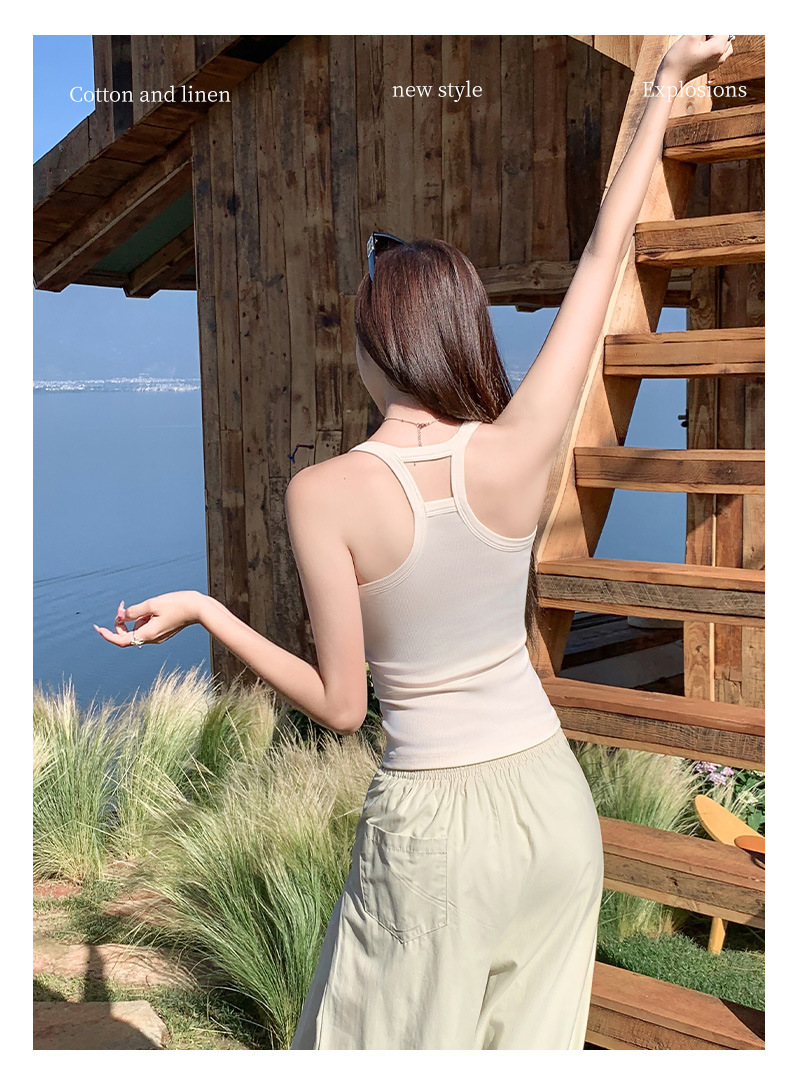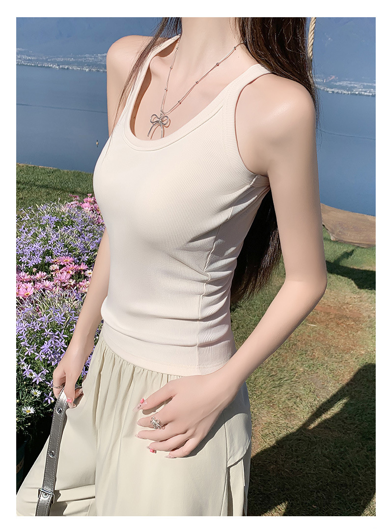 Серо-белый топ-камзол с вкладышами для женщин, летняя верхняя одежда и внутренний слой, новинка 2025 года, красивый топ без рукавов с открытой спиной