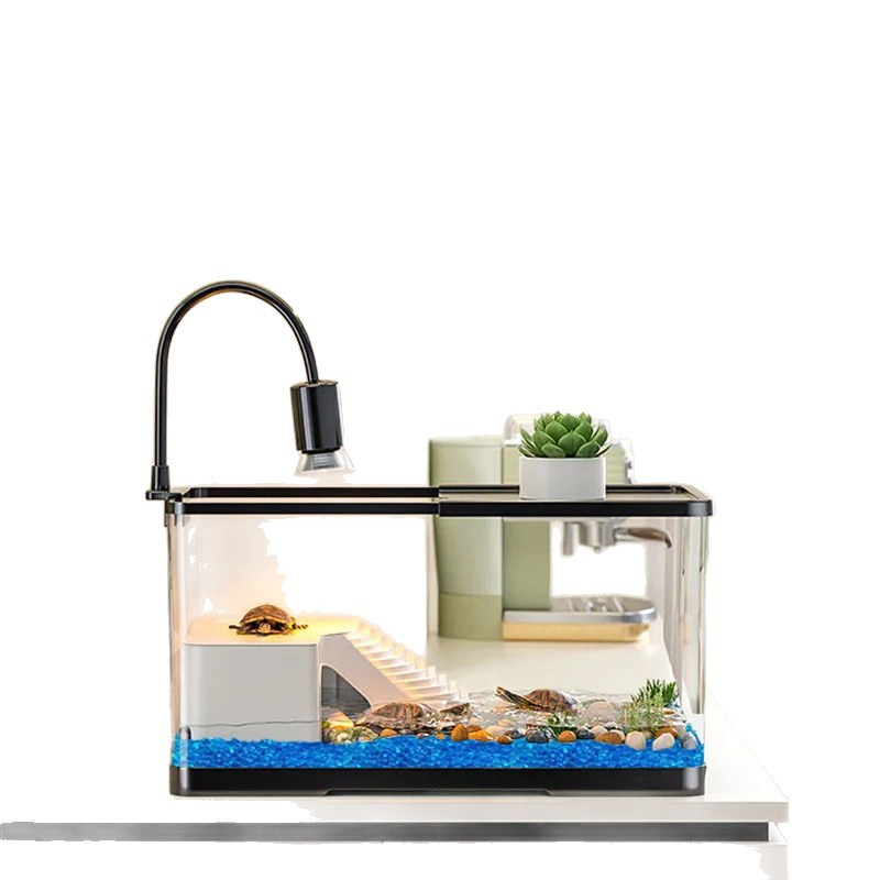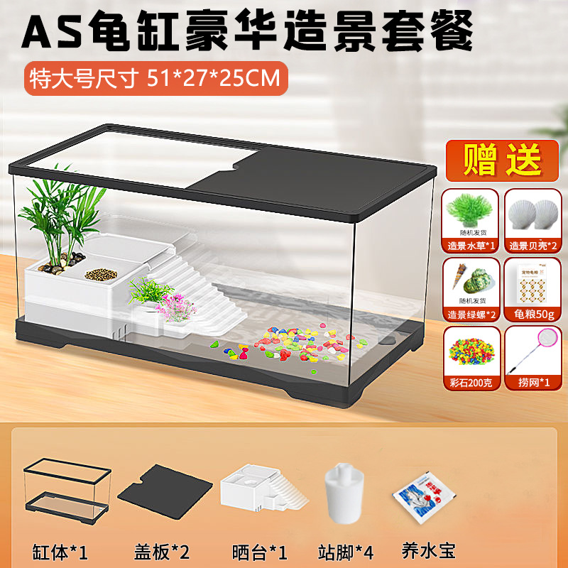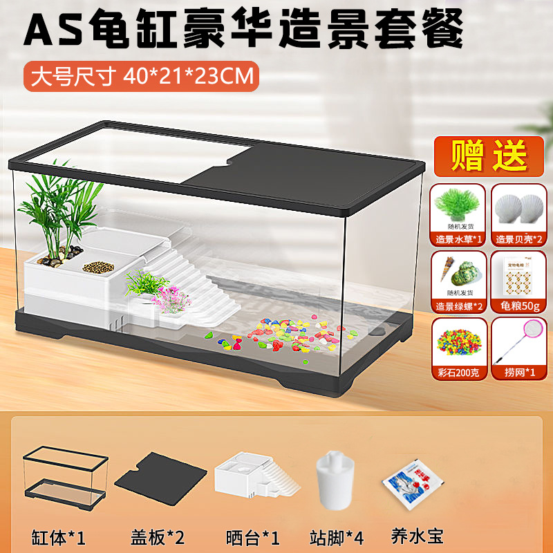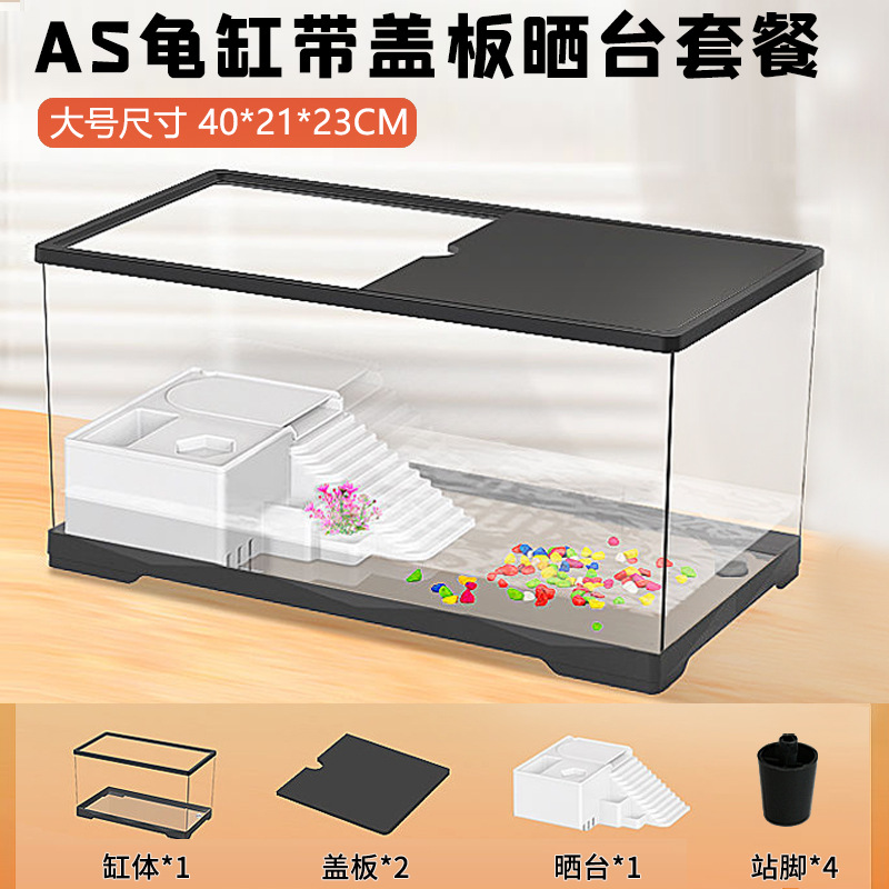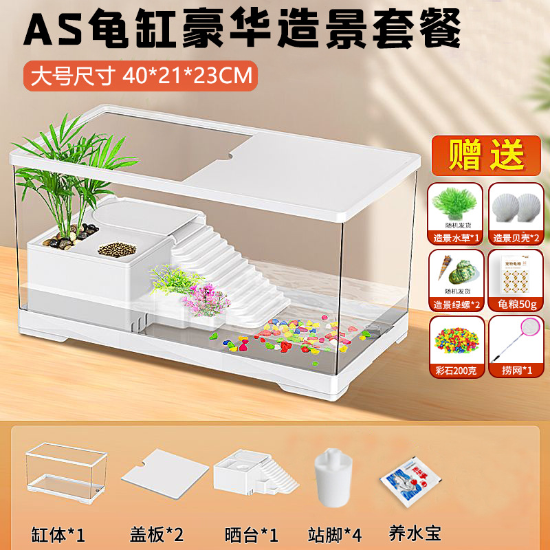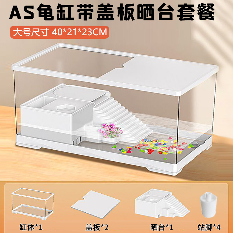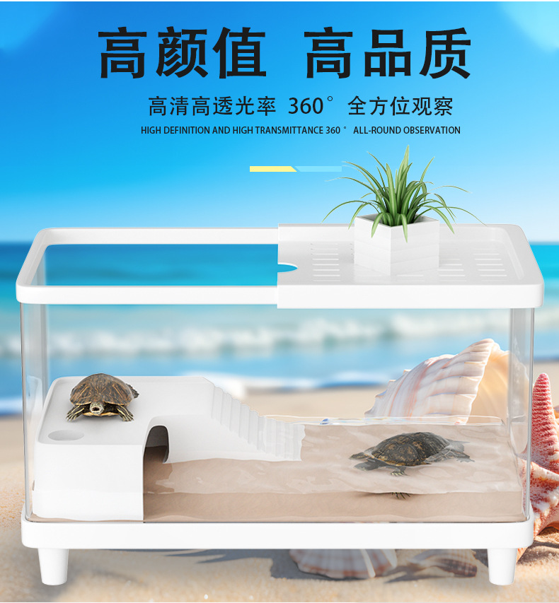 Профессиональный резервуар для черепах AS с прозрачной защитой от побега высокой четкости, с площадкой для загара, ландшафтной виллой, экологической рыбоводческой фермой, водным и наземным дренажем.