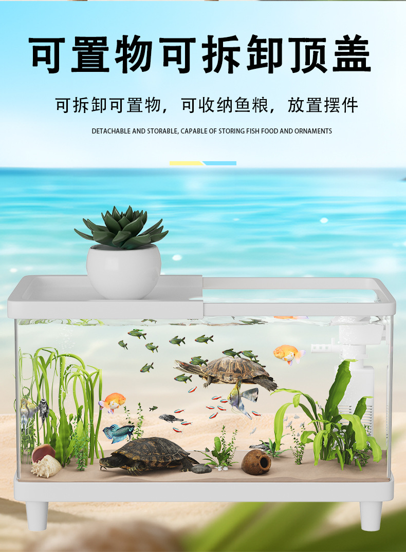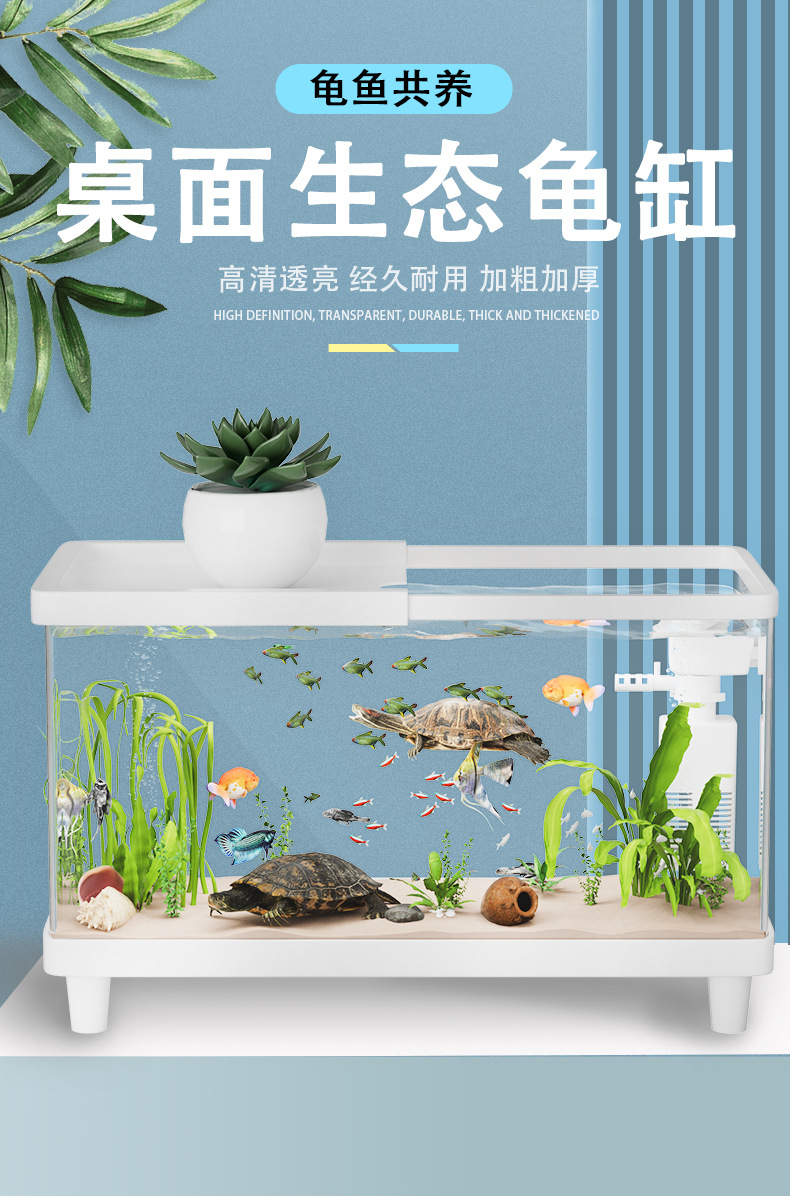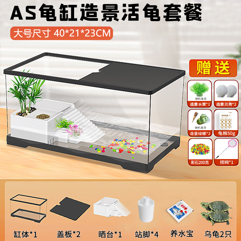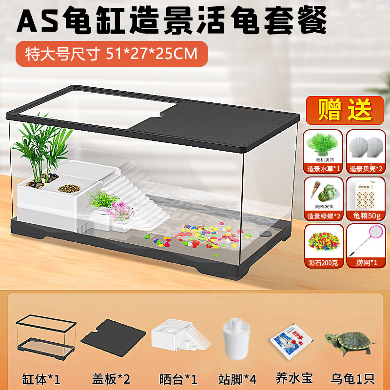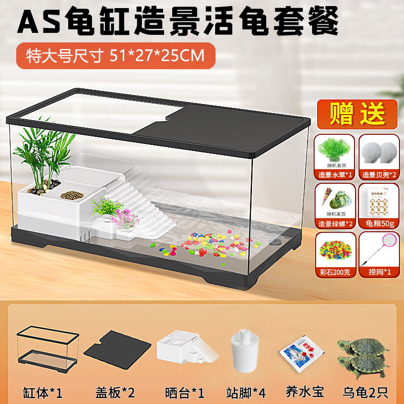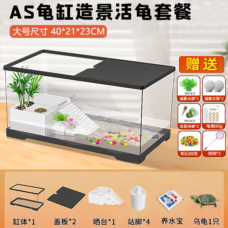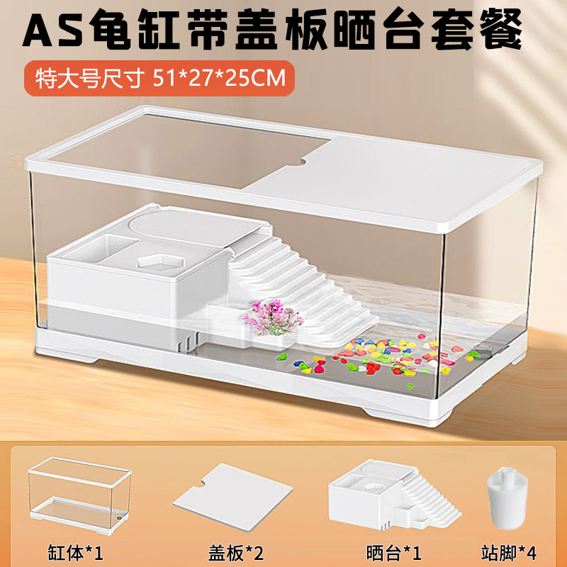 Профессиональный резервуар для черепах AS с прозрачной защитой от побега высокой четкости, с площадкой для загара, ландшафтной виллой, экологической рыбоводческой фермой, водным и наземным дренажем.