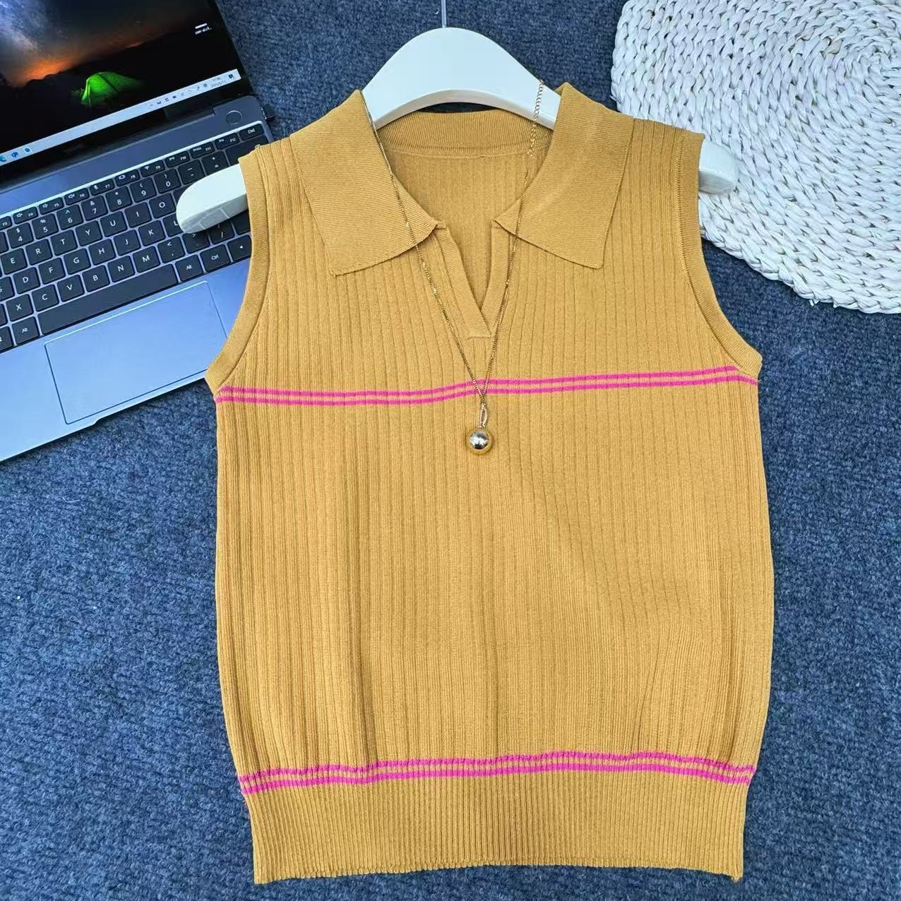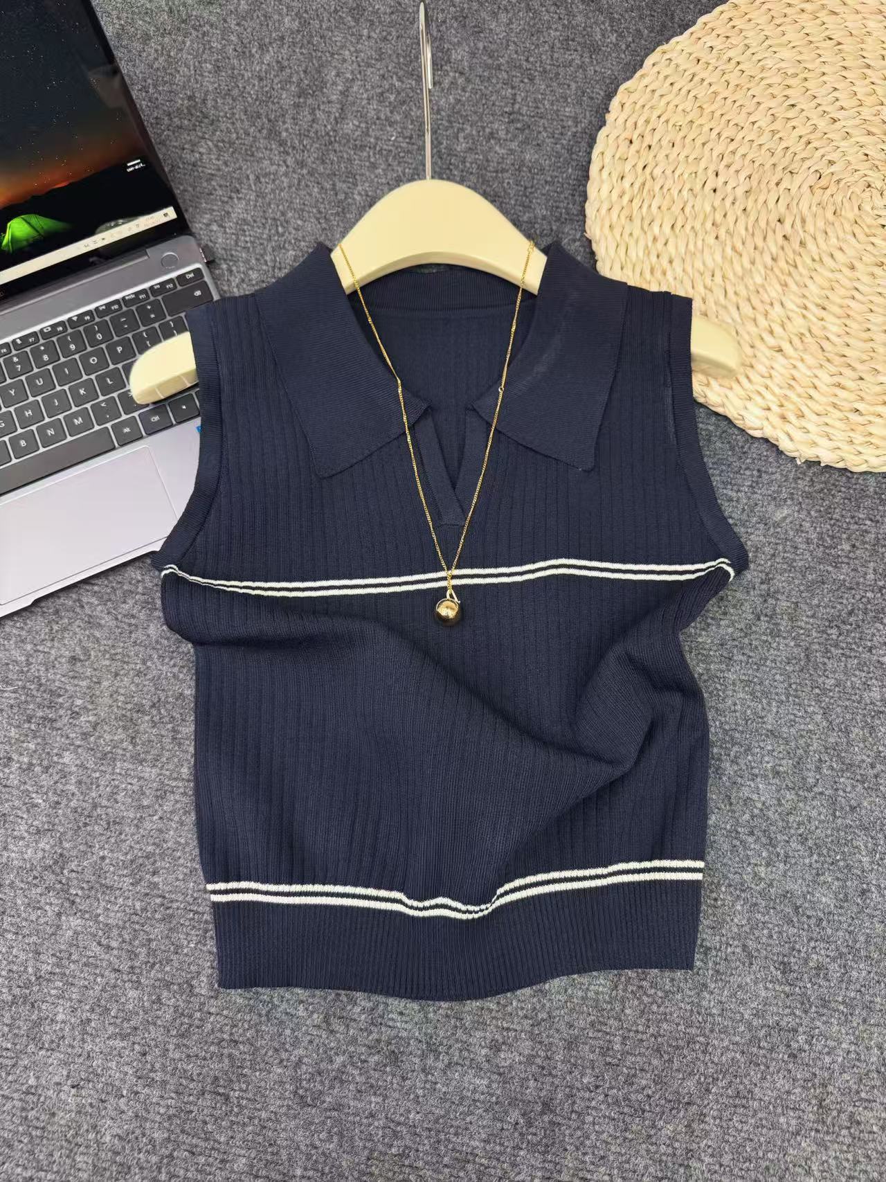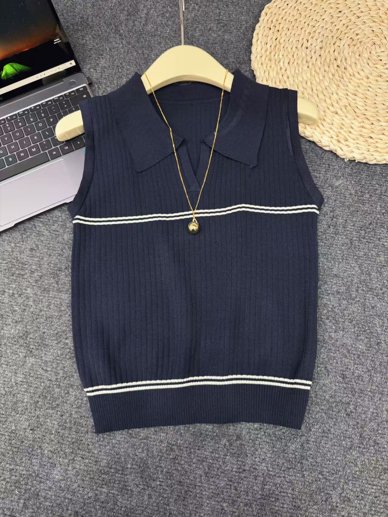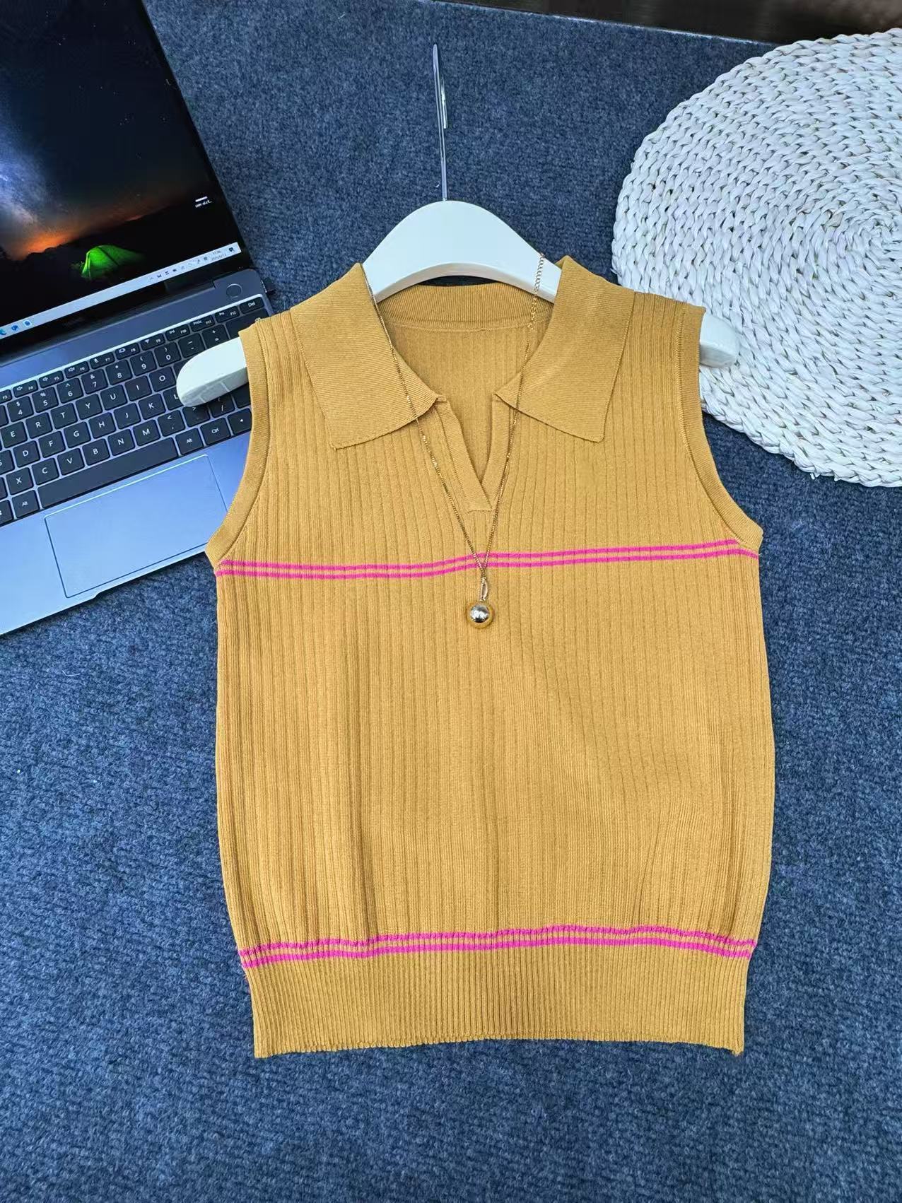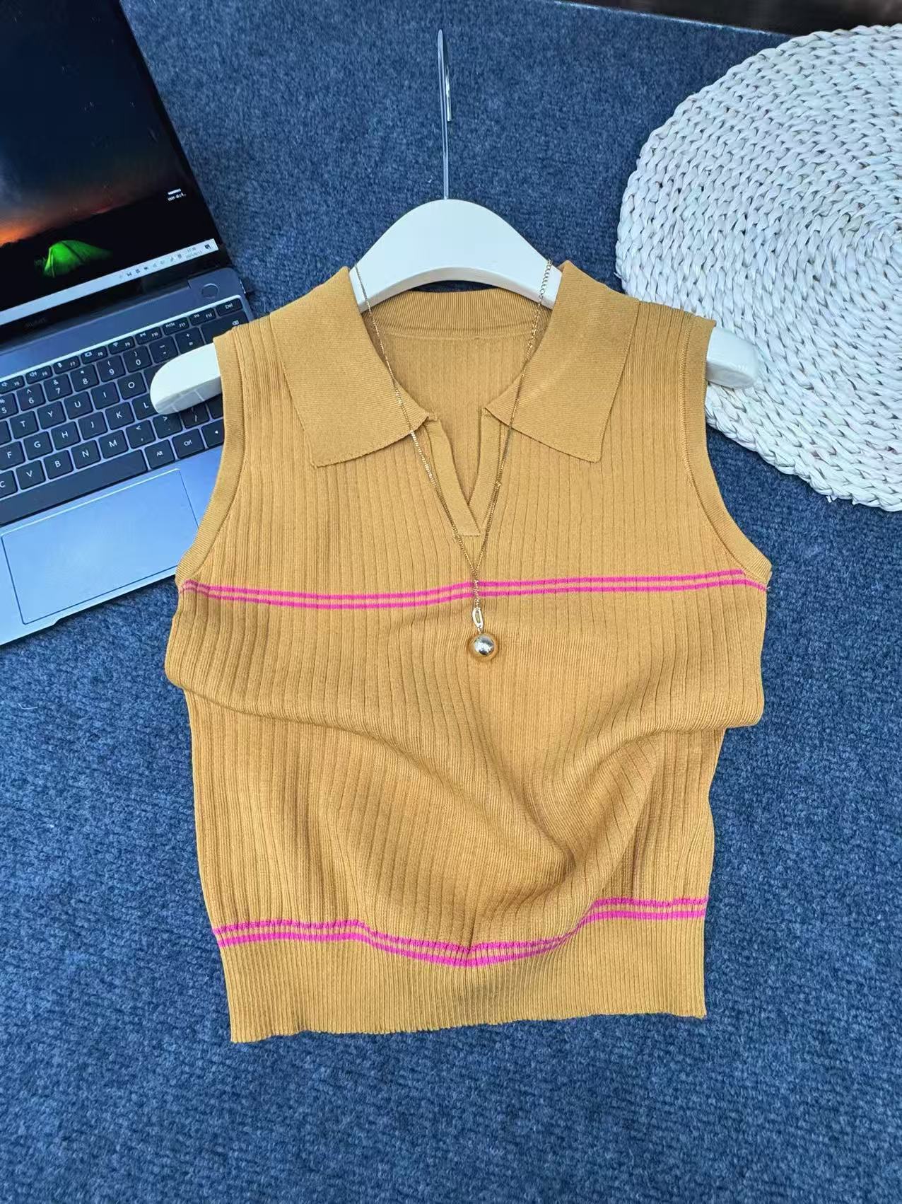 Фактический снимок нового вязаного жилета с v-образным вырезом Hangzhou Sijiqing, женский летний повседневный базовый универсальный топ без рукавов для похудения
