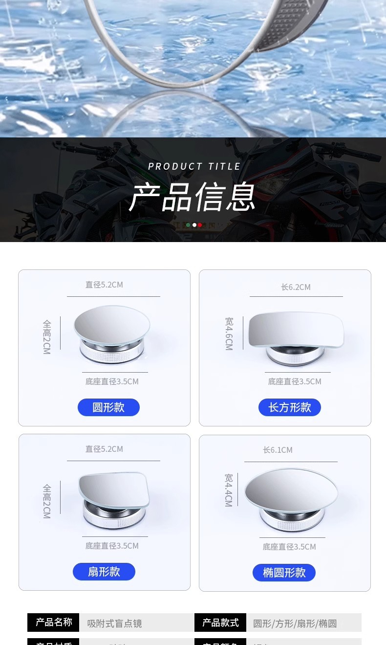 Зеркало заднего вида на присоске, маленькое круглое зеркало, сверхширокоугольное, на 360 градусов, для мотоцикла, электрическое, для слепых зон, вспомогательное зеркало, отражатель, ультра четкий