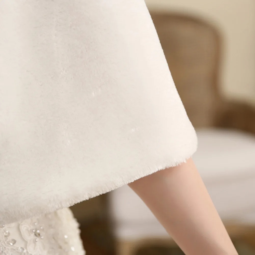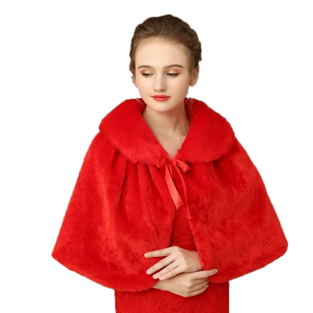 Европейское и американское свадебное платье, меховая шаль, белый, красный, плащ из кроличьего меха, подружка невесты, осенне-зимний теплый утолщенный плащ