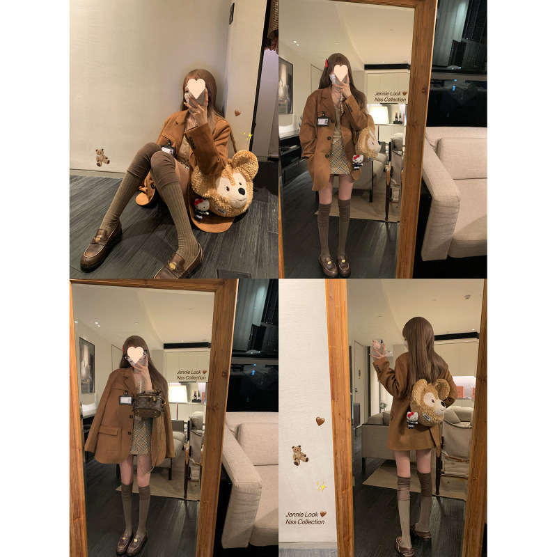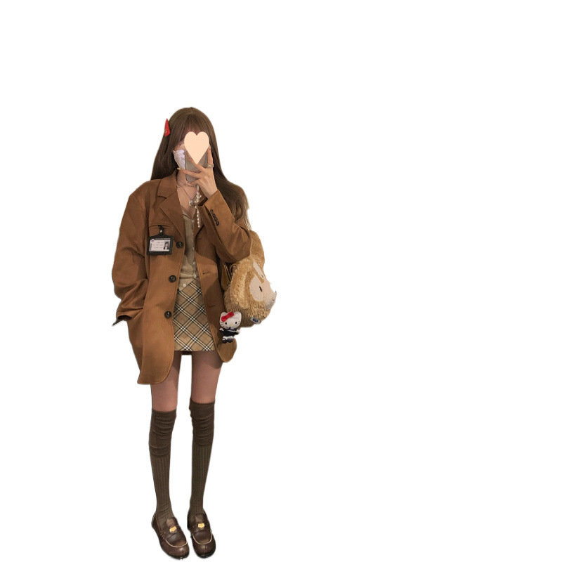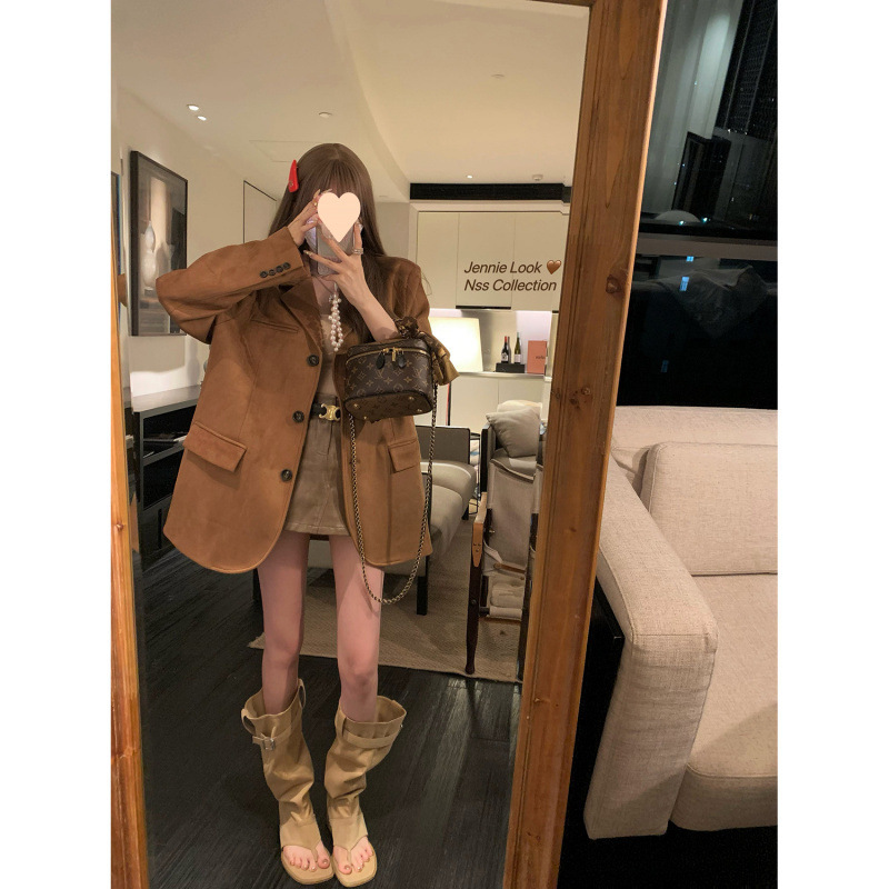 Костюм из замши с текстурой Maillard, нишевый коричневый ретро-пиджак для женщин, новинка осени 2025 года