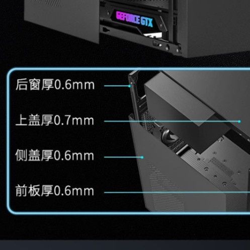4、支持双风扇显卡板材厚度: 0.8mm主板兼容: Micro-ATX、mini-ITX产品尺寸mm:L305*W168*H352包装尺寸mm:L405*W218*H370显卡限长mm: 270CPU散热器限高mm: 145光驱位数量: 0硬盘支持:3.5HHD*2 SSD*1I/O接口USB2.0*2+USB3.0*1+3.5mm音频4极*1散热系统: 后置8cm*1