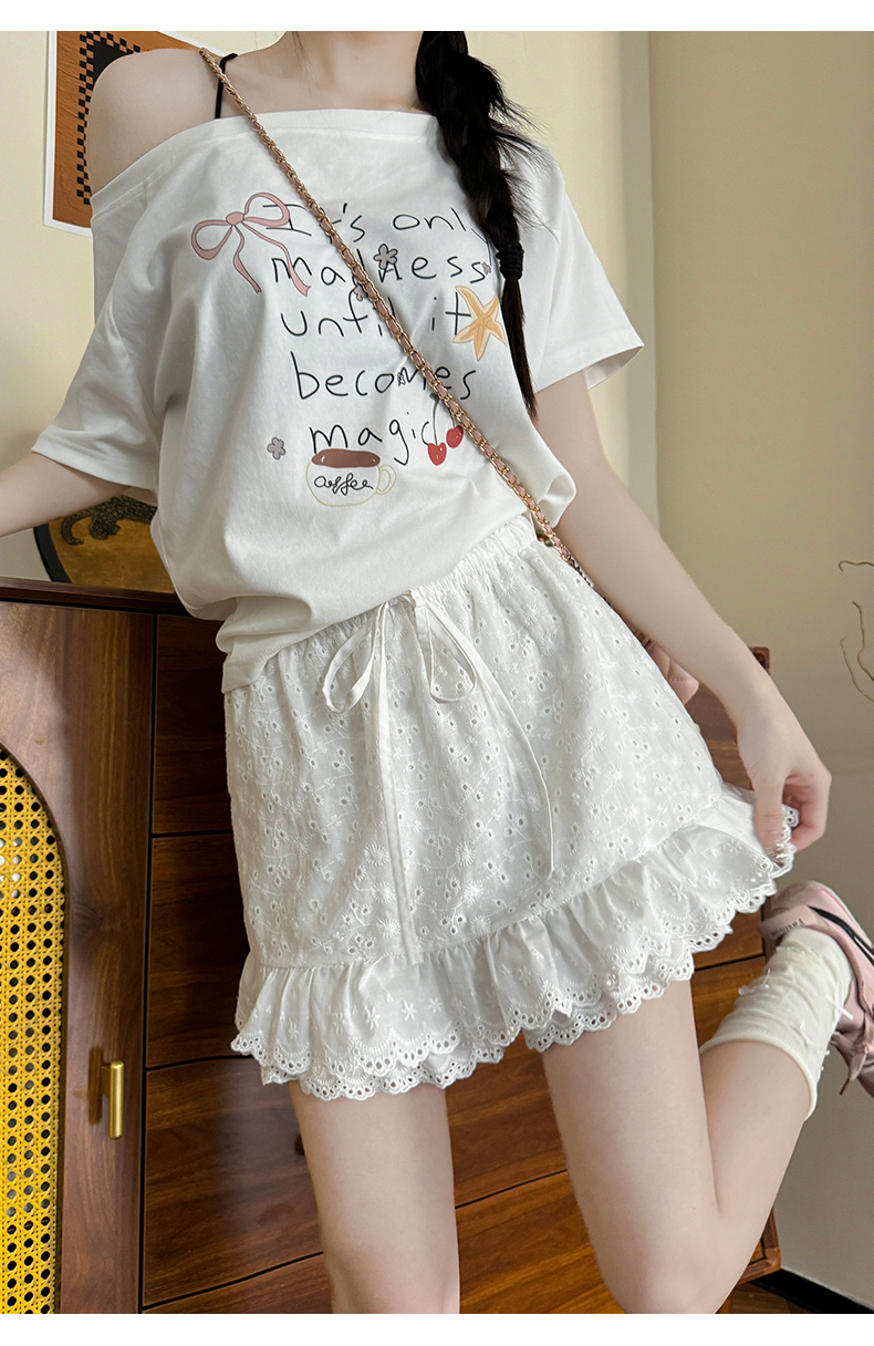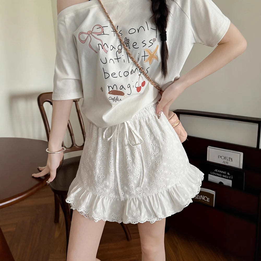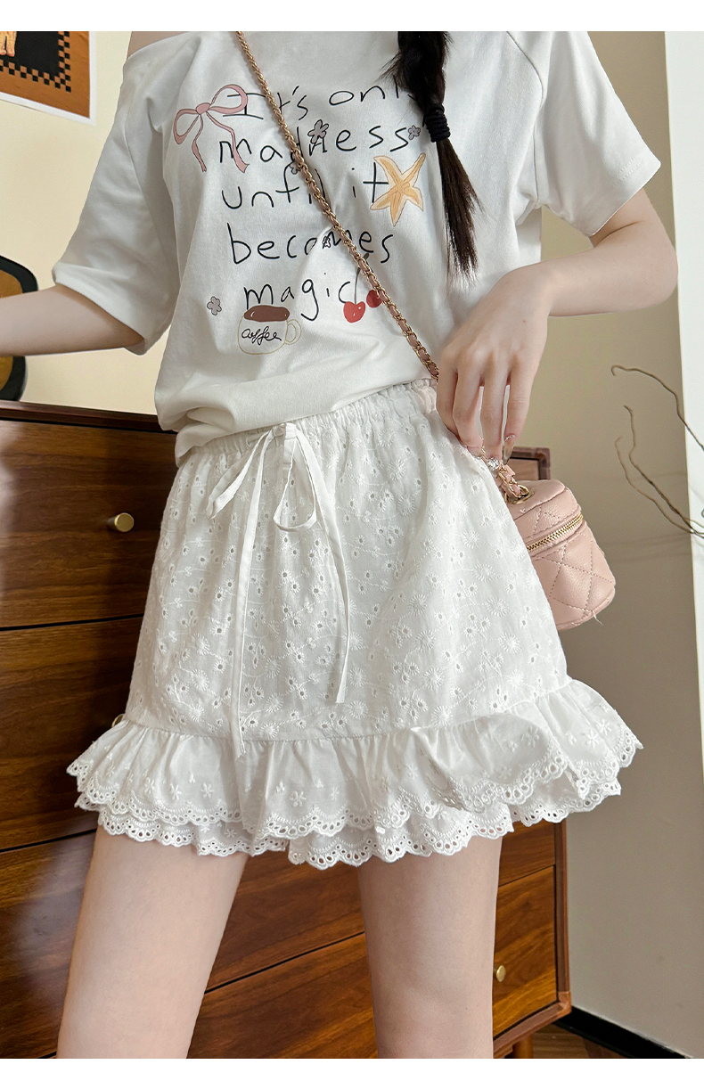 Белая кружевная юбка для женщин, лето 2025, новая милая утягивающая короткая юбка-кюлоты, повседневная юбка-трапеция