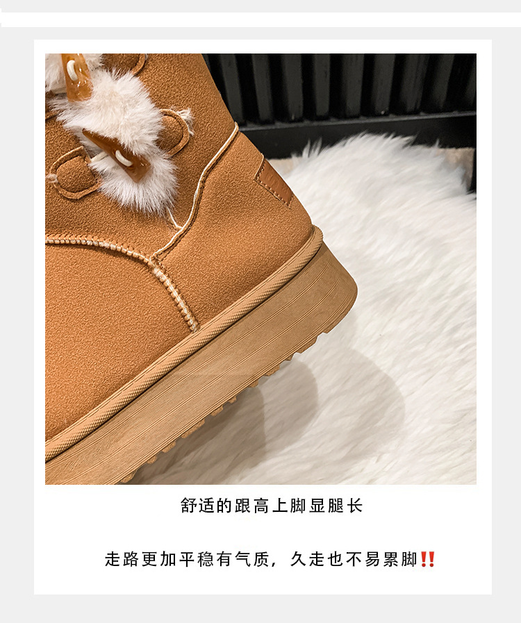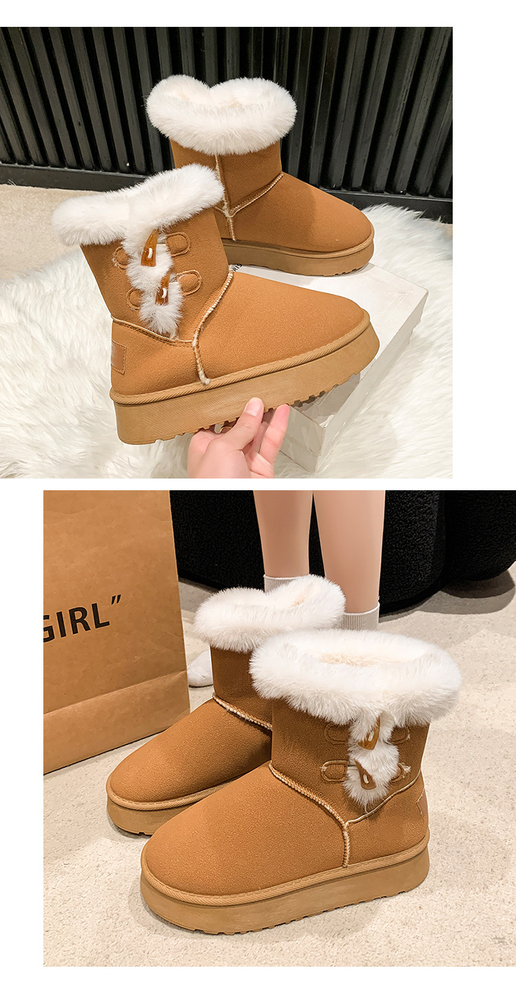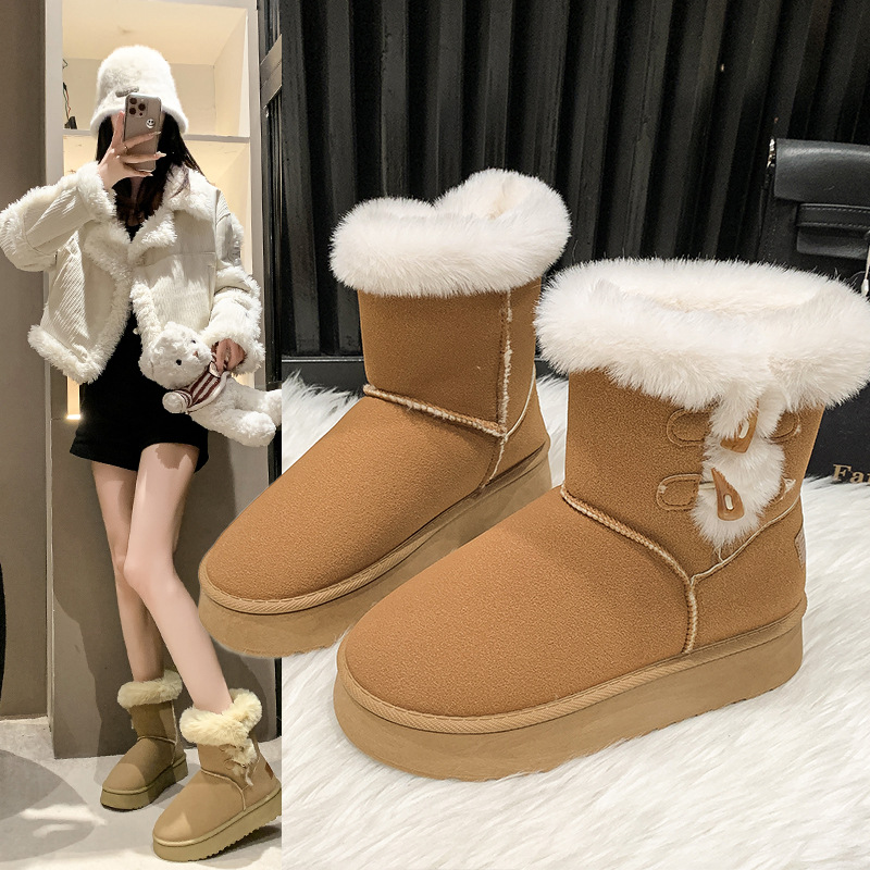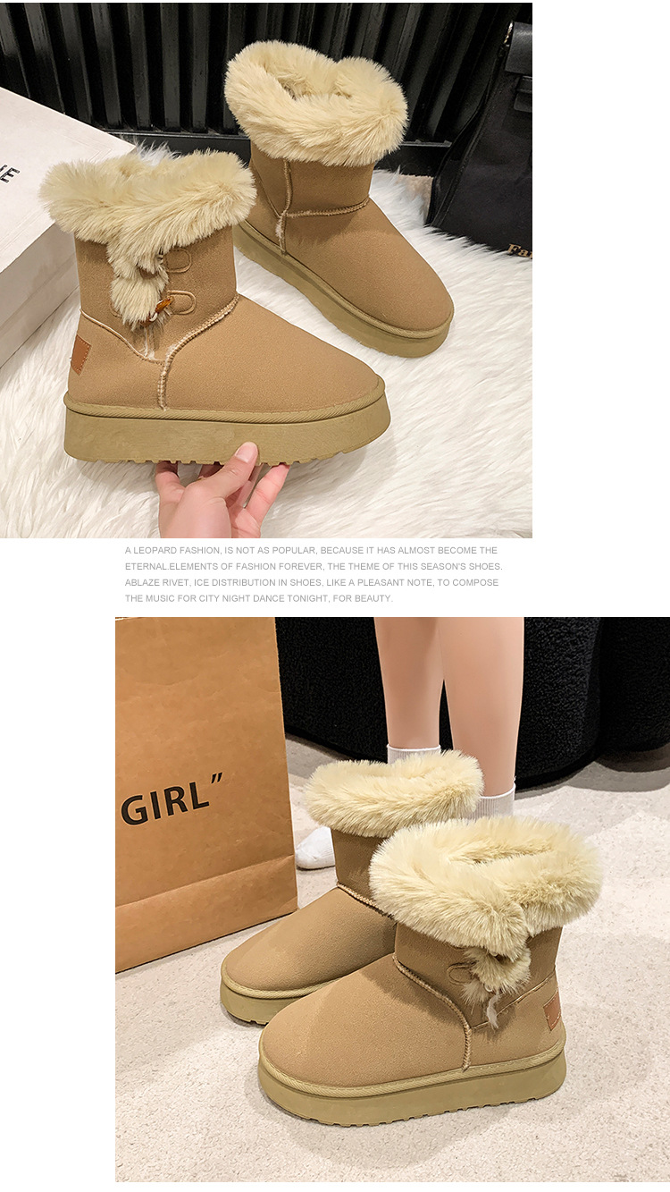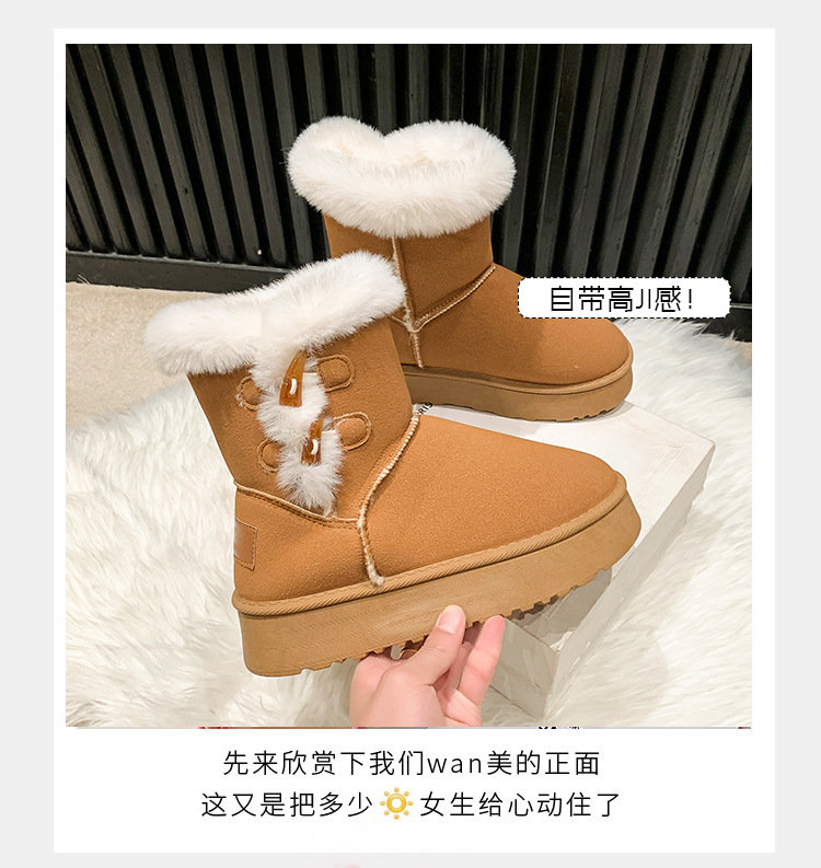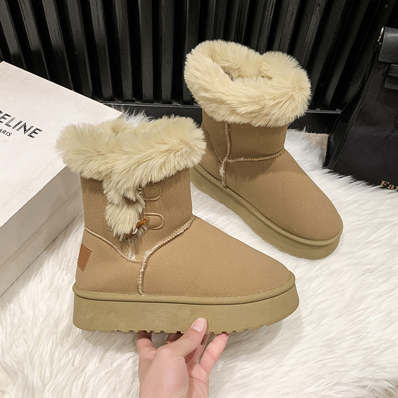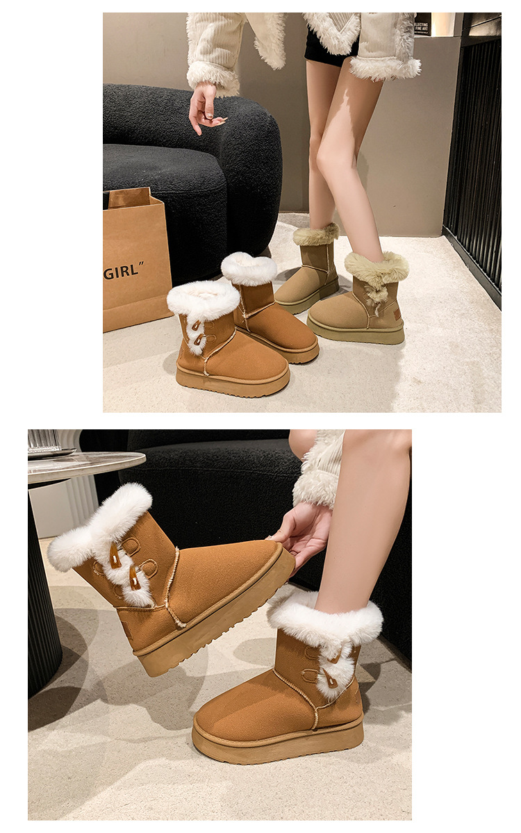 Зимние короткие ботинки для женщин 2025 года, с меховой подкладкой, толстой подошвой, пряжкой из цельного рога, утолщенные, на одной ноге, из хлопчатобумажной ткани.
