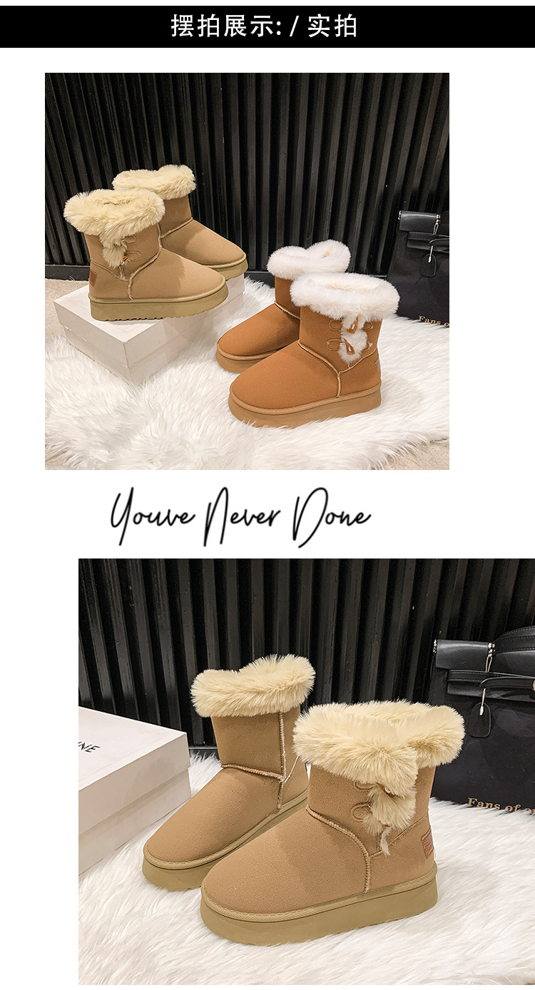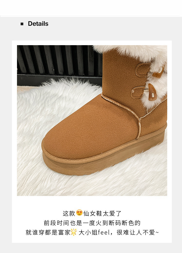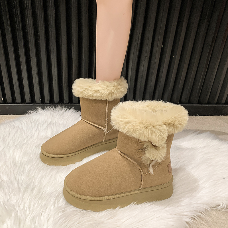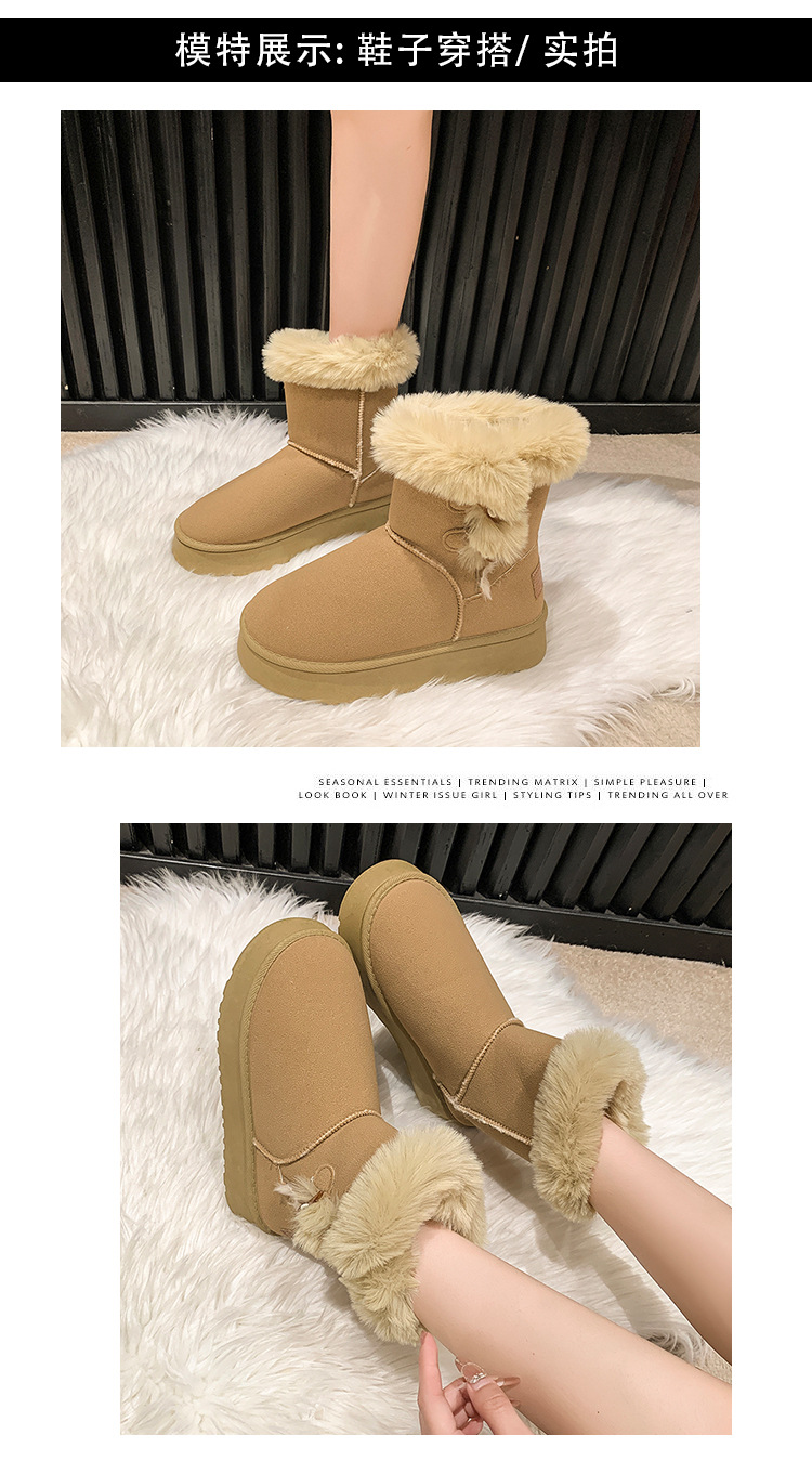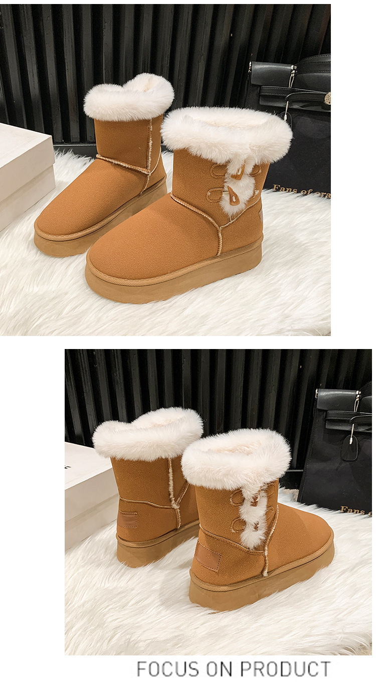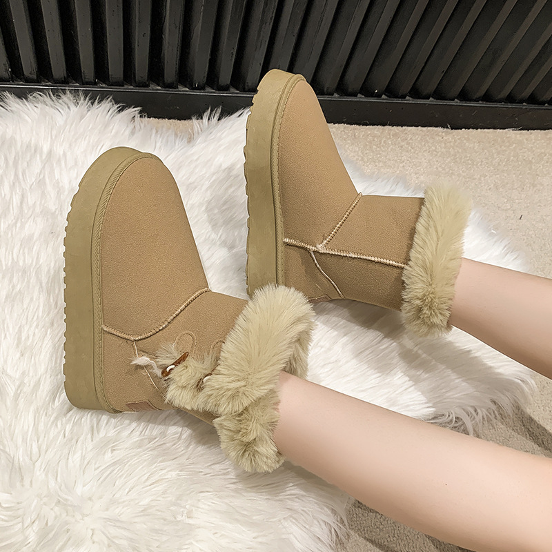 Зимние короткие ботинки для женщин 2025 года, с меховой подкладкой, толстой подошвой, пряжкой из цельного рога, утолщенные, на одной ноге, из хлопчатобумажной ткани.