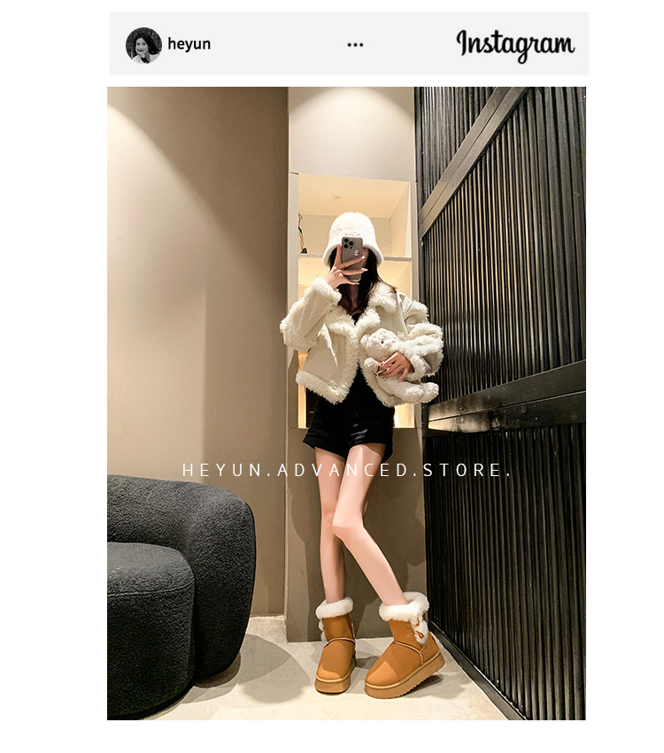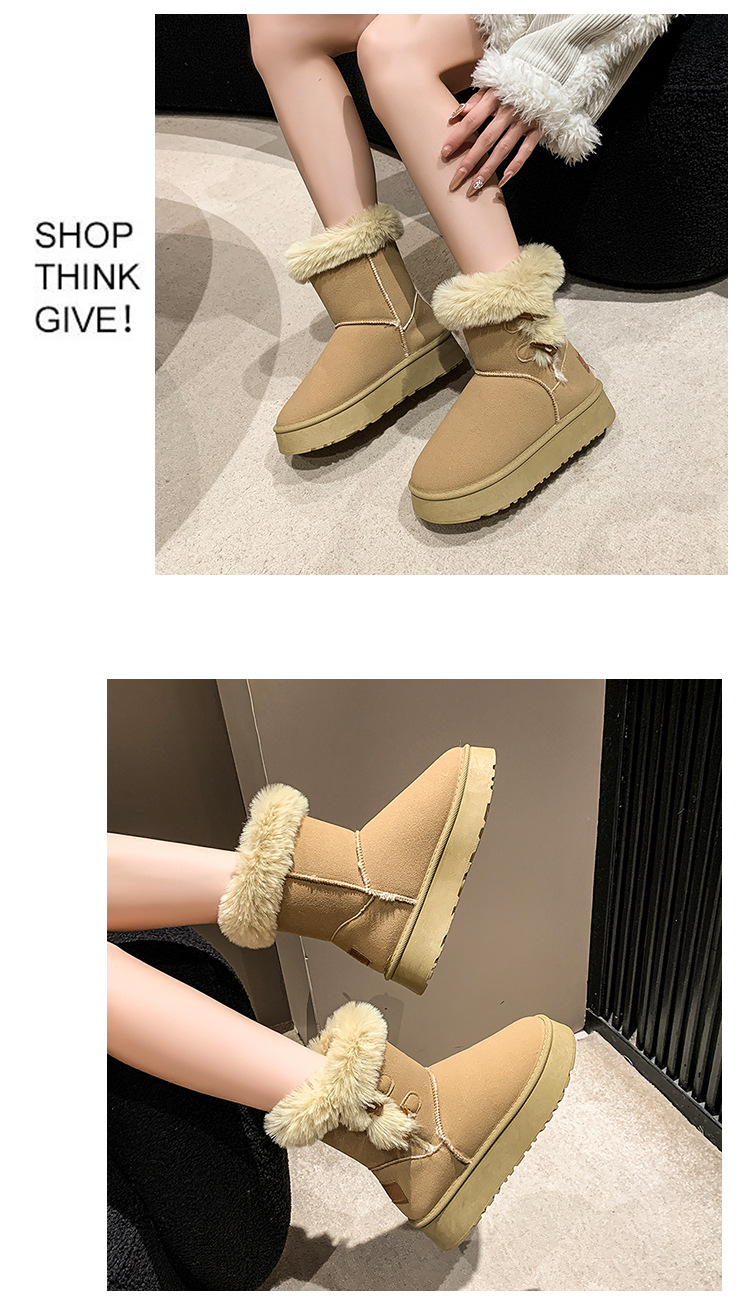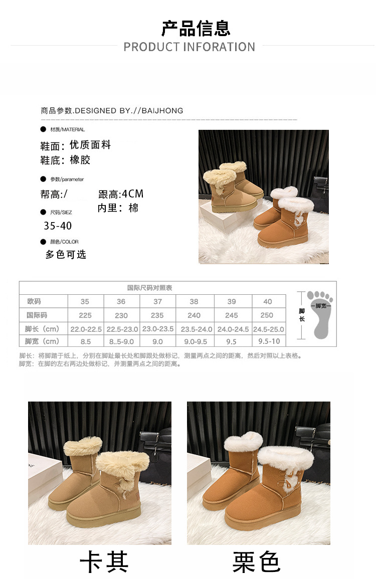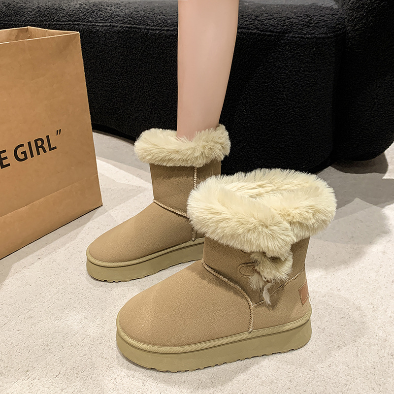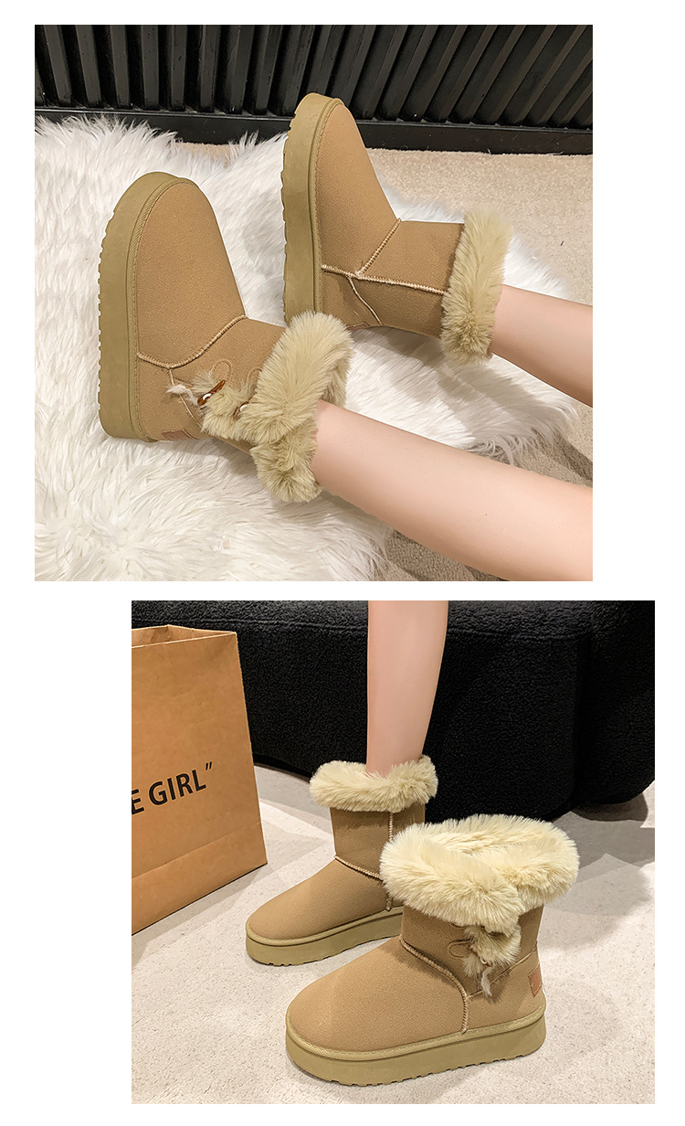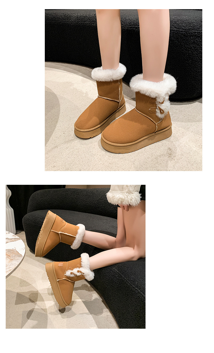 Зимние короткие ботинки для женщин 2025 года, с меховой подкладкой, толстой подошвой, пряжкой из цельного рога, утолщенные, на одной ноге, из хлопчатобумажной ткани.