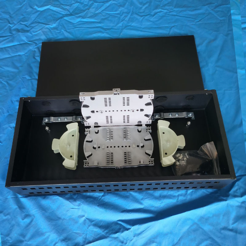 配置:光缆固定装置、熔接盘和过线环,熔接盘采用叠加式结构,配置灵活,最大容量可达48芯,使用带状光缆可达96芯