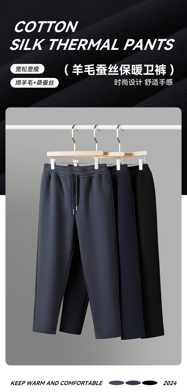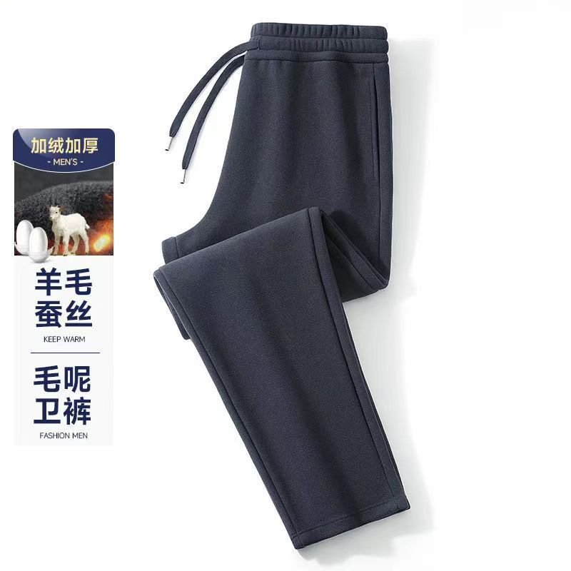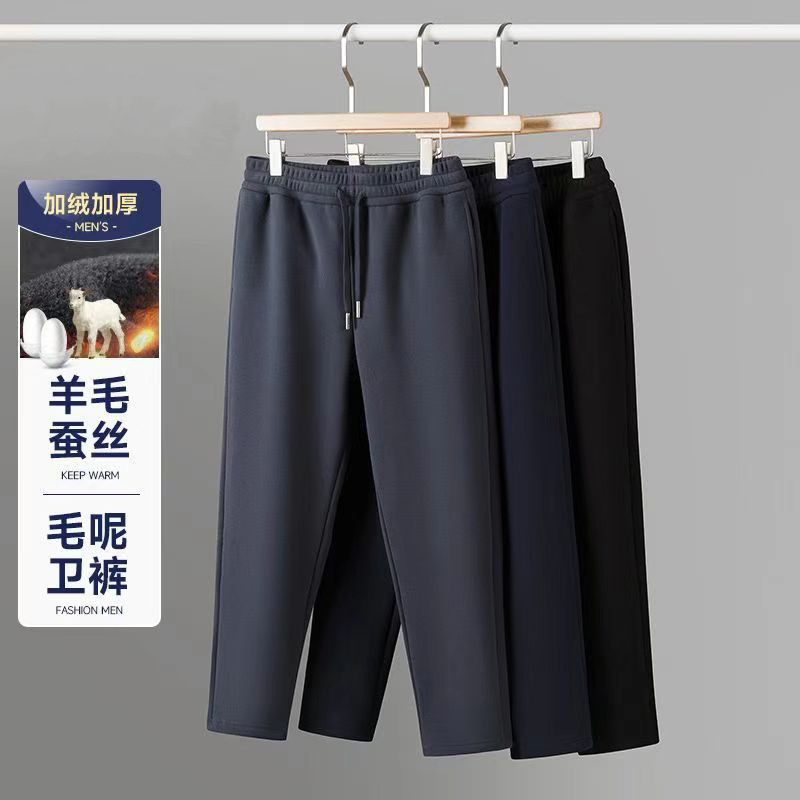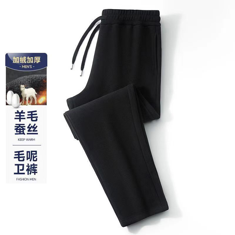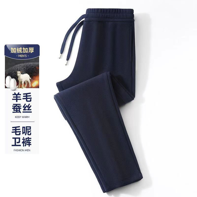 【Овечья шерсть + шелк шелковицы】Осенние и зимние утолщенные ветрозащитные брюки на флисовой подкладке, теплые спортивные штаны, мужские повседневные спортивные длинные брюки