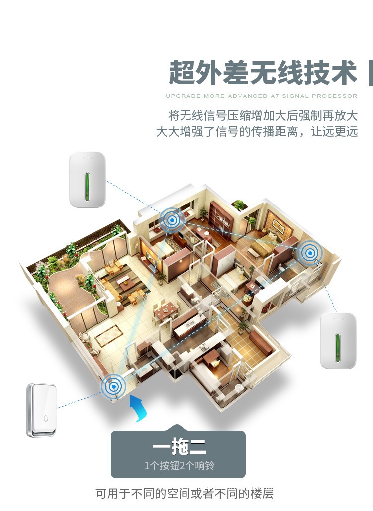 Беспроводной дверной звонок британского стандарта для домашнего использования, британская вилка, самогенерирующийся водонепроницаемый пульт дистанционного управления на большие расстояния, электронный один-к-одному, Xuanfangsu.