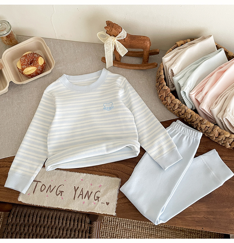 Детские осенне-зимние пижамы из чистого хлопка класса А, бесшовные мягкие вельветовые эластичные пижамы, комплект нижнего белья для дома для мальчиков и девочек