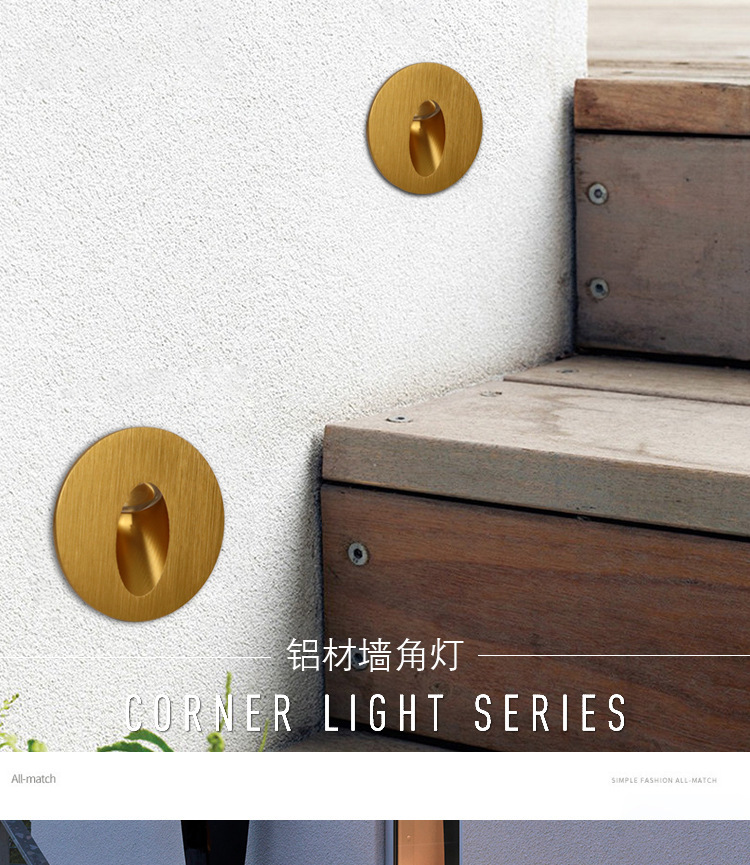 светодиодный настенный светильник, ступенчатый светильник, алюминиевый встроенный угловой светильник, ступенчатый светильник, квадратный настенный светильник, круглый настенный светильник для прохода