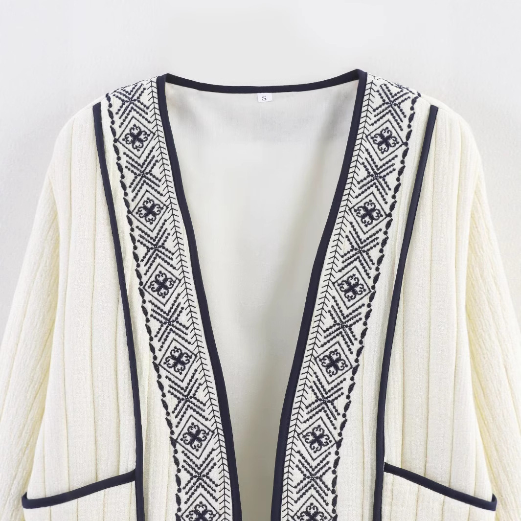 Женская одежда для внешней торговли 2025, ранняя осень, модный простой декоративный кардиган в европейском и американском стиле без пуговиц, куртка для женщин S8850