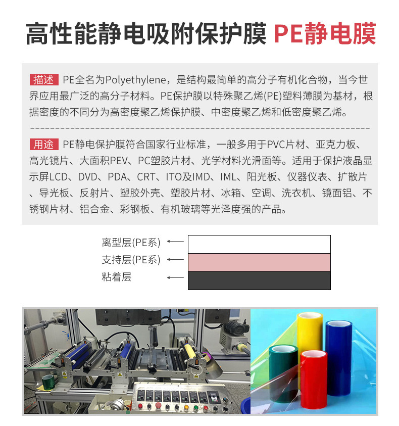 PE электростатическая пленка самоклеящаяся защитная пленка для оборудования для линз оптовая продажа красочная высокопроизводительная электростатическая адсорбция защита от царапин