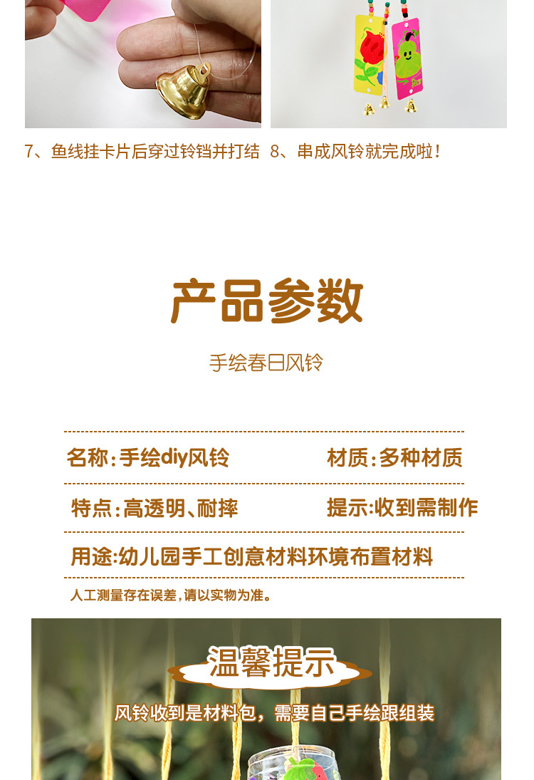 Детский сад, экологически инновационные, креативные, красочные целлофановые закладки ручной работы, колокольчики ручной работы, материал «сделай сам», упаковка, уличное подвесное украшение