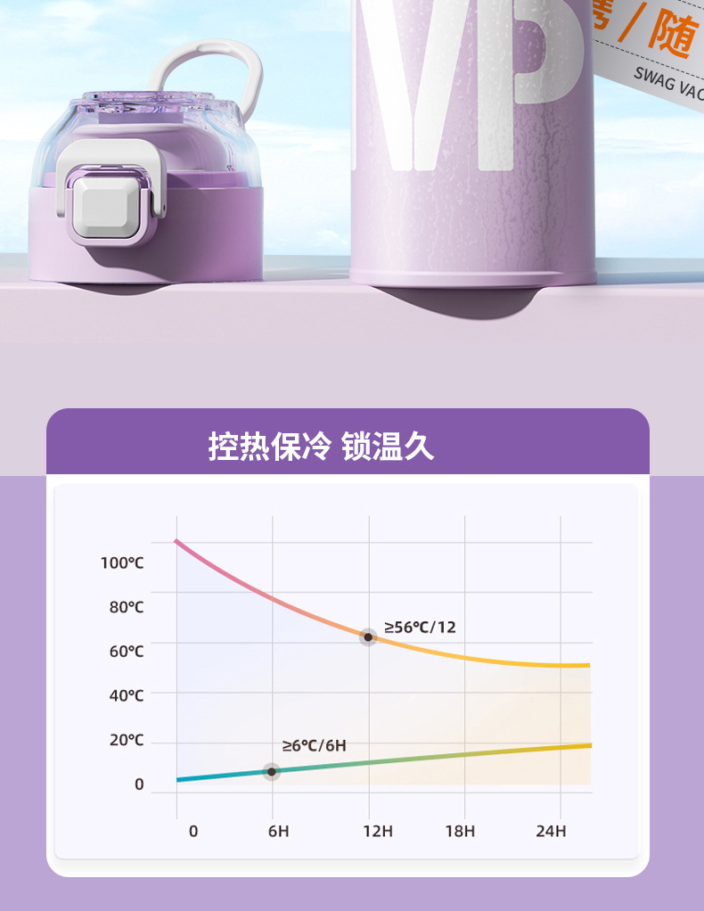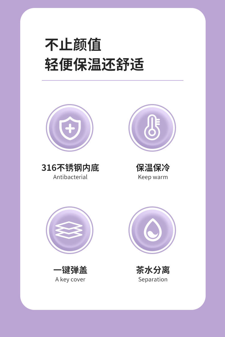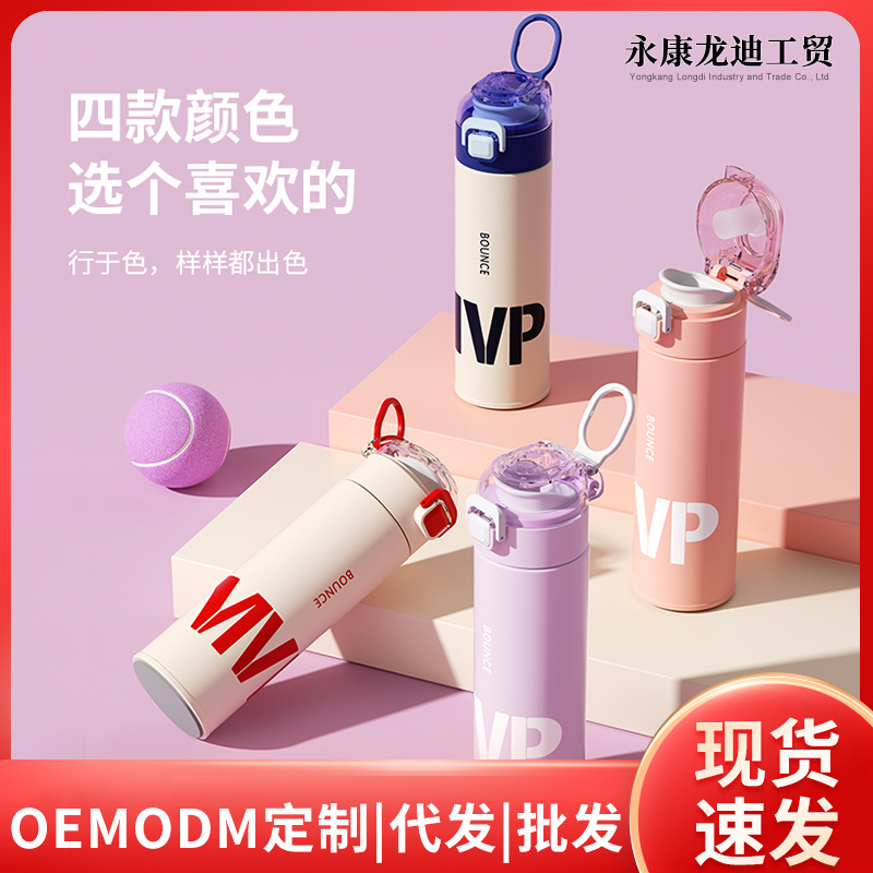 Новая высококачественная термокружка из нержавеющей стали 316 для студентов и студенток с кольцом для переноски и функцией быстрого открывания (одно касание)