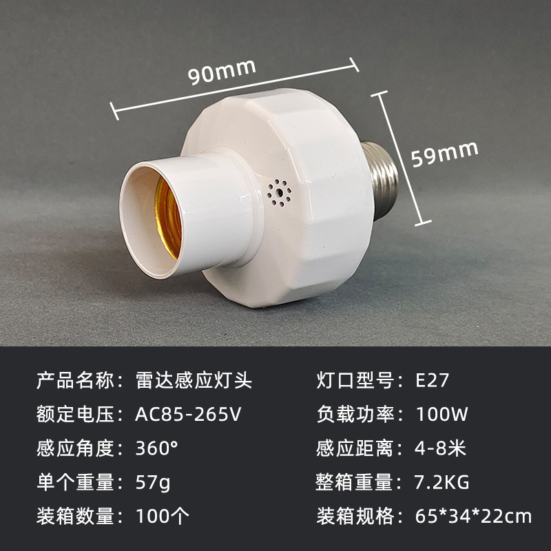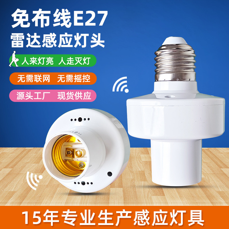 Держатель лампы с радарным датчиком, лестничный коридор, гараж, интеллектуальный держатель лампы с датчиком человеческого тела, винтовая розетка E27 без проводки