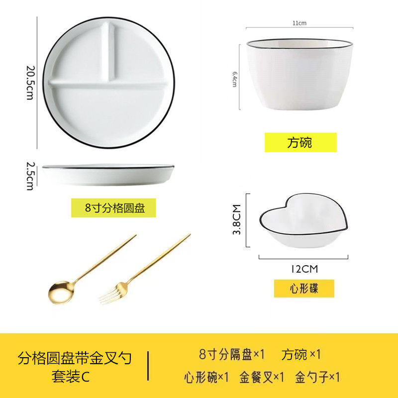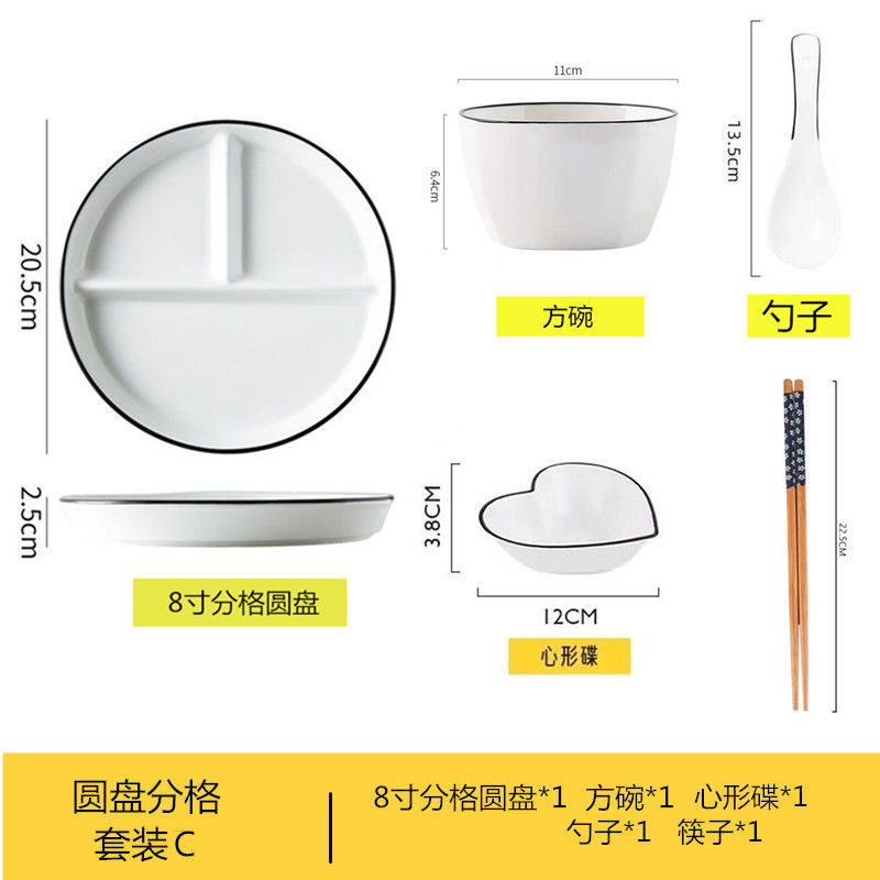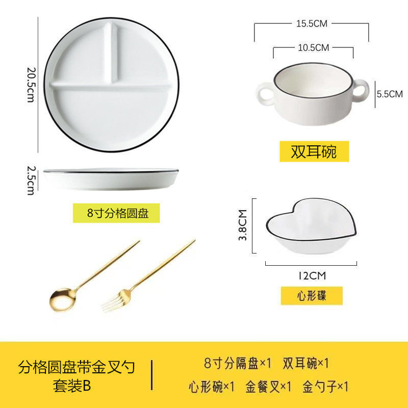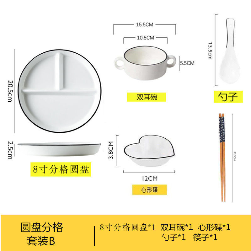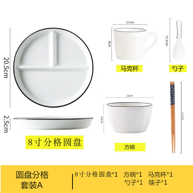 Керамическая простая разделенная тарелка, тарелка для завтрака, бытовая тарелка для еды на одного человека, набор мисок, тарелка для риса, разделенная тарелка с тремя отделениями
