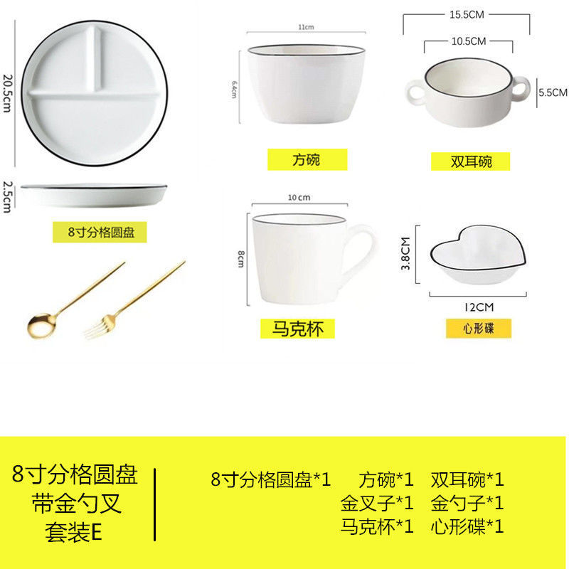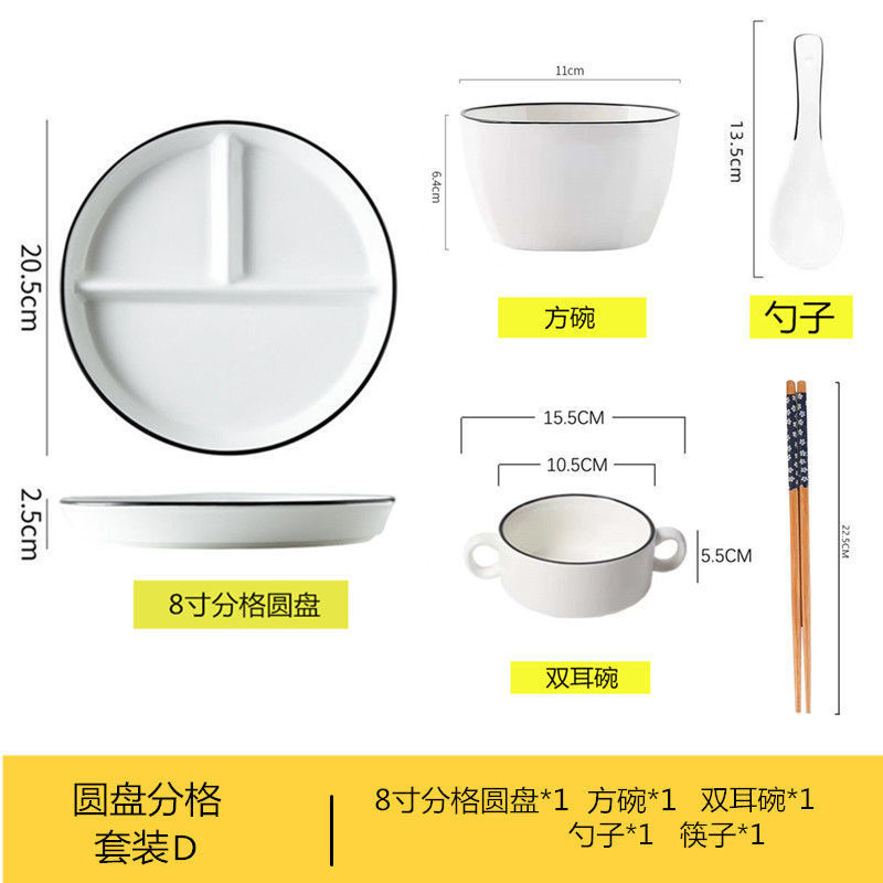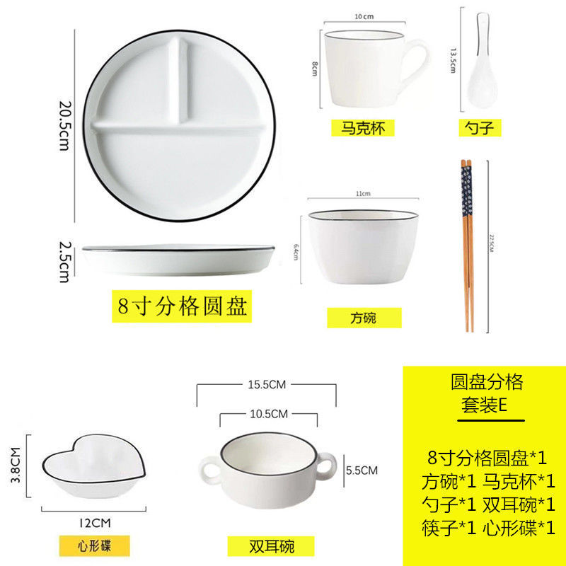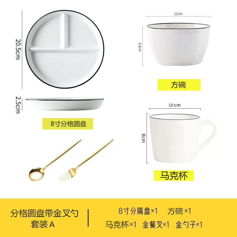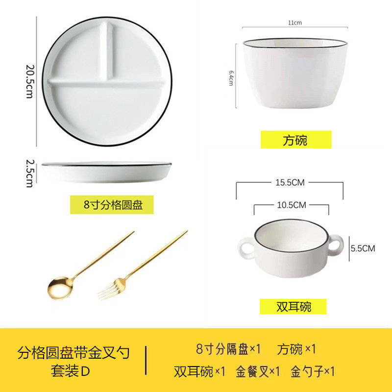 Керамическая простая разделенная тарелка, тарелка для завтрака, бытовая тарелка для еды на одного человека, набор мисок, тарелка для риса, разделенная тарелка с тремя отделениями