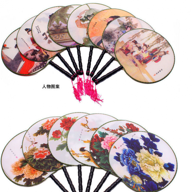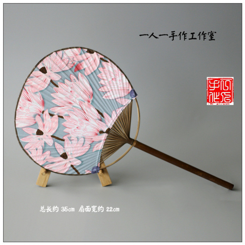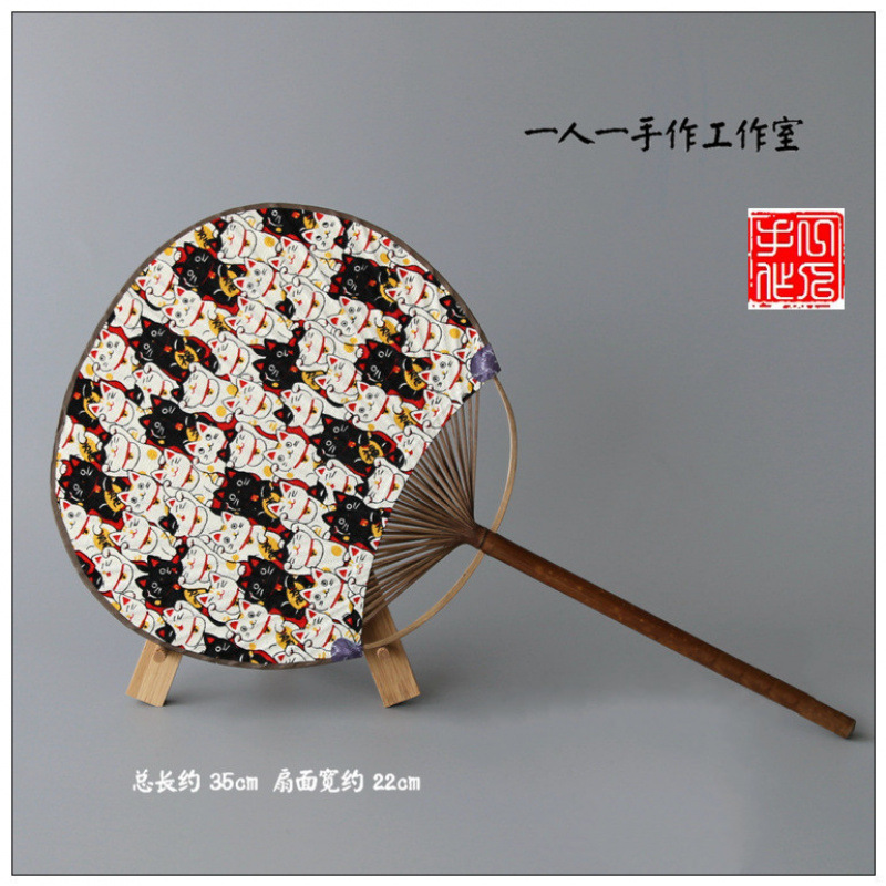 Круглый веер, бамбуковая летняя поверхность из хлопка и льна, классический веер из котячьего хвоста, традиционный китайский женский дворцовый веер ручной работы, круглый танцевальный веер
