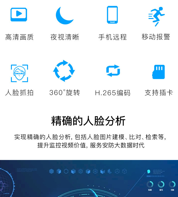 • 采用高效补光阵列,低功耗,白光补光30m,红外补光150m