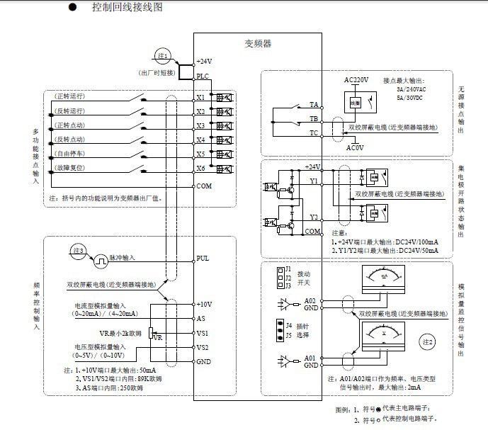 启动、停止、正反转、点动、多段速、自由停车、复位、加减速时间选择、频率设定通道选择、外部故障报警;