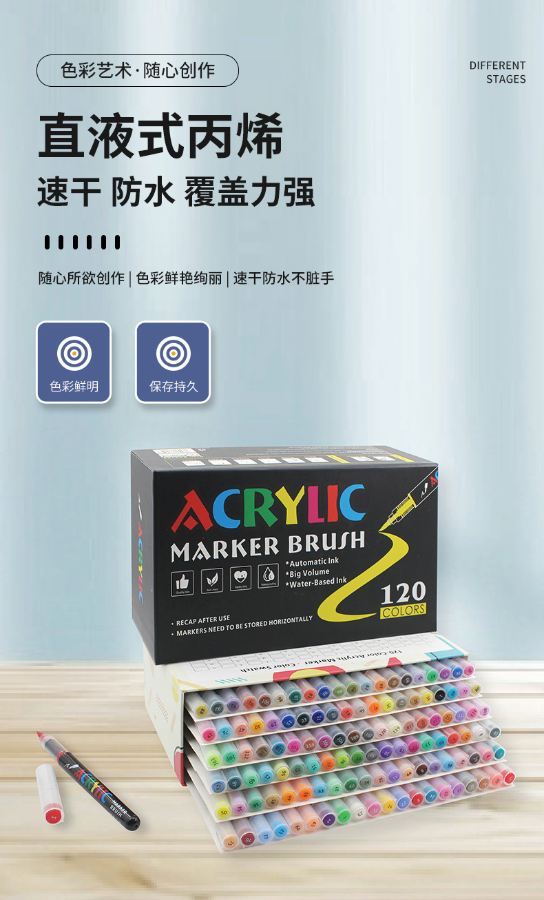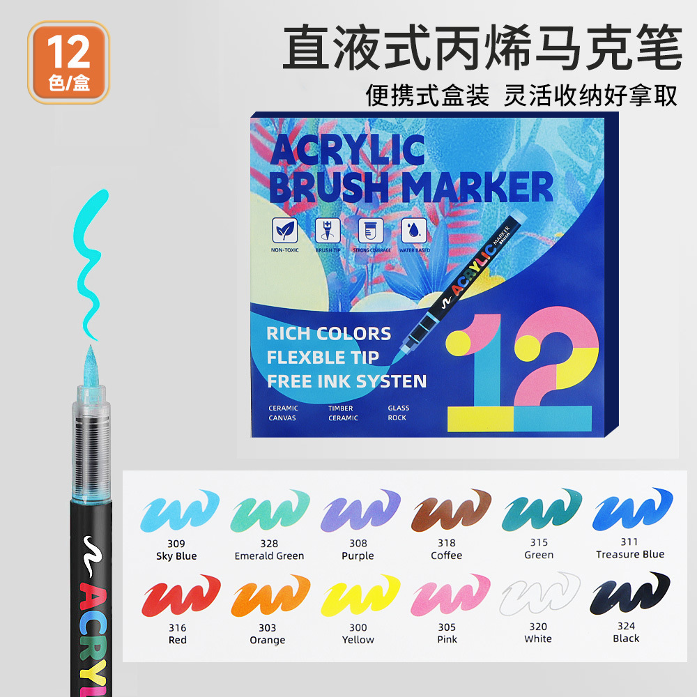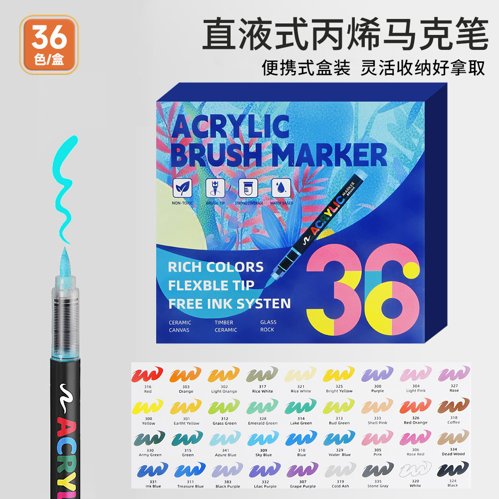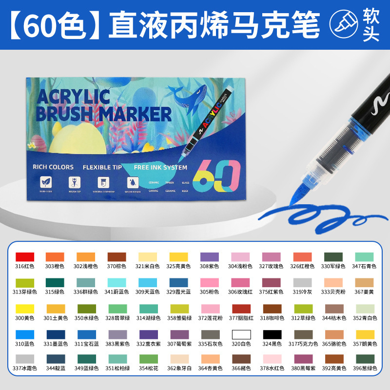 Беспрессованный прямой жидкий акриловый маркер, детская художественная кисть для граффити, мягкая головка, штабелируемая цветная акриловая ручка, легко моющаяся