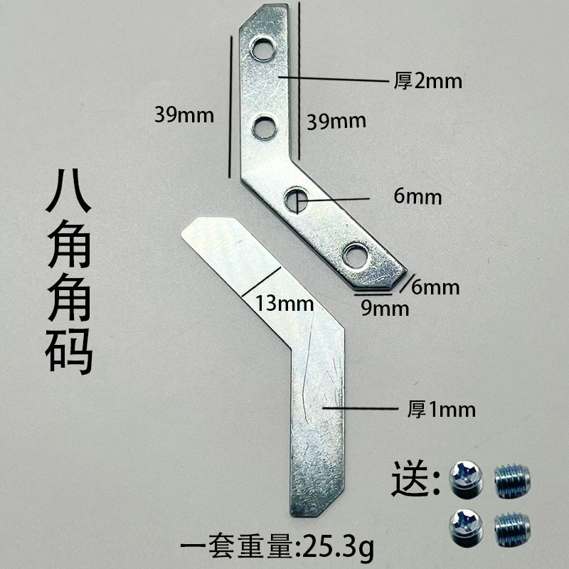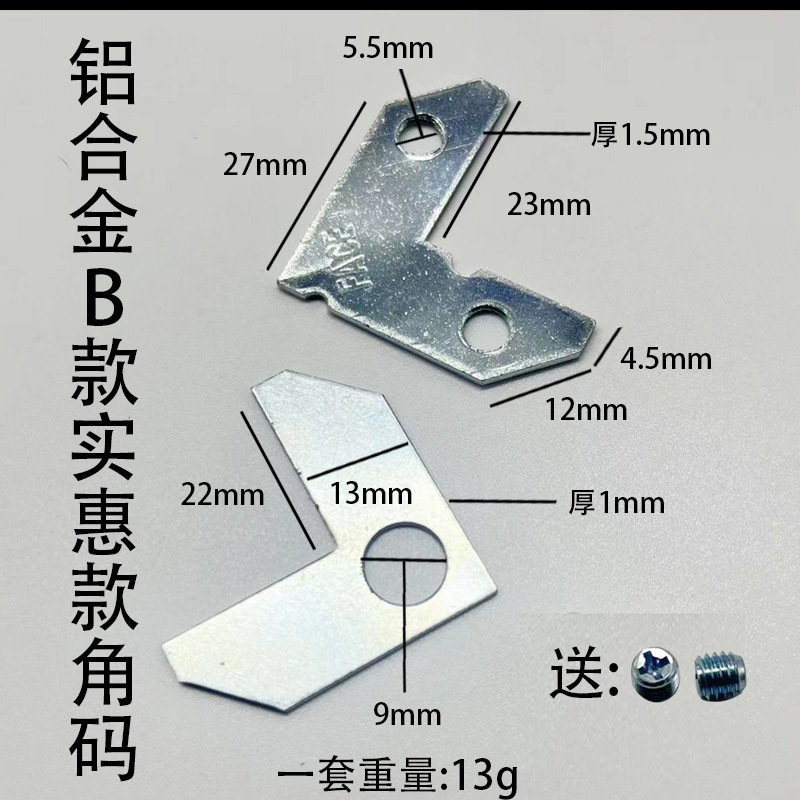 Утолщенный угловой код типа A (винты в комплекте); Доступный угловой код модели B (винты в комплекте); Треугольный угловой код (винты в комплекте); Треугольный угловой код с четырьмя отверстиями (винты входят в комплект поставки); Угловой код из алюминиевого сплава с четырьмя отверстиями (винты входят в комплект поставки); Шестигранный код (винты в комплекте); Восьмиугольный код (винты в комплекте); Маленькая квадратная подвеска; Китайская боковая подвеска; Щедрое подвешивание; Длинный крючок из алюминиевого сплава (винты в комплекте); узкая шрапнель; Широкая шрапнель; 97 осколков; Новый крючок из алюминиевого сплава.; Код угла полукруглого соединения; Большая соединительная деталь круглой рамы из алюминиевого сплава; Винты из алюминиевого сплава 6*6 мм, 20 шт.; Винты из алюминиевого сплава 6*7 мм, 20 шт.; Кронштейн из железного стержня для фоторамки из алюминиевого сплава; Большой кронштейн для фоторамки из алюминиевого сплава