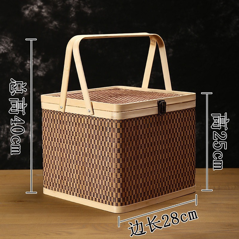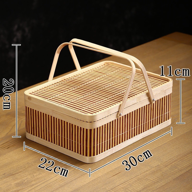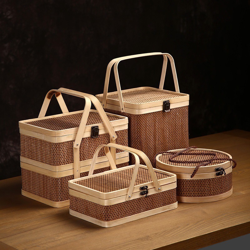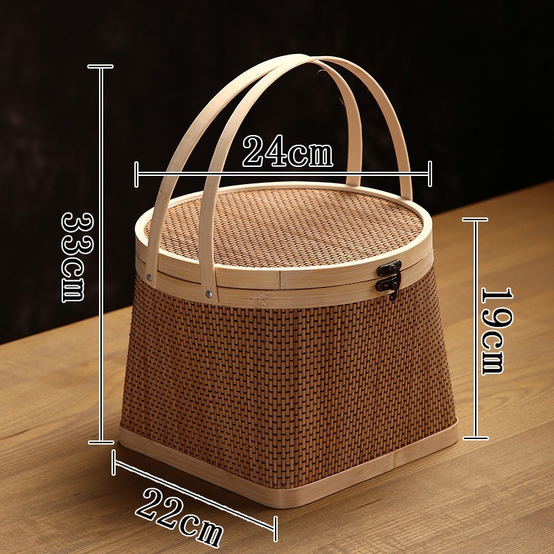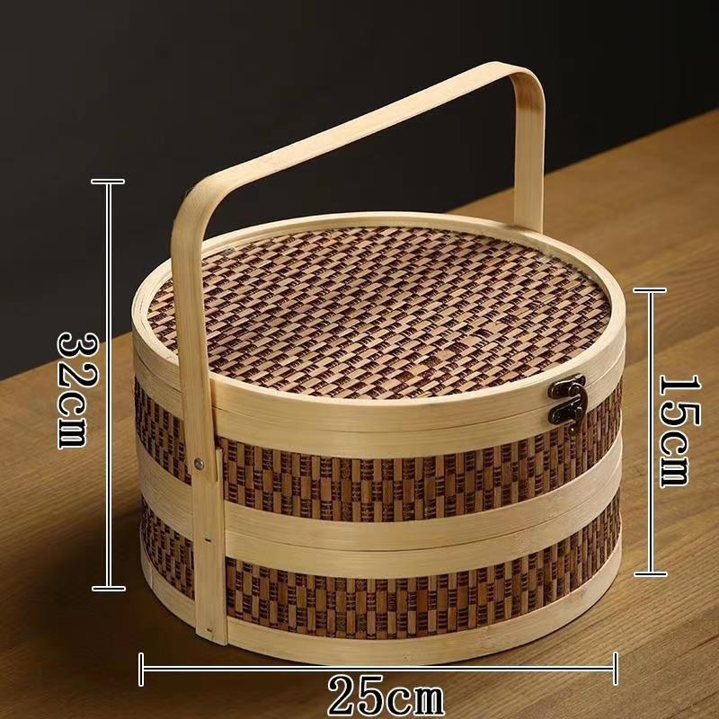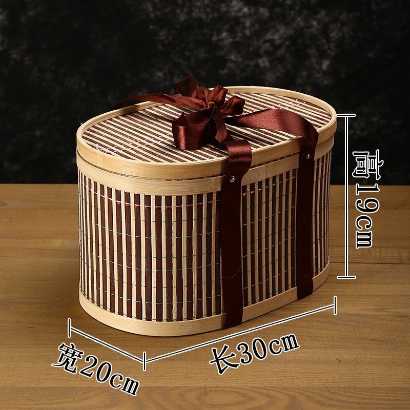 Бамбуковая круглая корзина для фруктов, чай, подарочная коробка из бамбукового плетения, корзина под новогоднюю корзину, корзина для рисовых пельменей, лунный торт, полностью ручная работа
