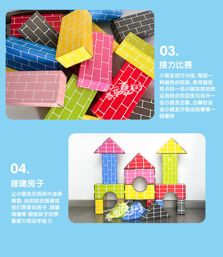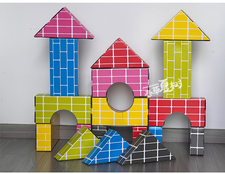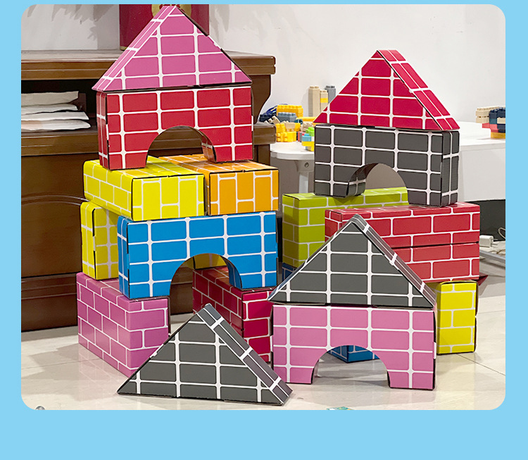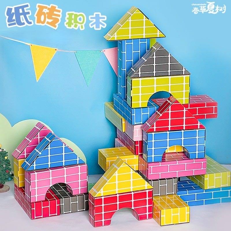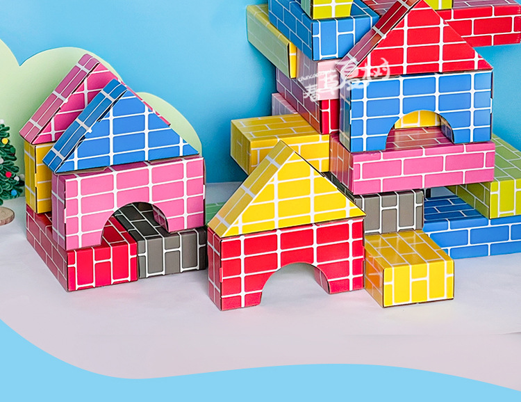 Красочные детские искусственные бумажные кирпичи, строительные блоки, строительная площадка, материал, пакет, детский сад, бумажная оболочка, строительная площадка, картонные кирпичи