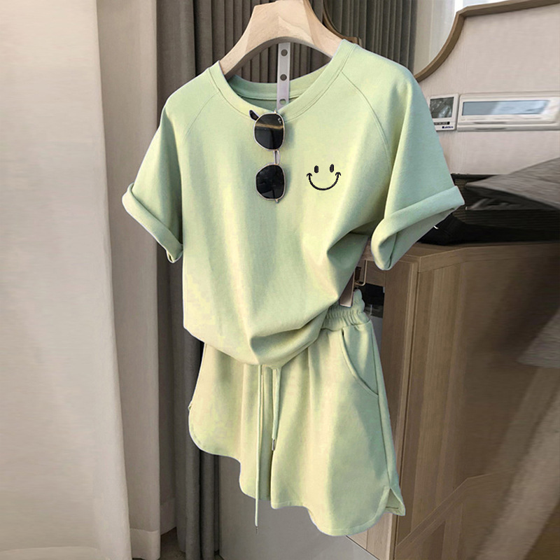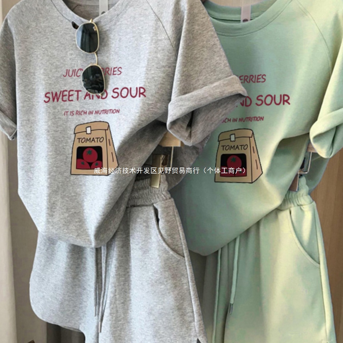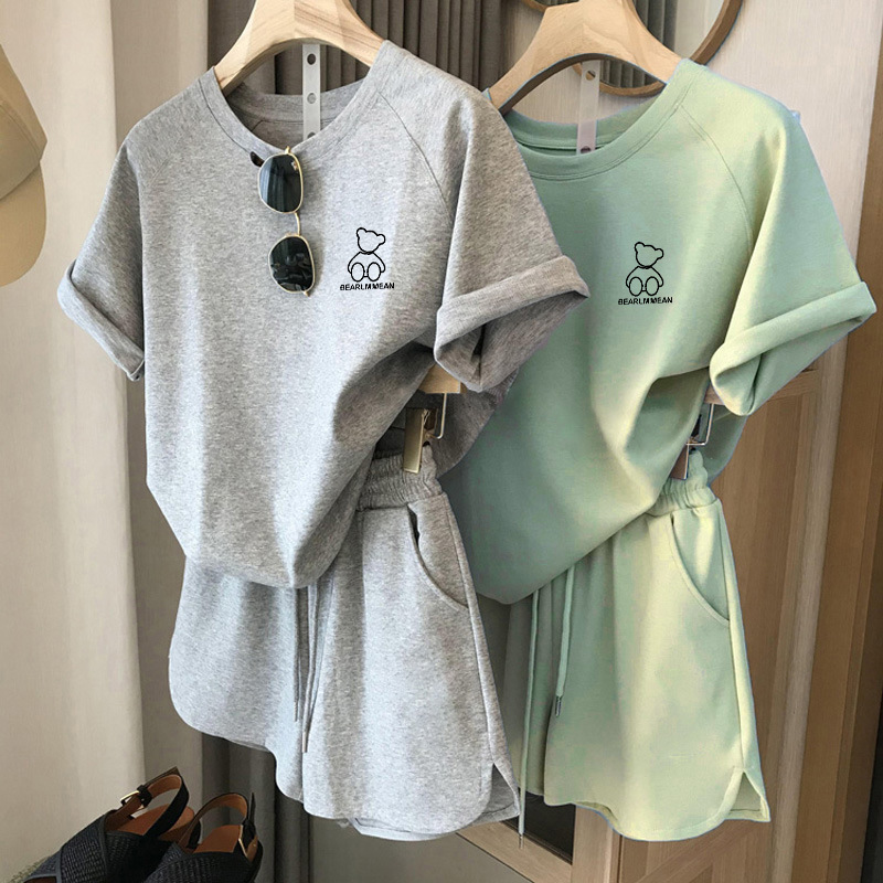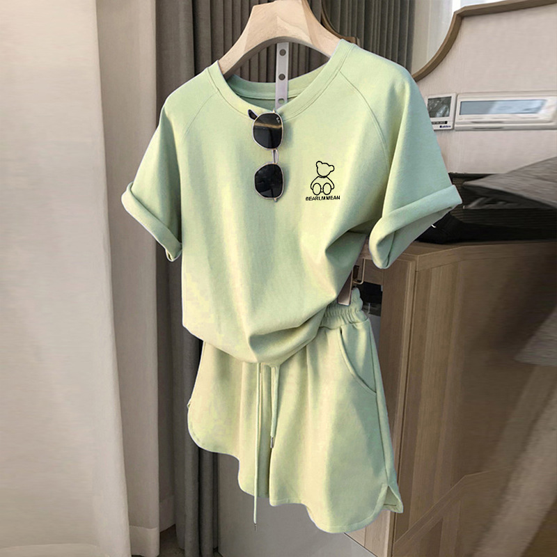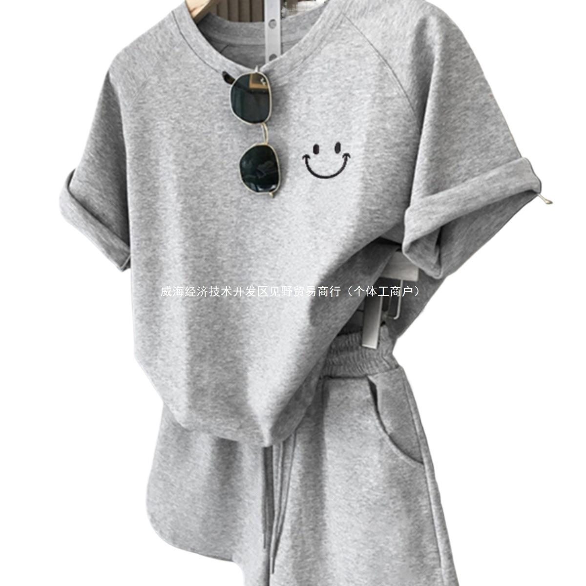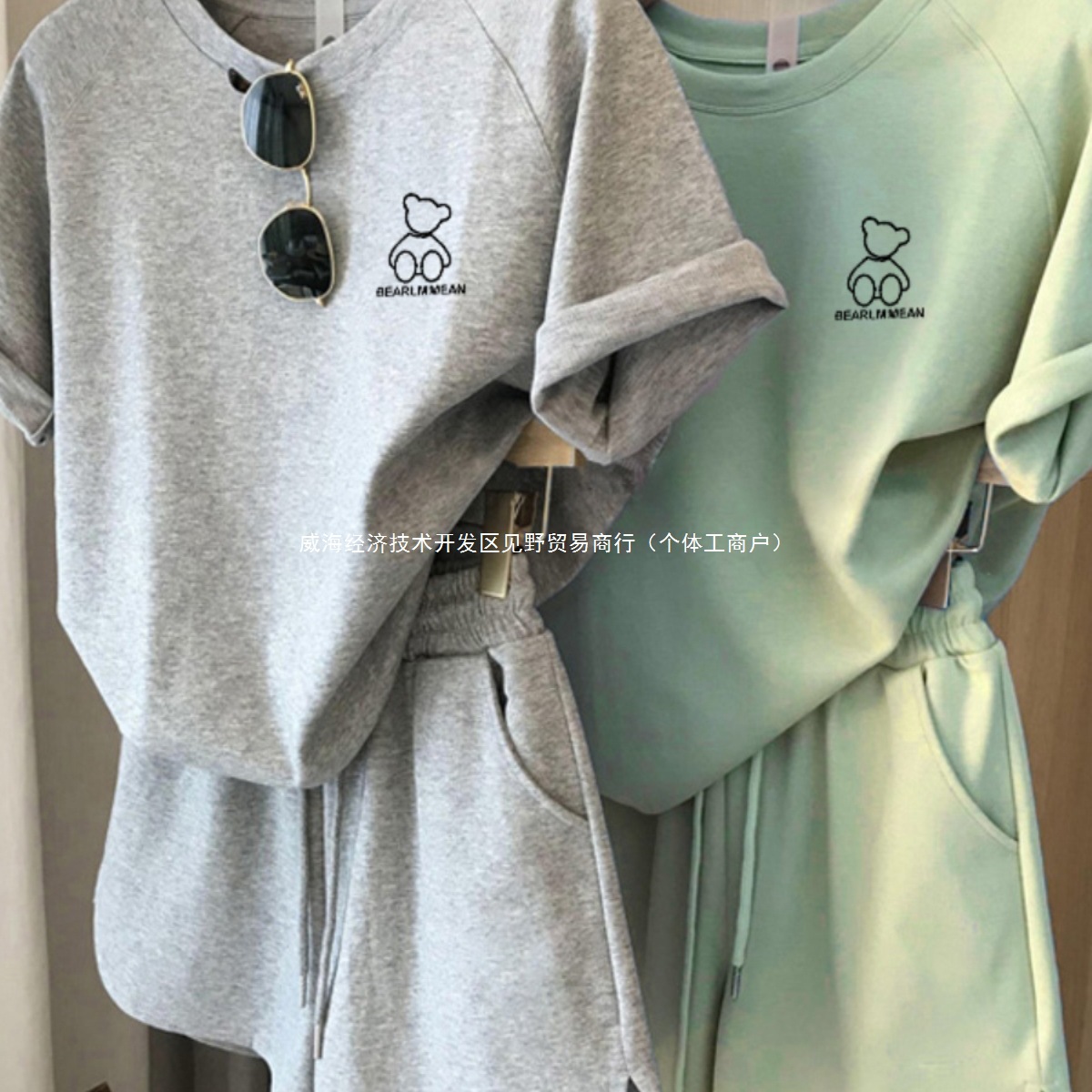 Летний костюм-шорты с короткими рукавами, повседневный спортивный костюм из двух частей для женщин летом, свободный, можно носить на улице, чтобы показать белизну и стройность.