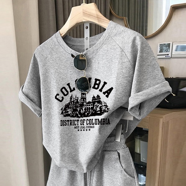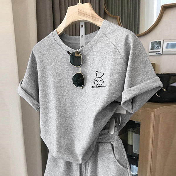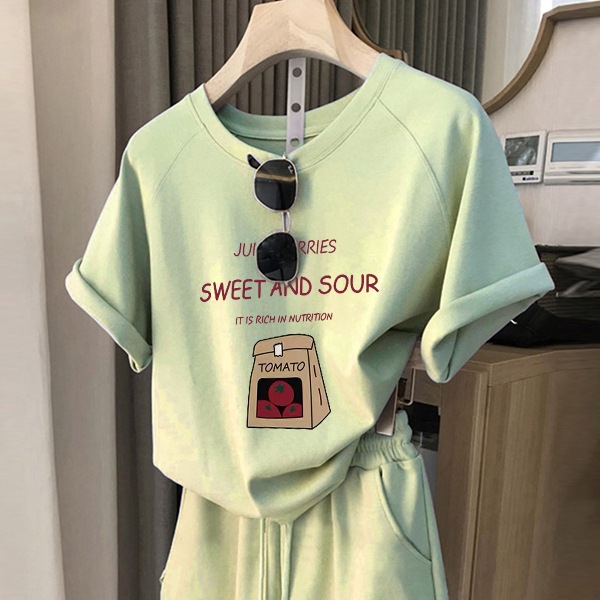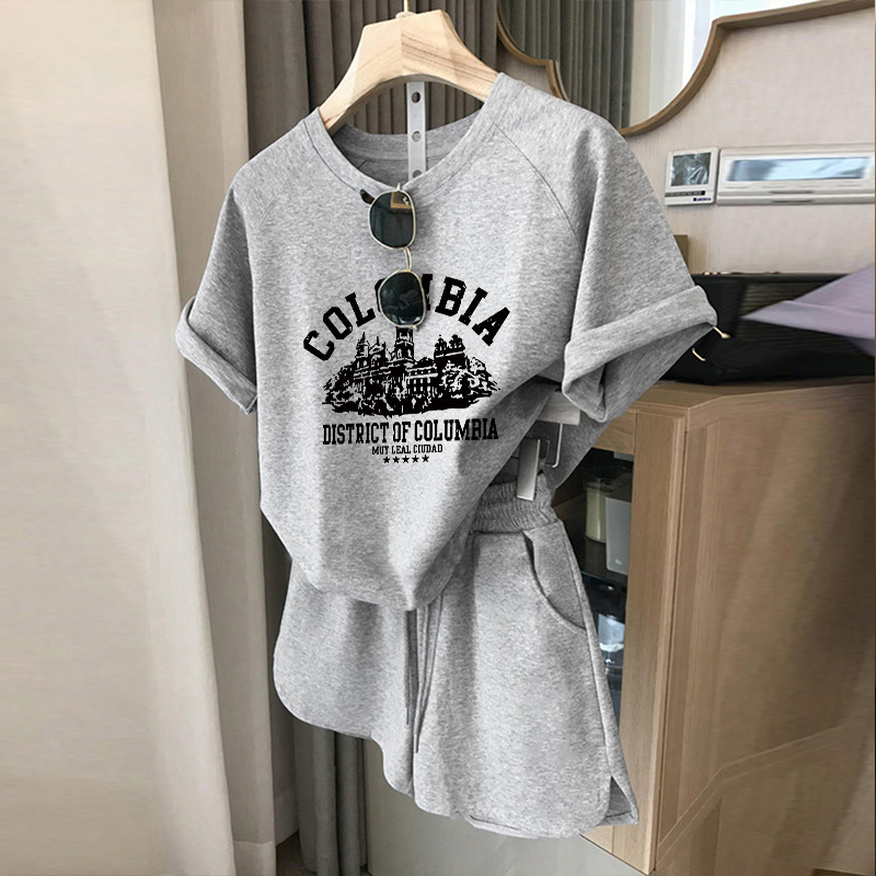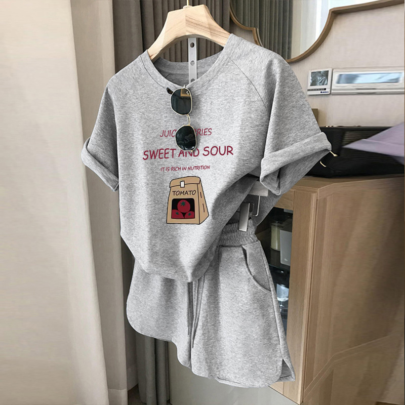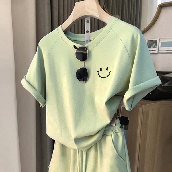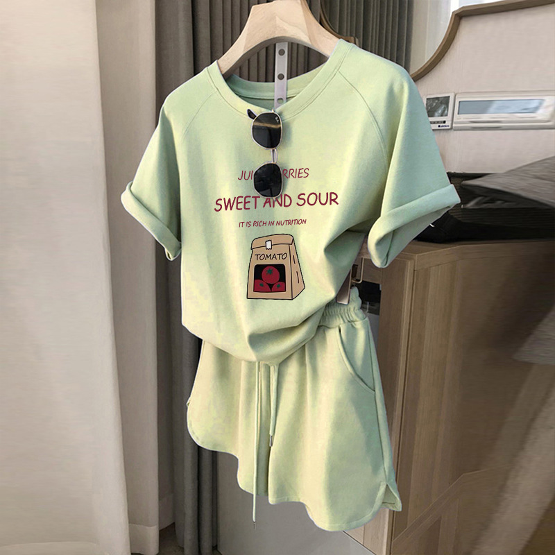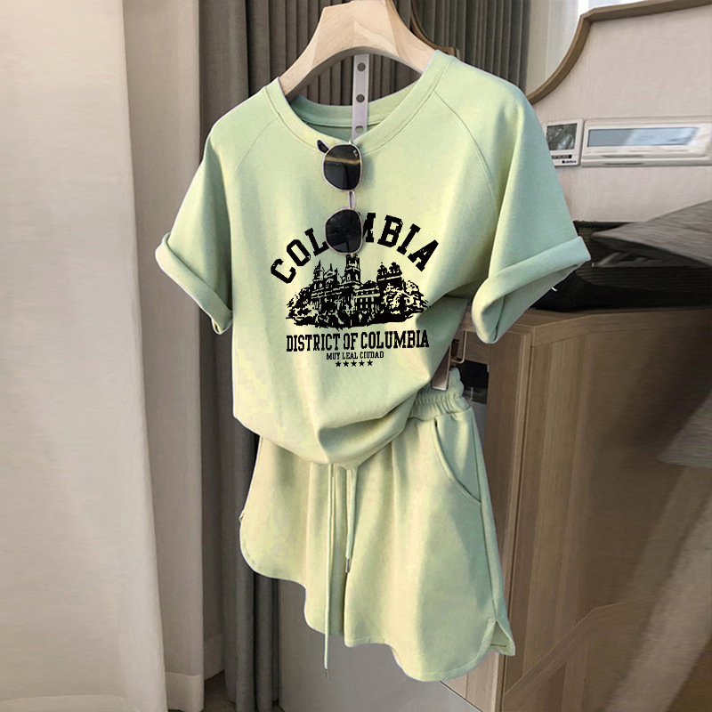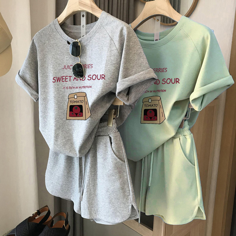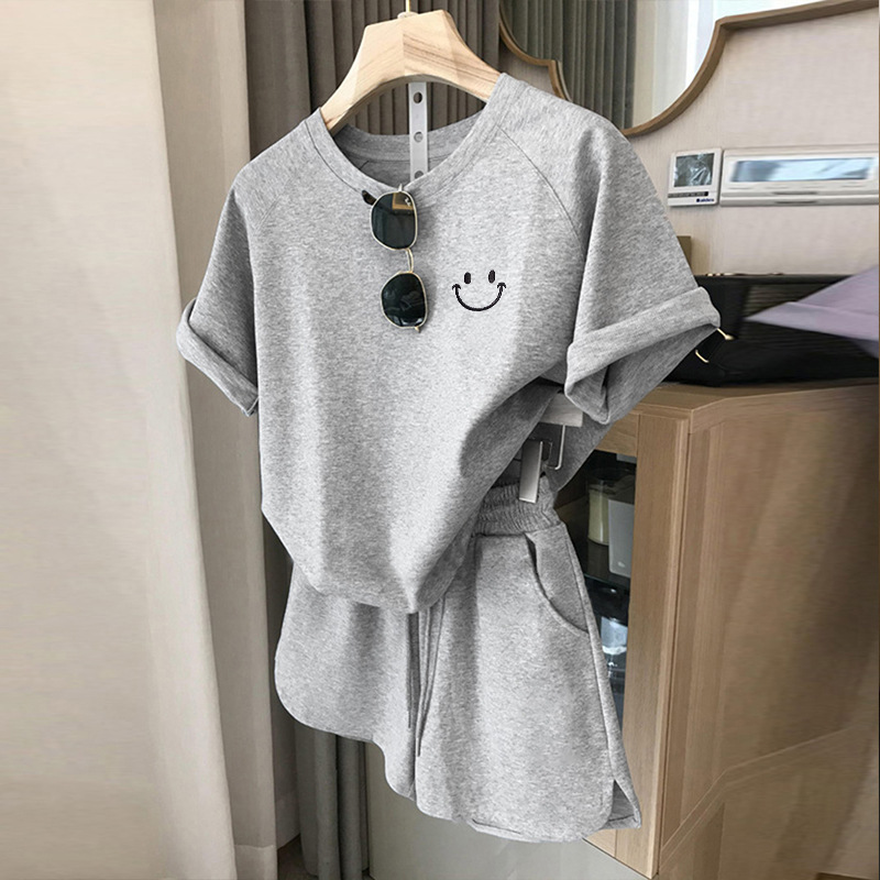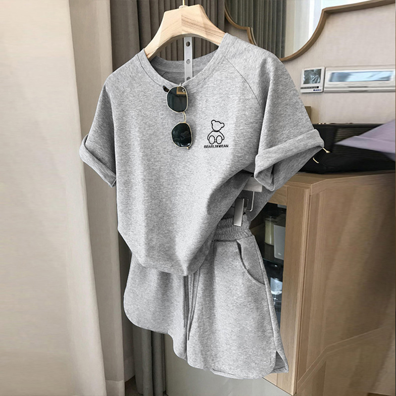 Летний костюм-шорты с короткими рукавами, повседневный спортивный костюм из двух частей для женщин летом, свободный, можно носить на улице, чтобы показать белизну и стройность.