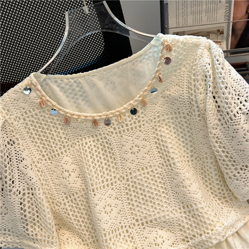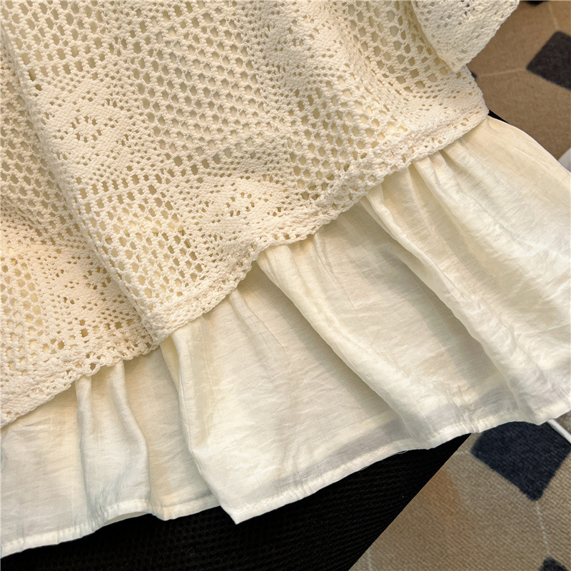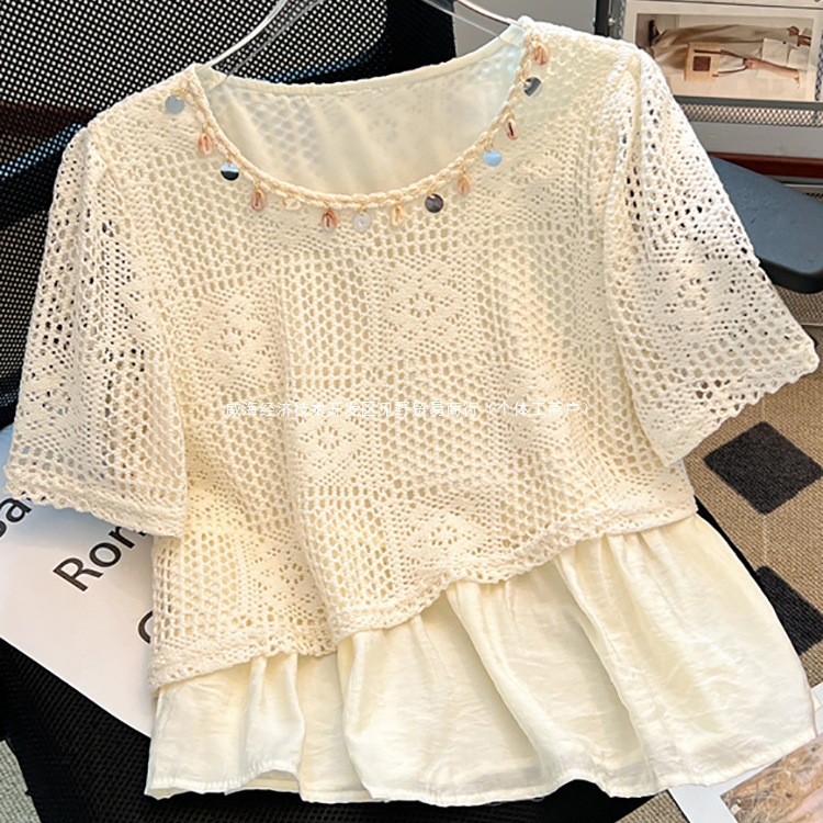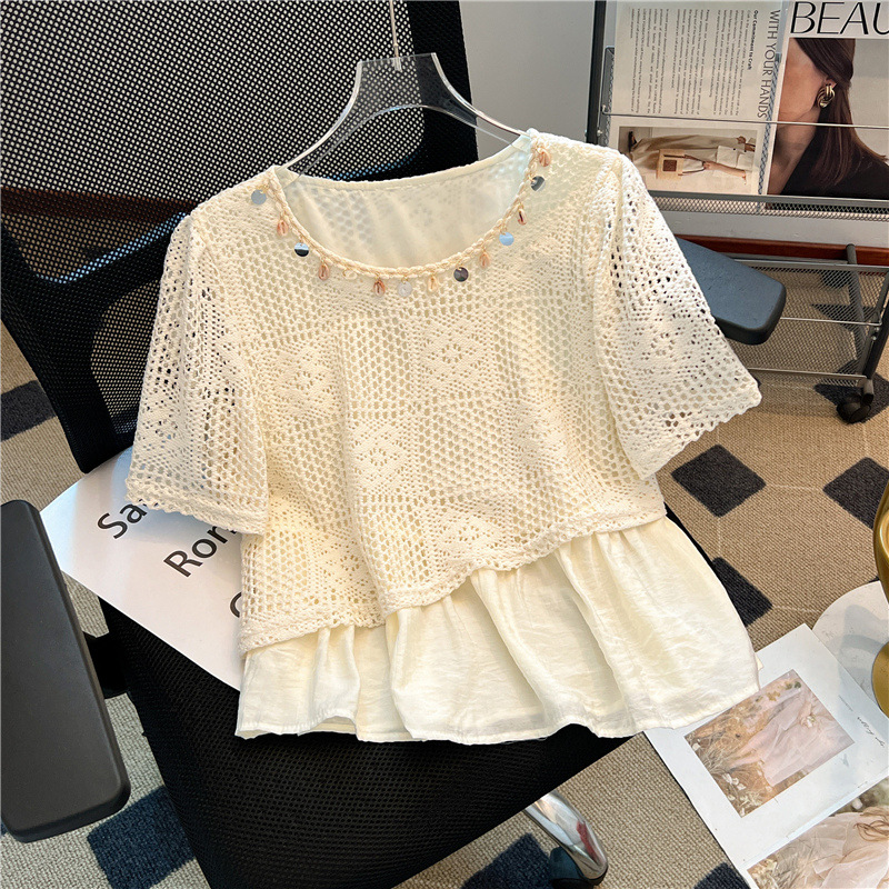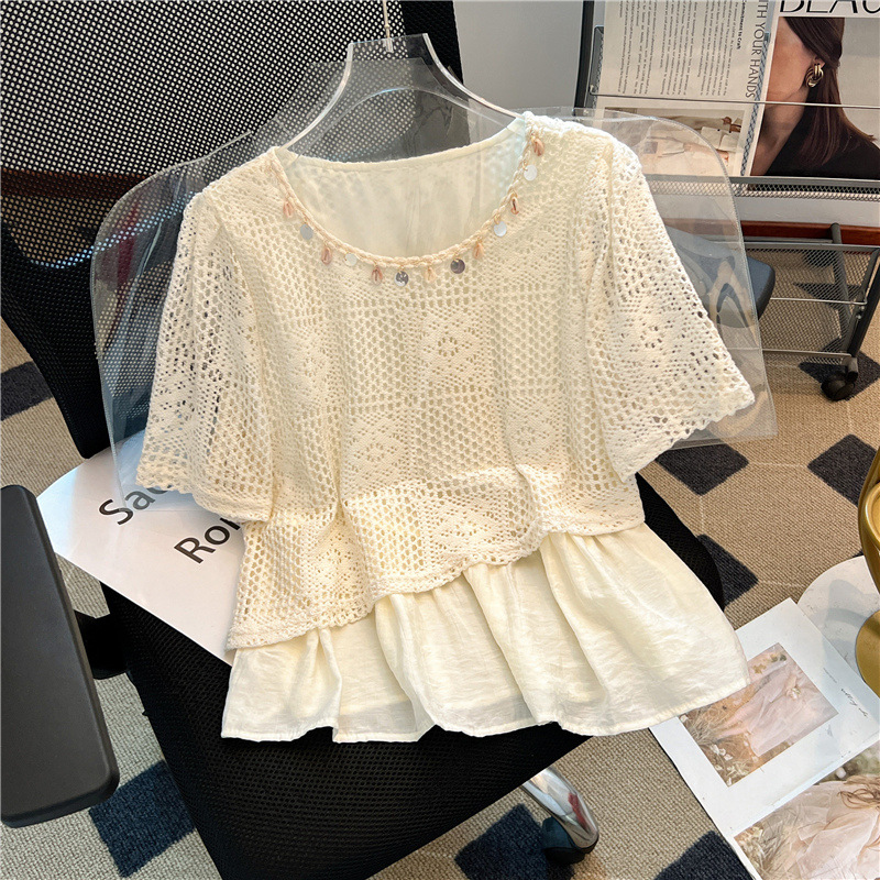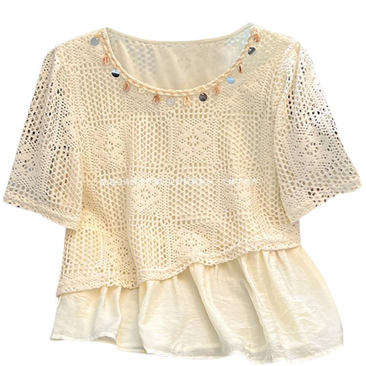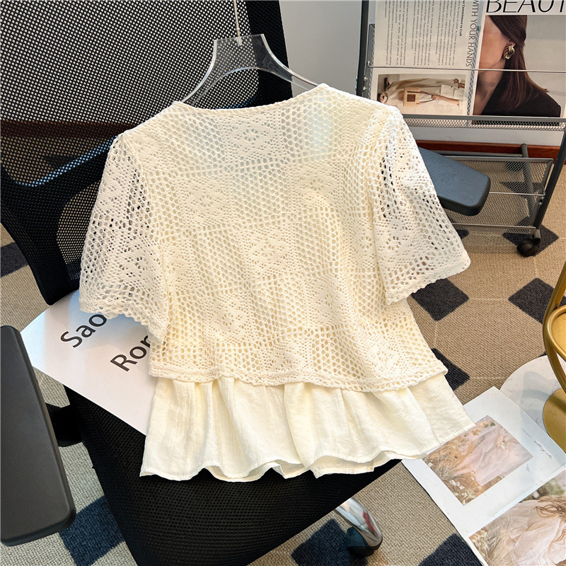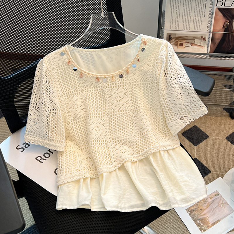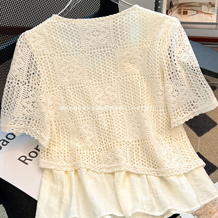 Брендовая скидка: женская рубашка с коротким рукавом, имитация двухслойного кроя, с вырезами, летняя новинка 2025, милая майка-топ.