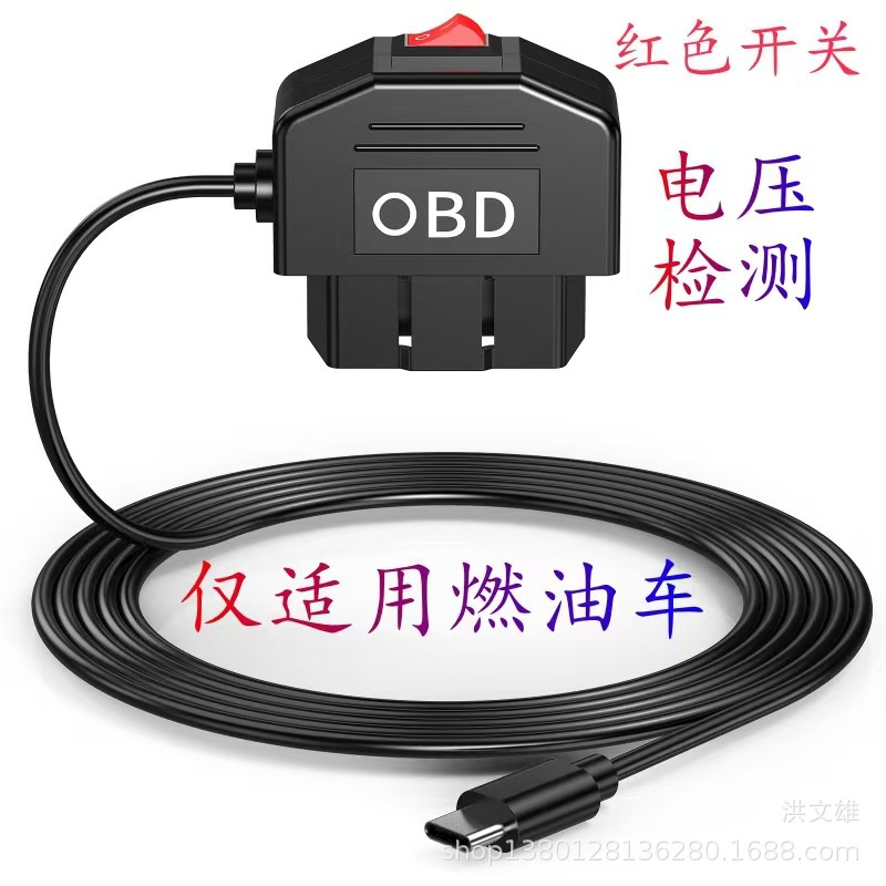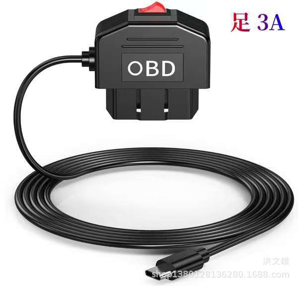 跨境行车记录仪智能OBD停车监控线12V24V转5V3A带开关低压保护