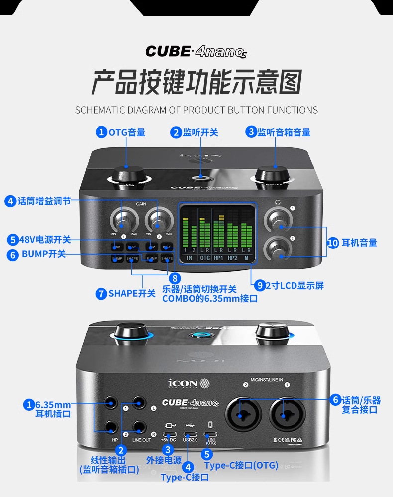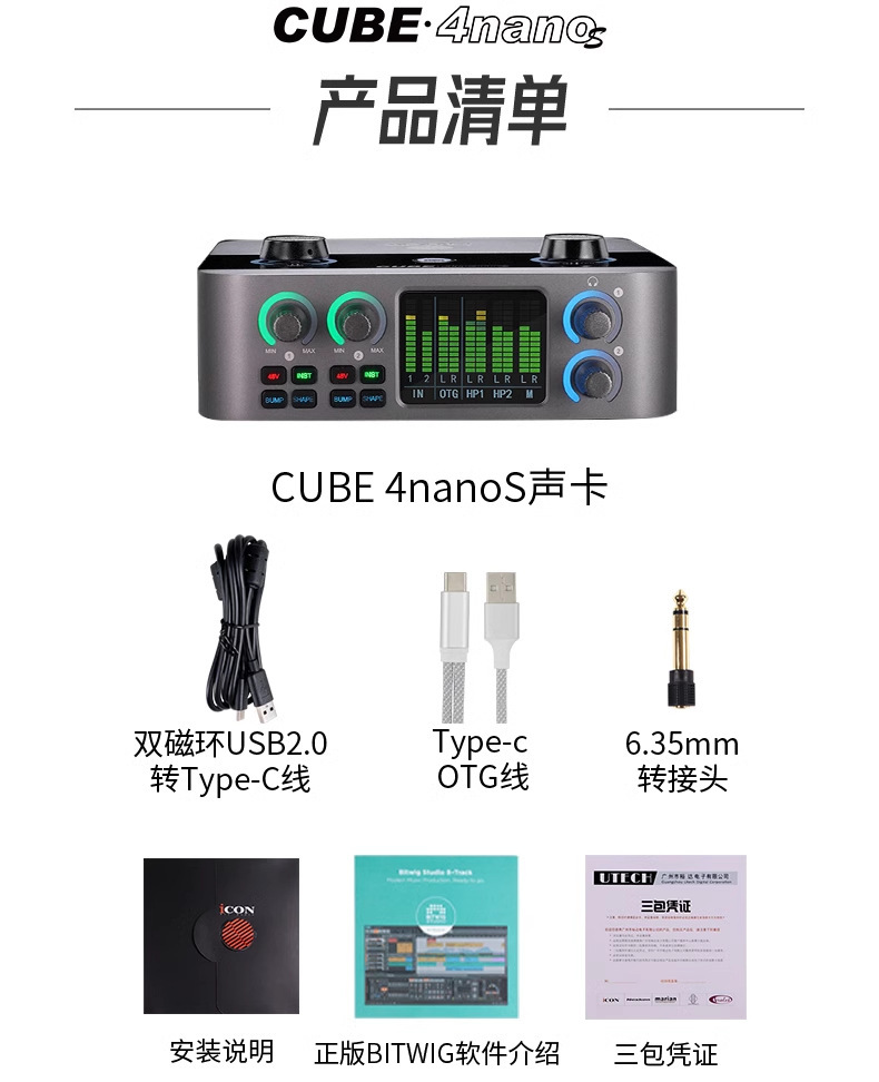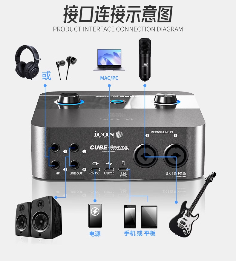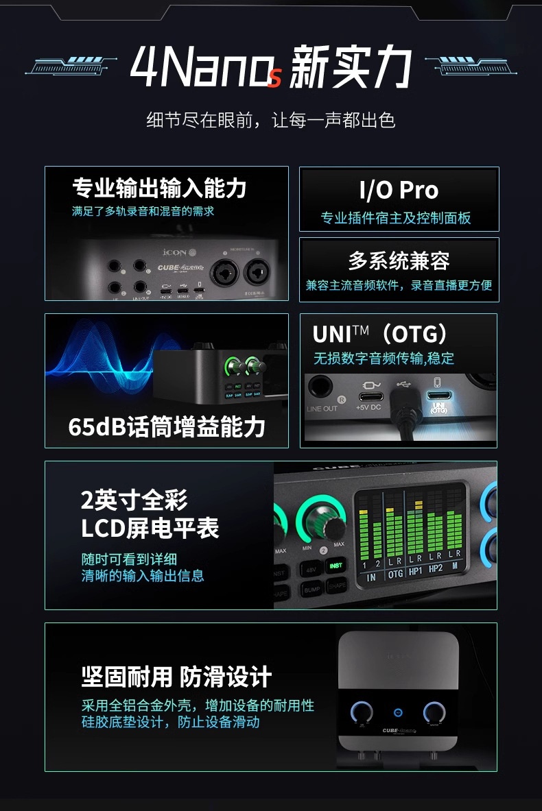 Звуковая карта Aiken iCON 4Nanos для настольного компьютера, внешний 24 новых комплекта для прямой трансляции, профессиональный стильный комплект для записи пения