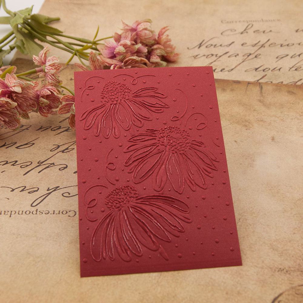 用途:将纸夹在模板的中间,通过纸艺机器滚压,使纸张形成凹凸的效果。使用的机器与切割刀模的机器一样,适用于大多数的机器,如sizzix,spellbinders,Cricut Cuttlebug等等