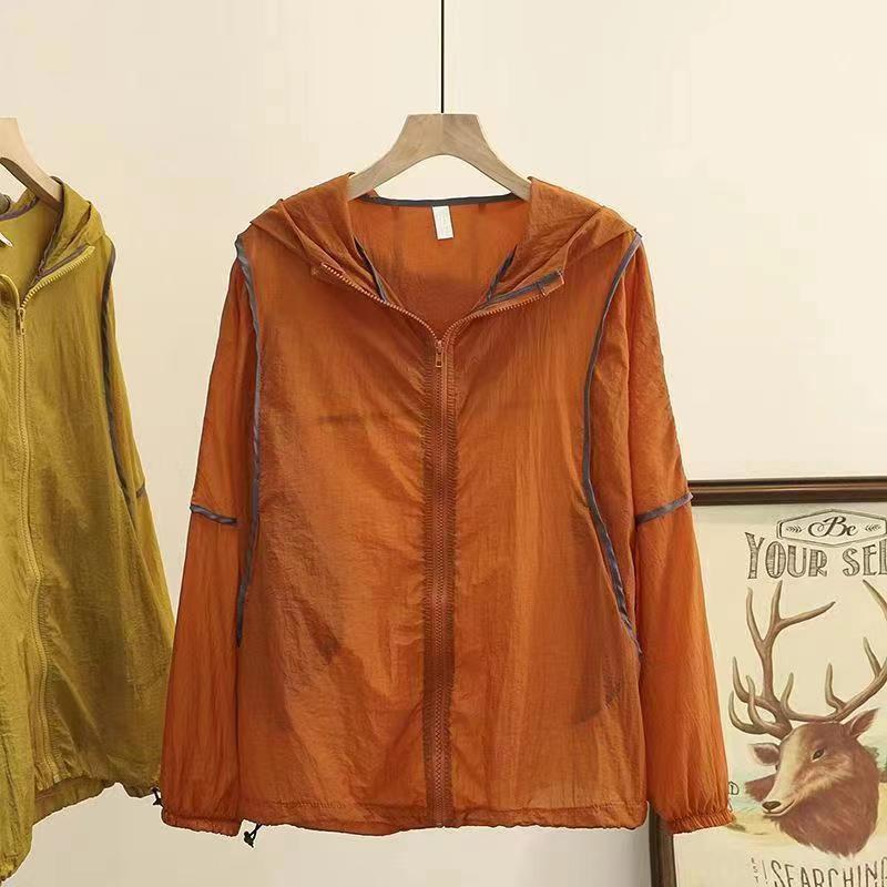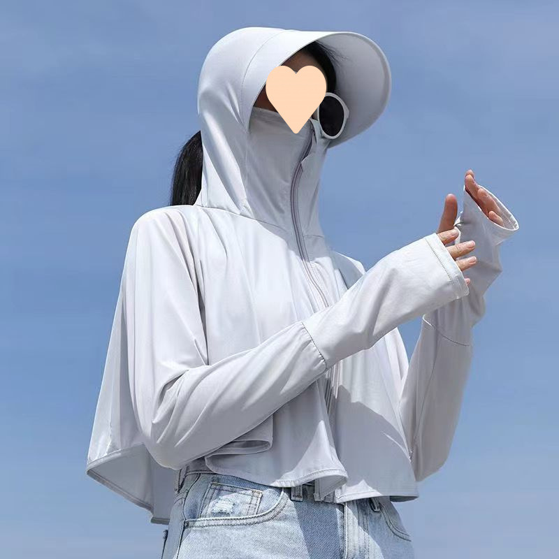 Летняя тонкая свободная дышащая одежда из ледяного шелка с капюшоном для женщин, которую можно носить на улице, новая модная и универсальная солнцезащитная одежда.