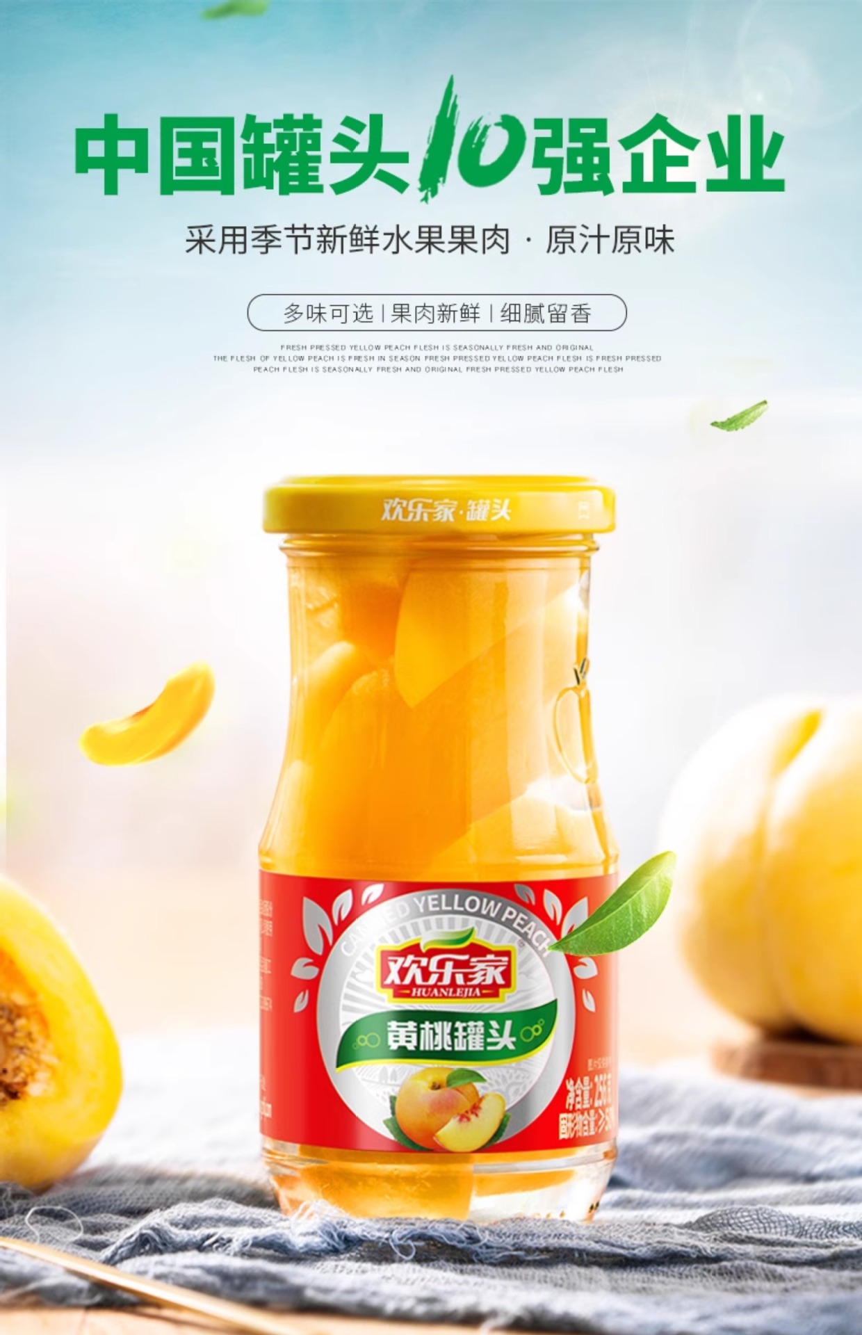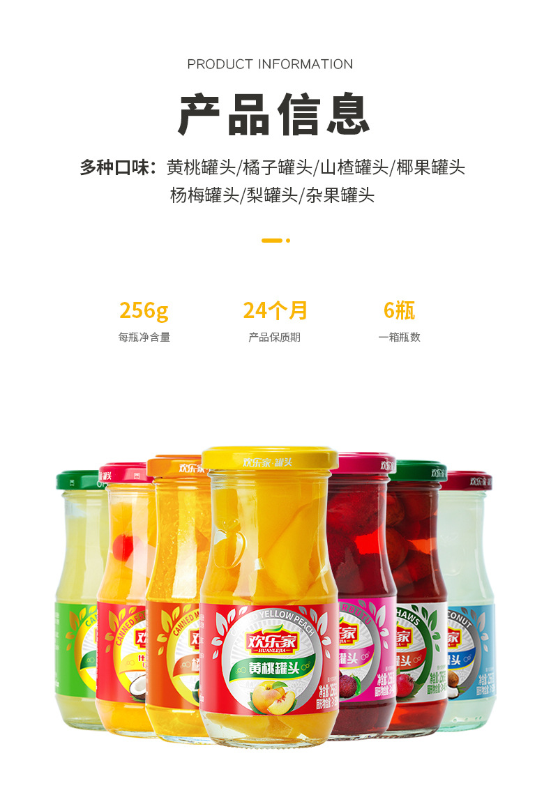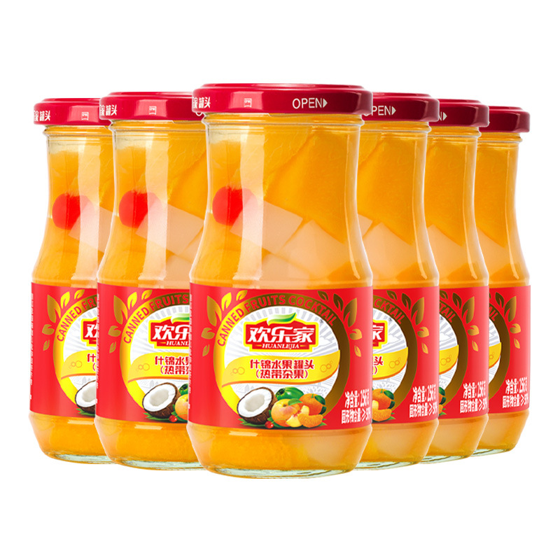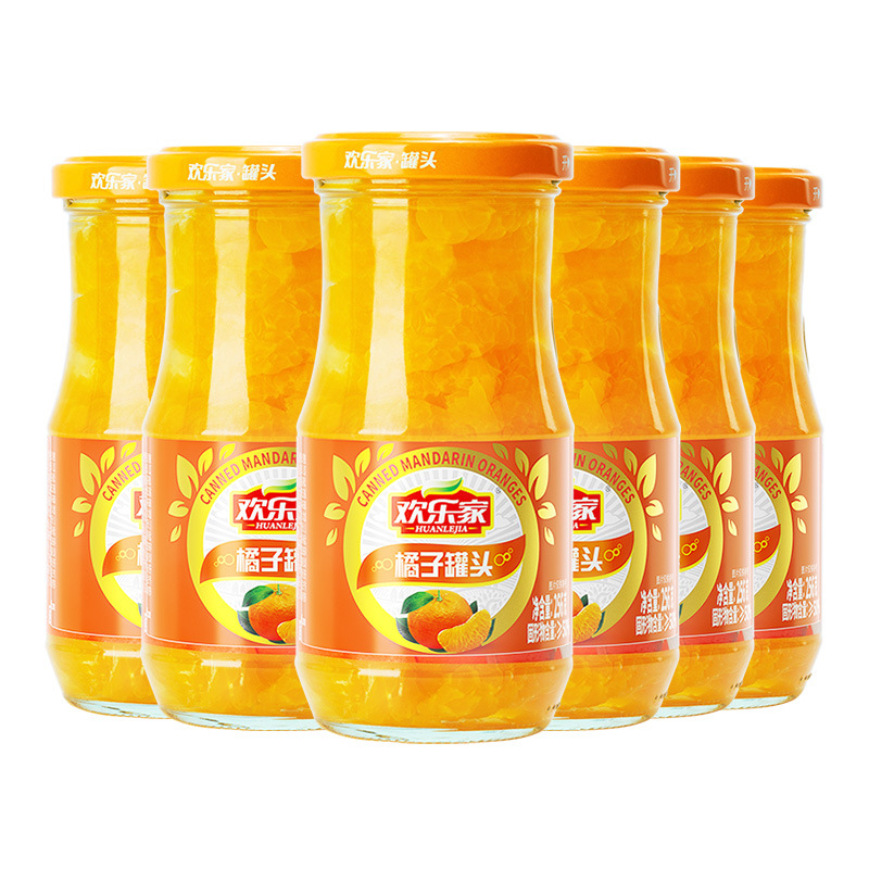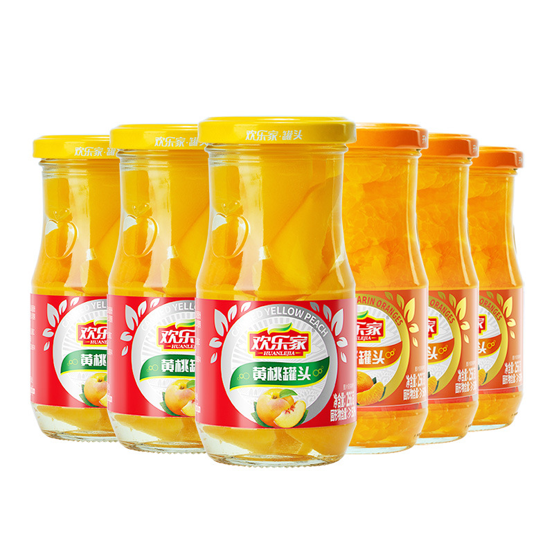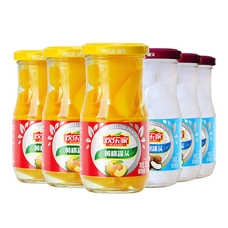 Консервированные фрукты Huanlejia, 256 г * 6 банок: апельсин, груша, боярышник, кокос, ассорти из ананасов, желтый персик, целая коробка.