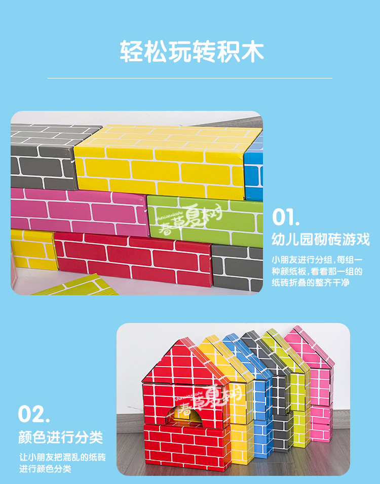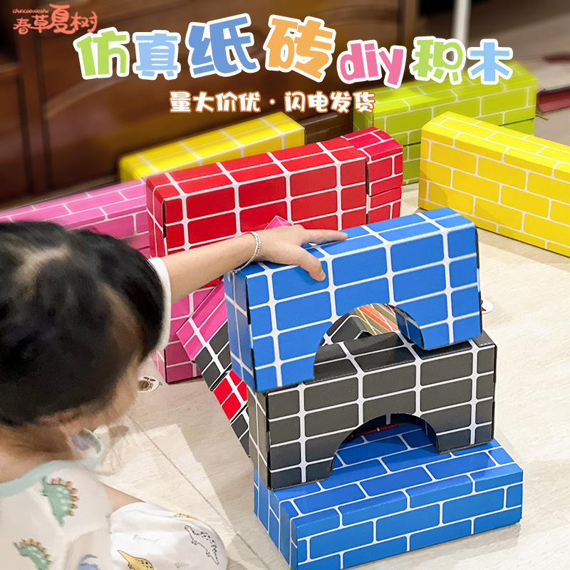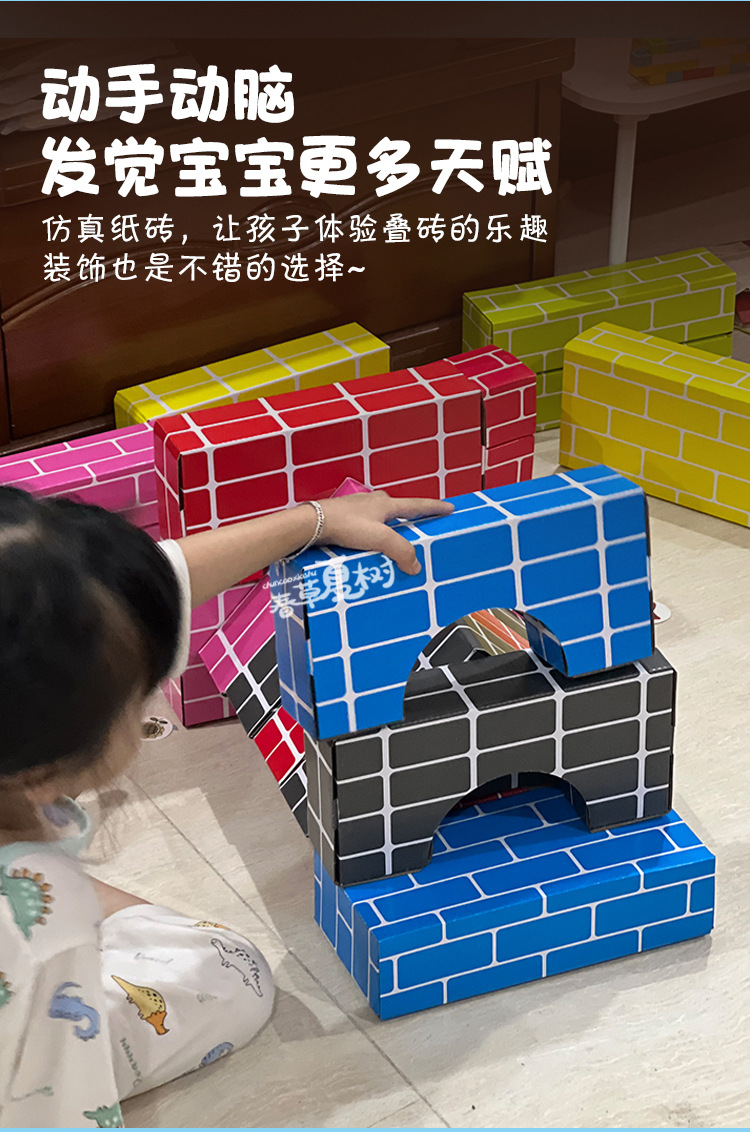 Детский игровой набор из бумажных кирпичиков для строительства, коробка для детского сада, зона строительства, уголок для игр в помещении, для средних и больших классов.