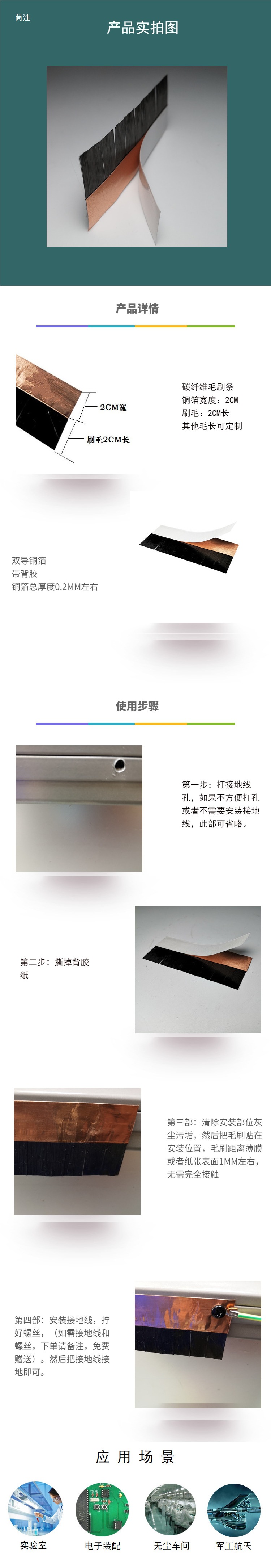 Антистатическая щетка с двойной проводящей медной фольгой из углеродного волокна с клейкой основой, печать композитной электростатической щетки, полоса проводящей щетки